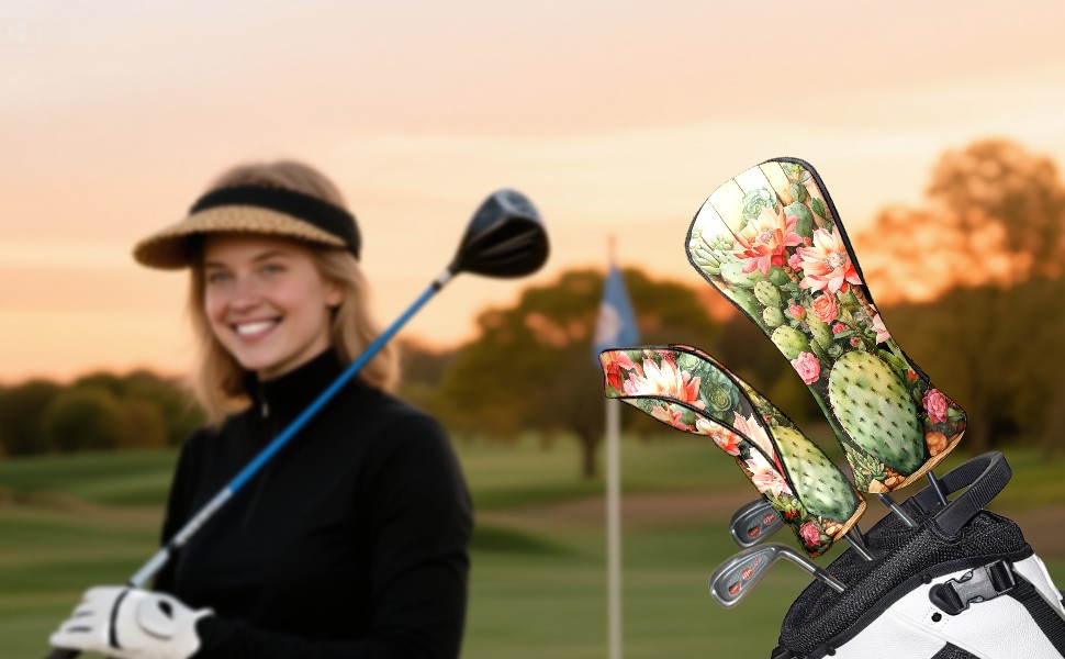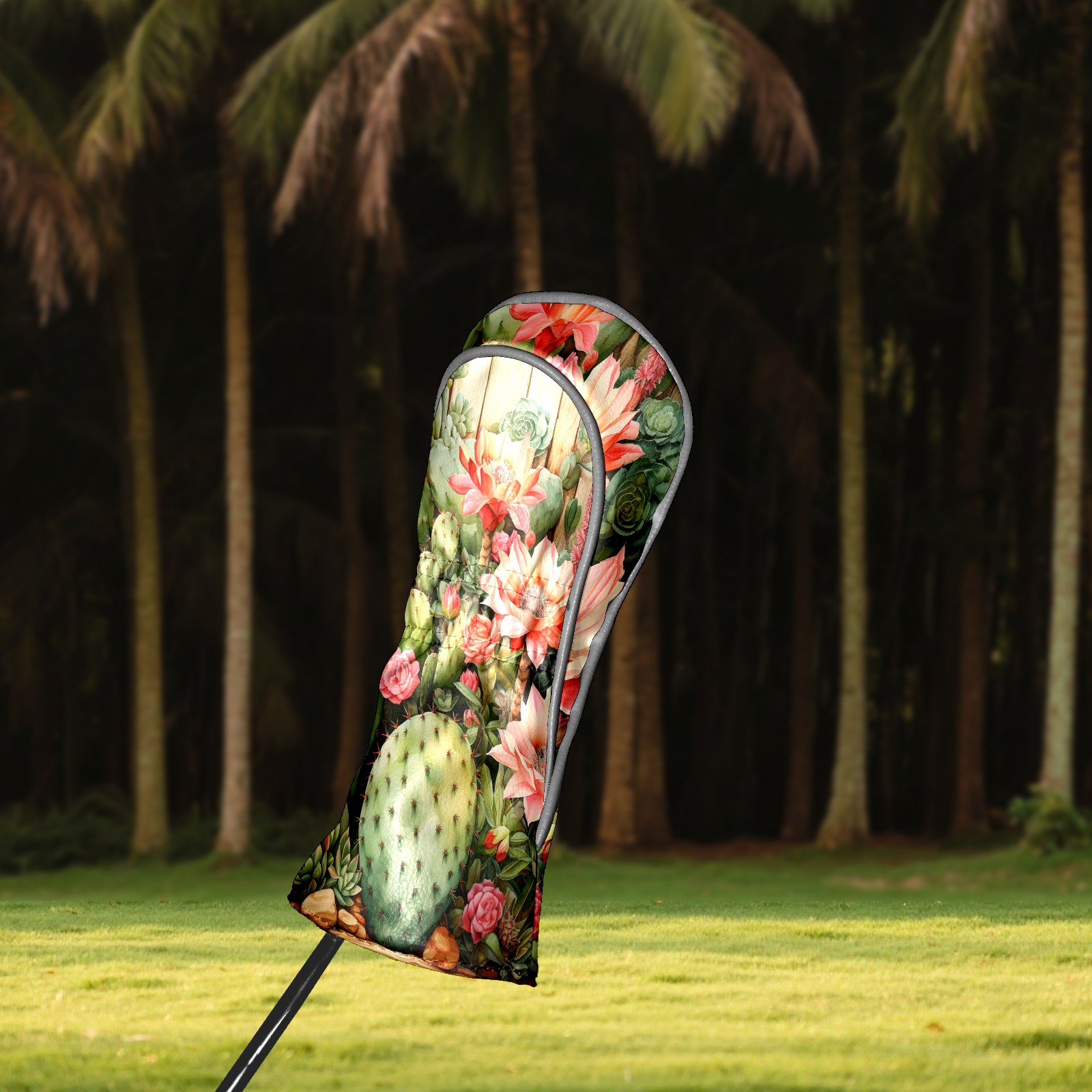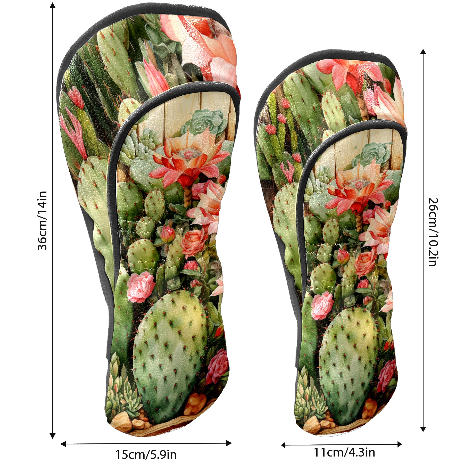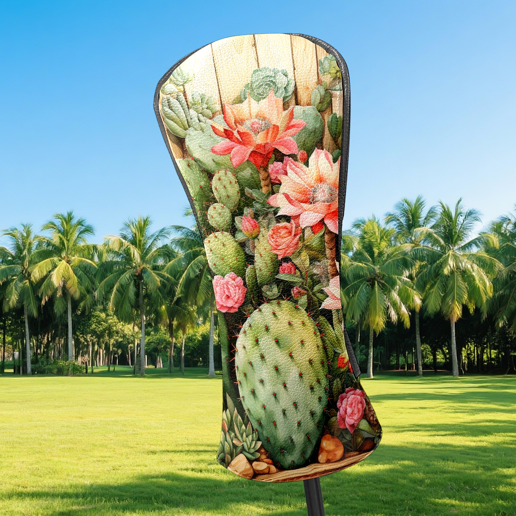 Golf Head Covers Leather Driver Head Cover, Premium Golf Club Covers with Anti-Scratch Lining for Women Men 1/3/5 Wood Cover for Golf Clubs (Cactus On Wood (5))