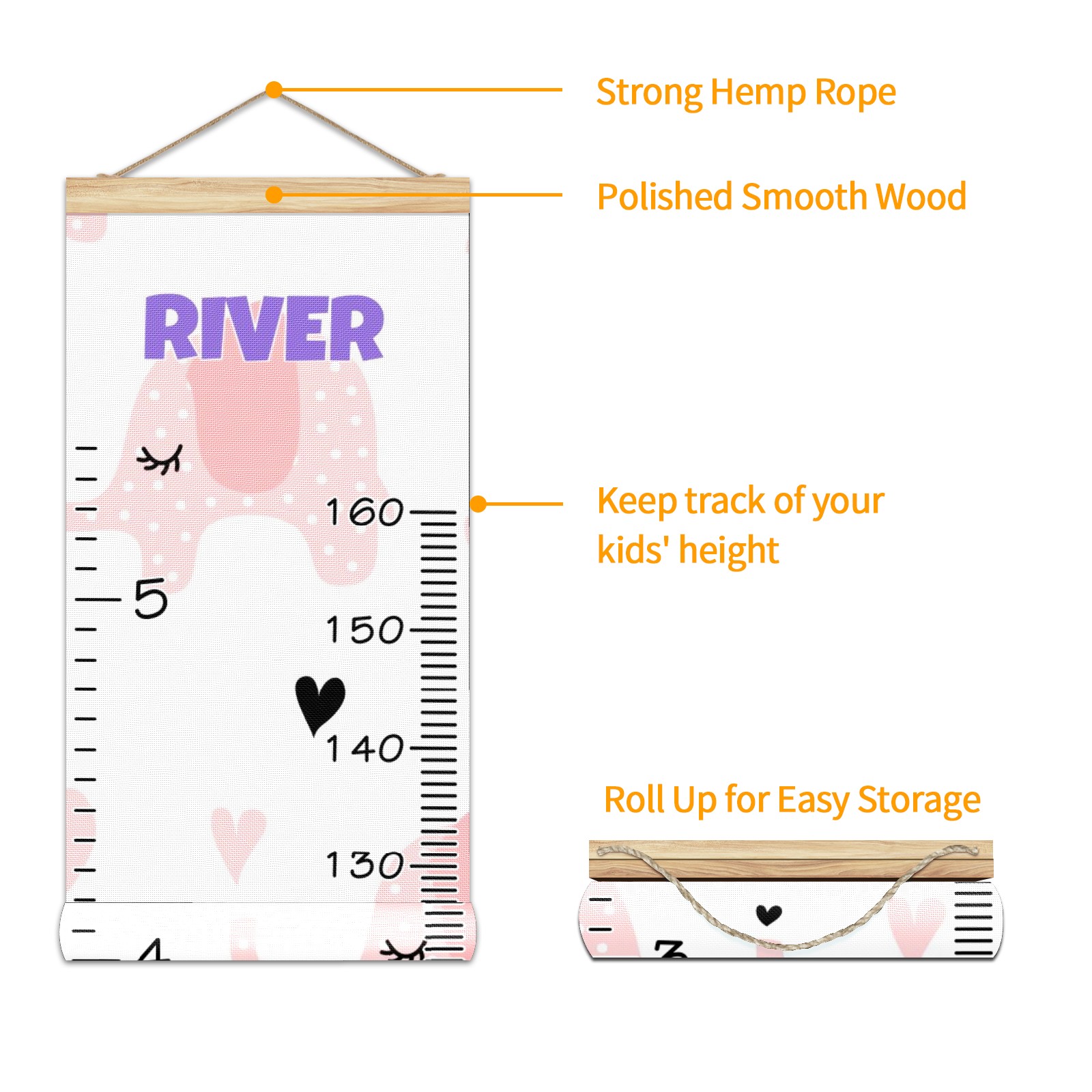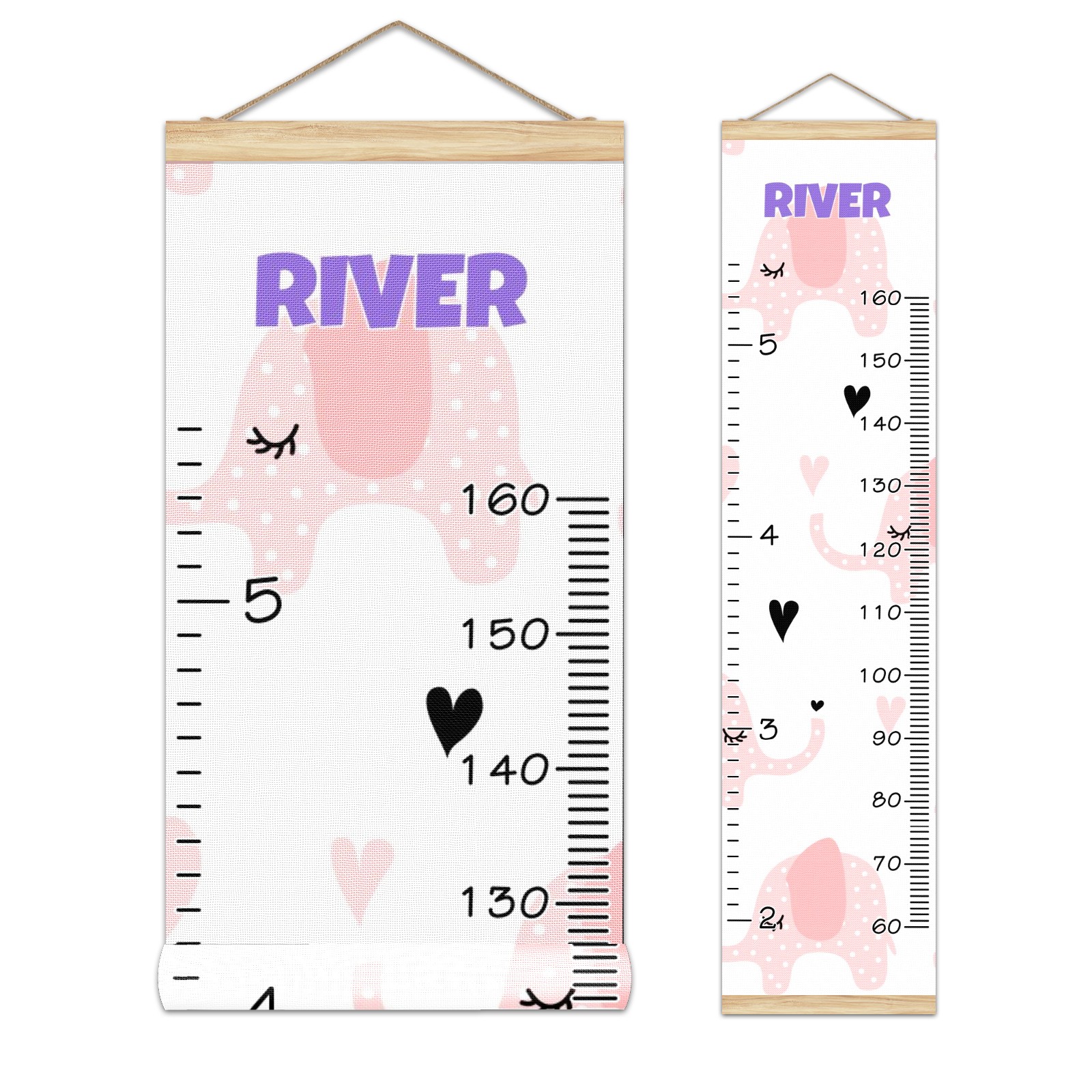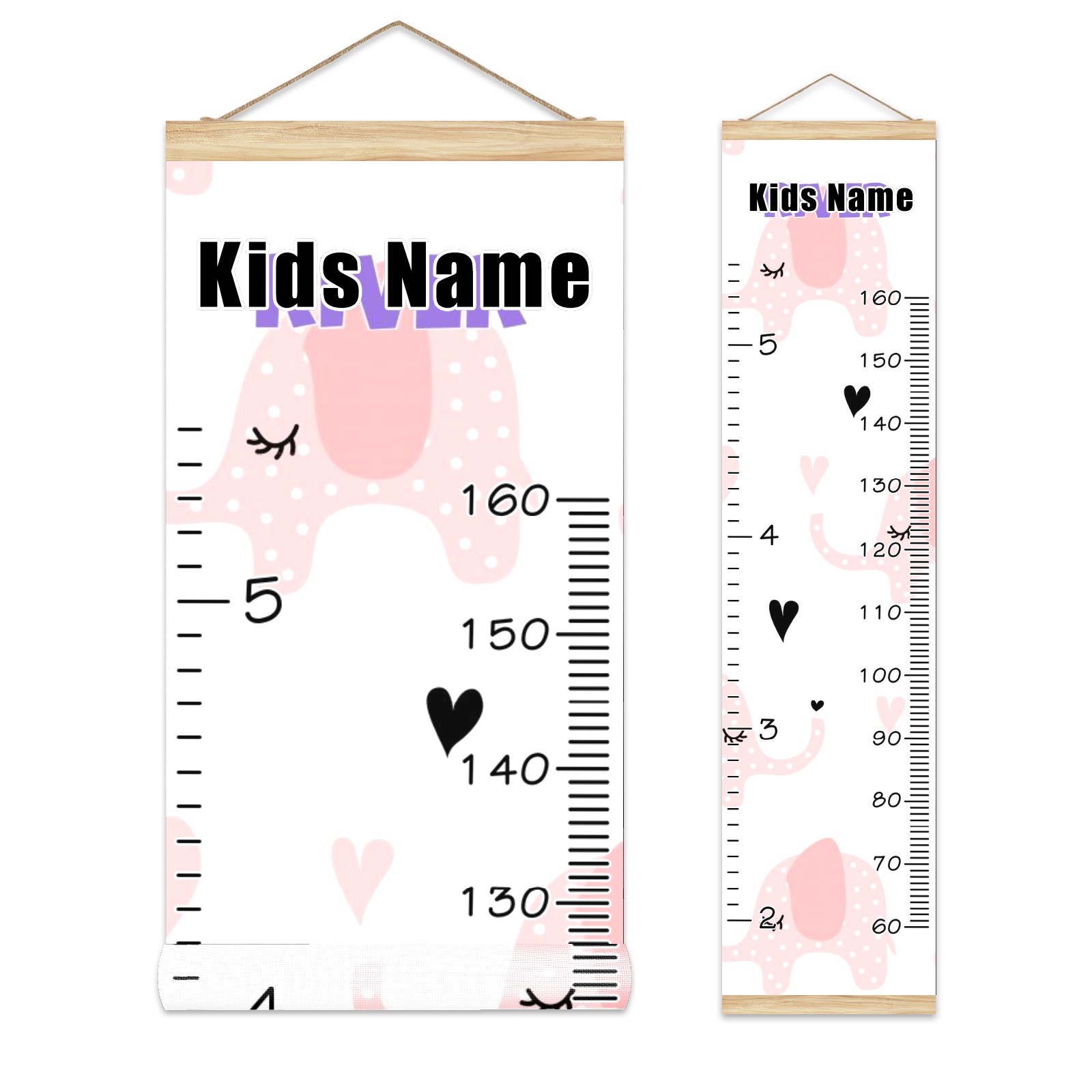Personalized Kids Name Growth Chart Ruler for Wall Wood Frame Canvas Height Measure Chart 13.4x56 in Hanging Growth Chart Pink Elephant3.17 Boys Girls Room Decor