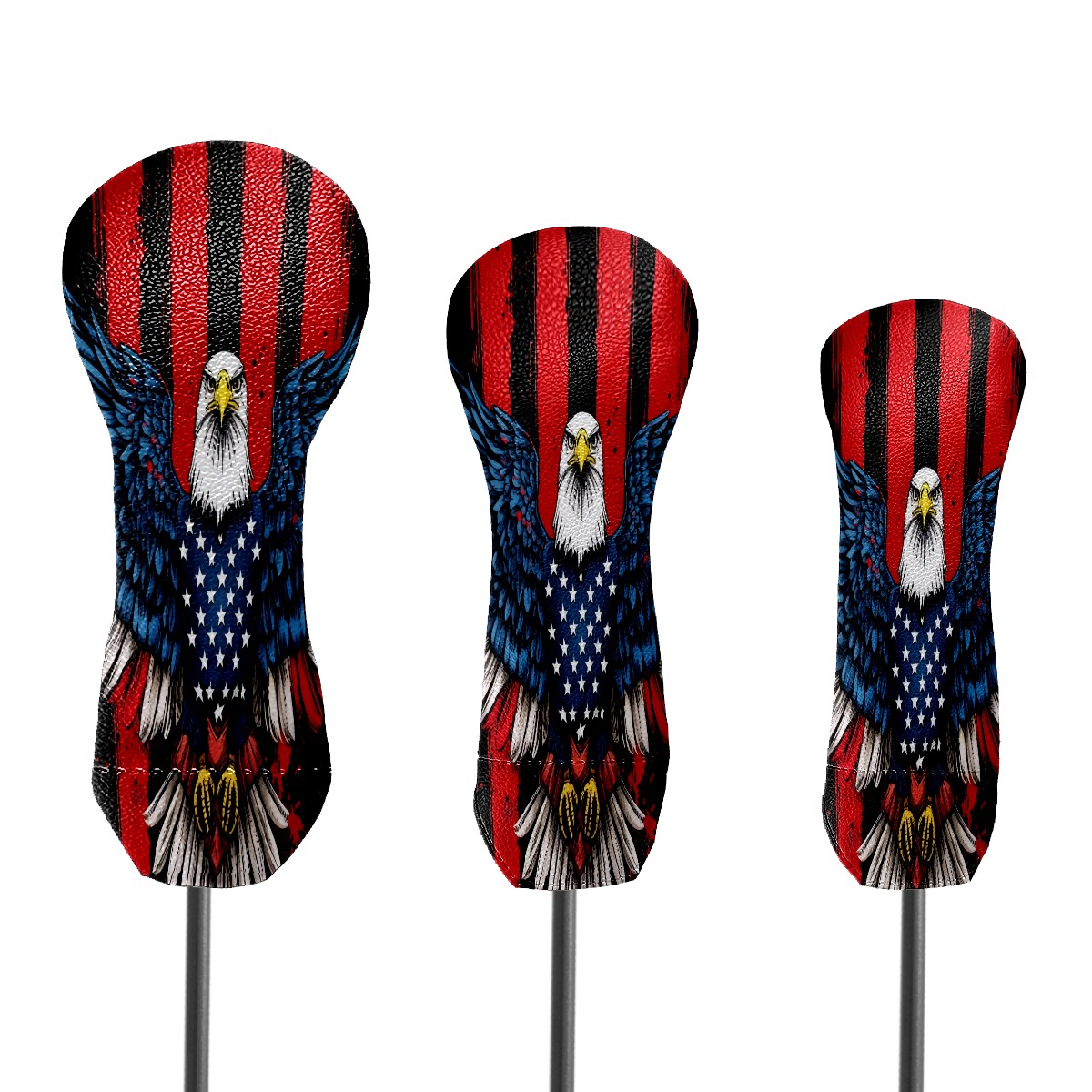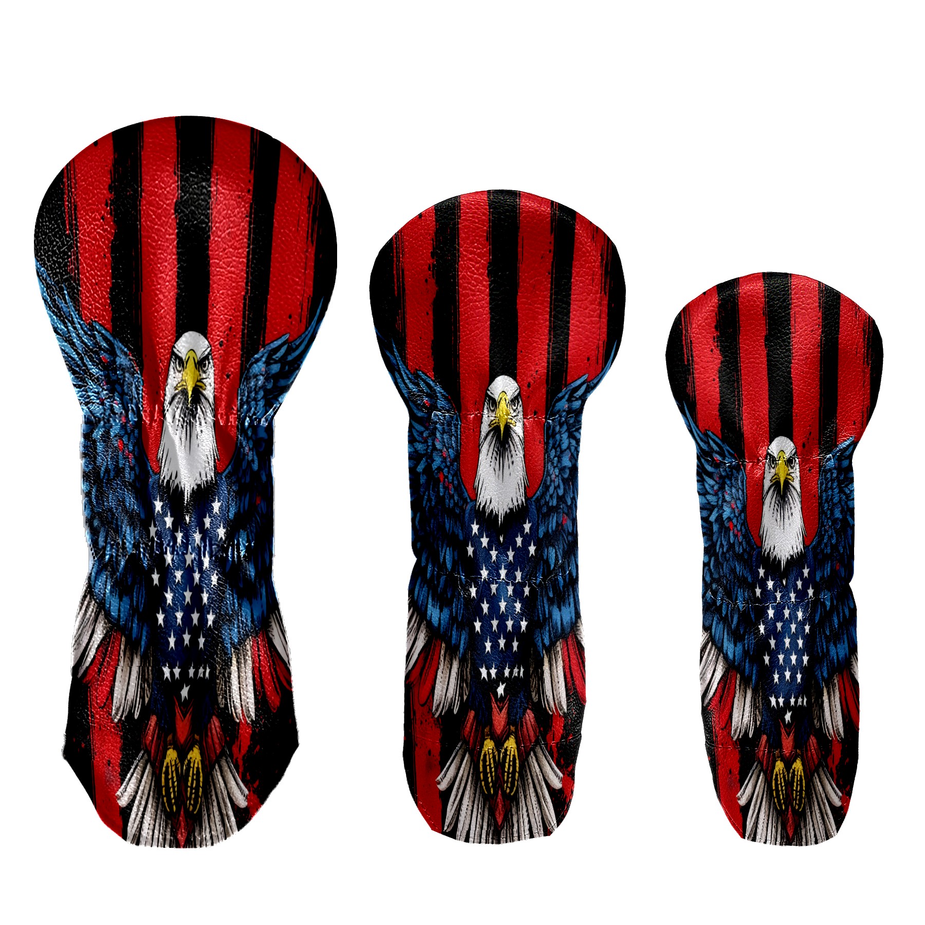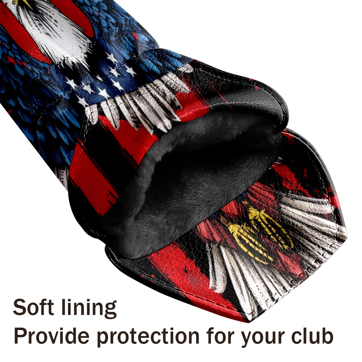Golf Club Head Cover - Premium Leather Driver Fairway Wood Headcover, Soft Plush Lining Golf Headcover Fits Driver Hybrid for Men & Women Golfers (Eagle Theme)