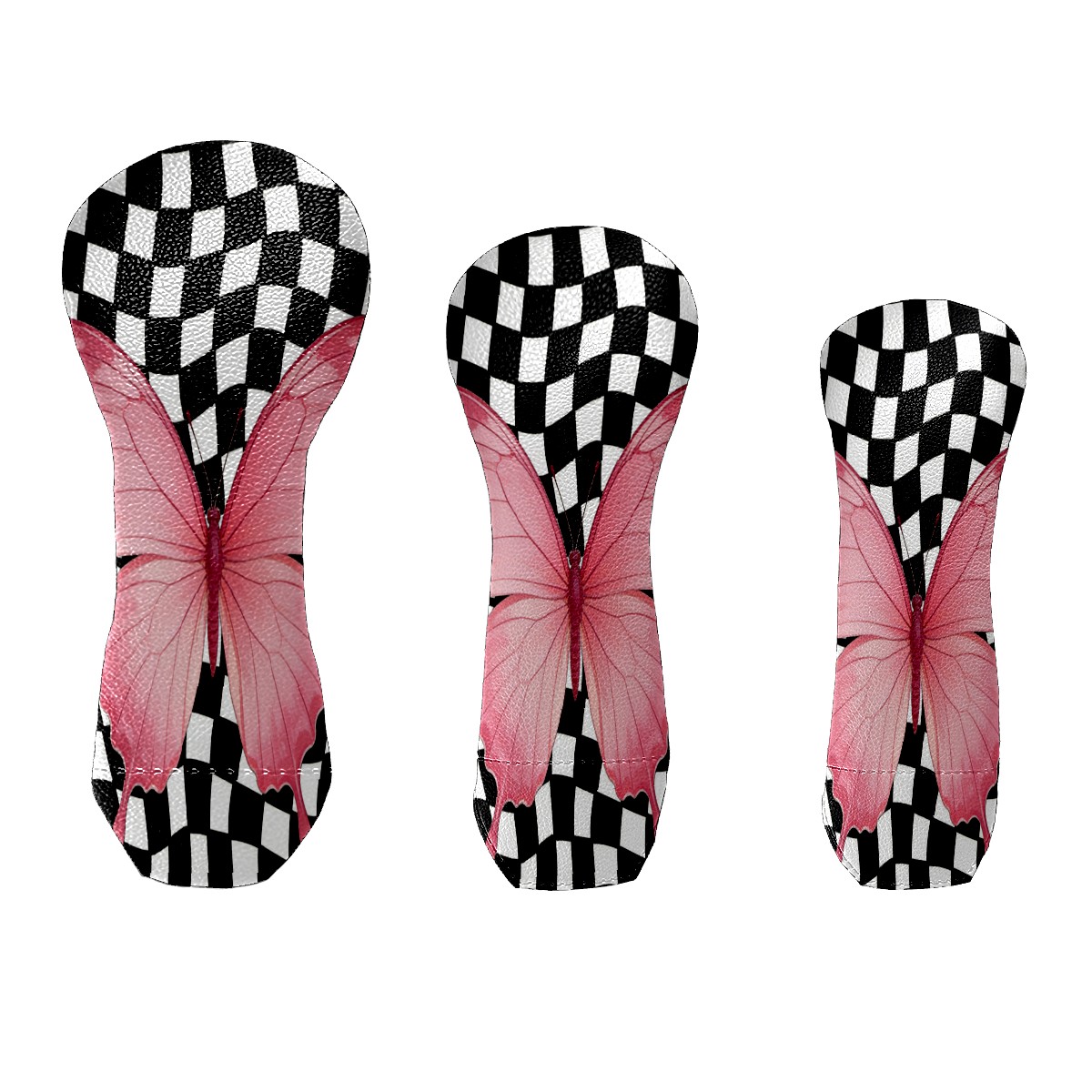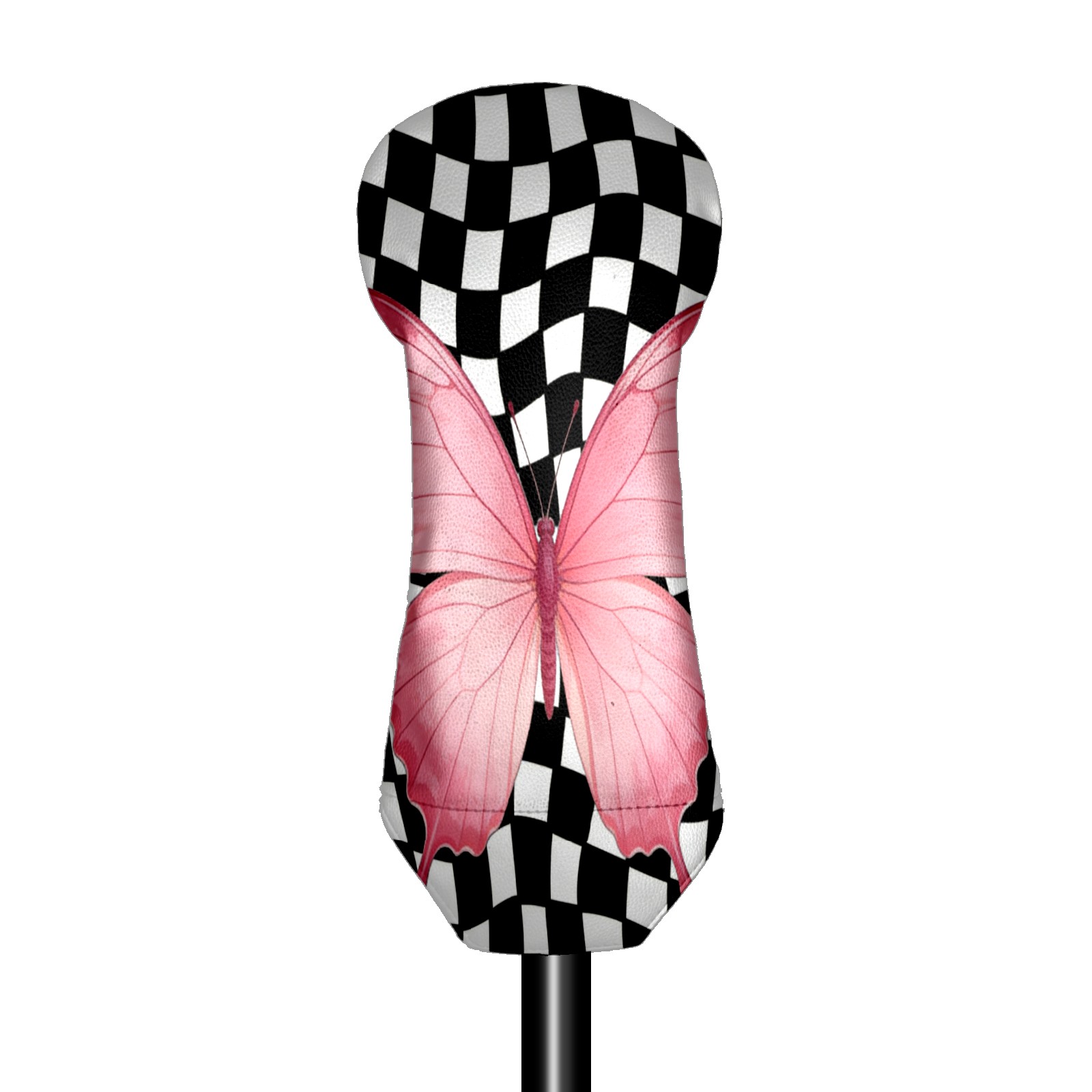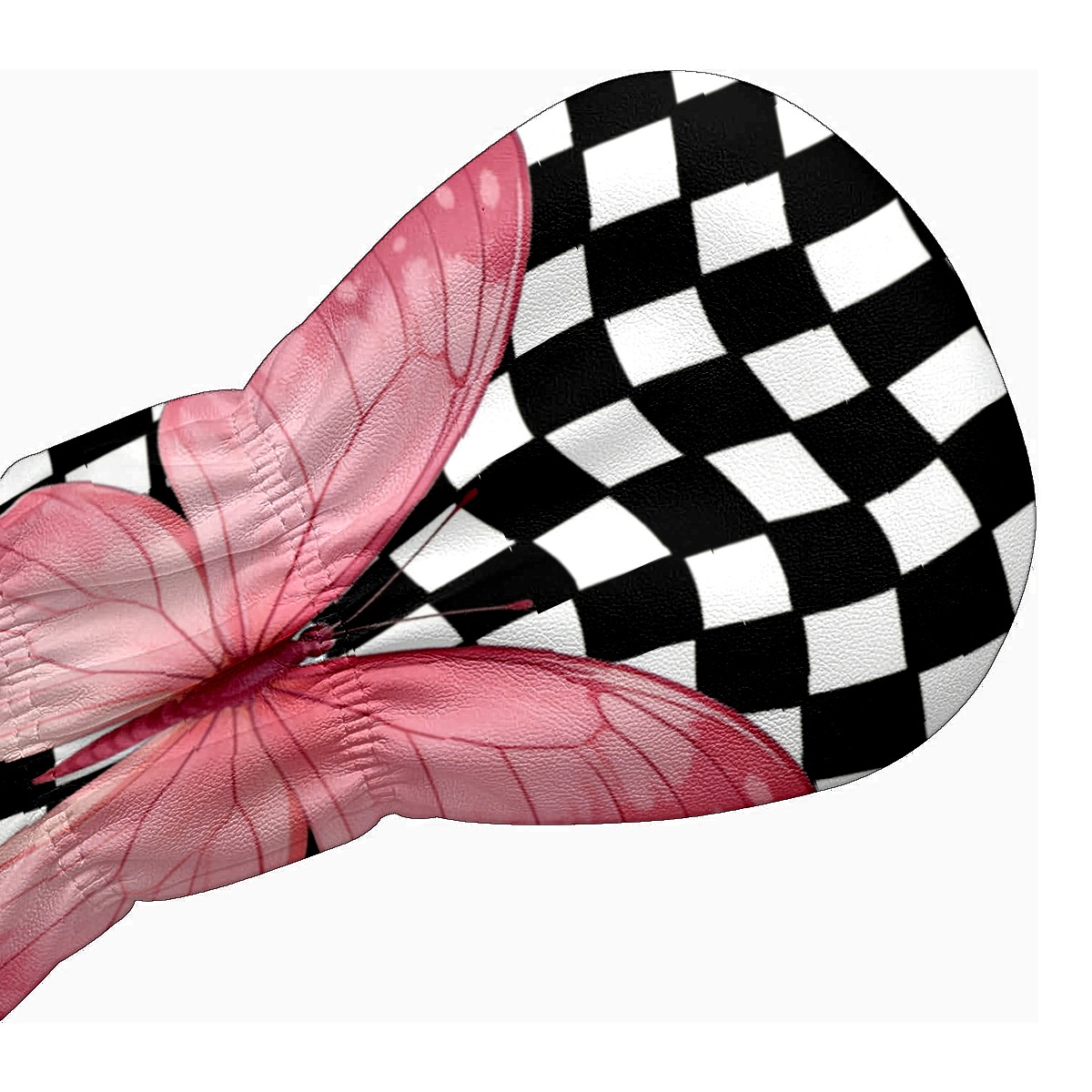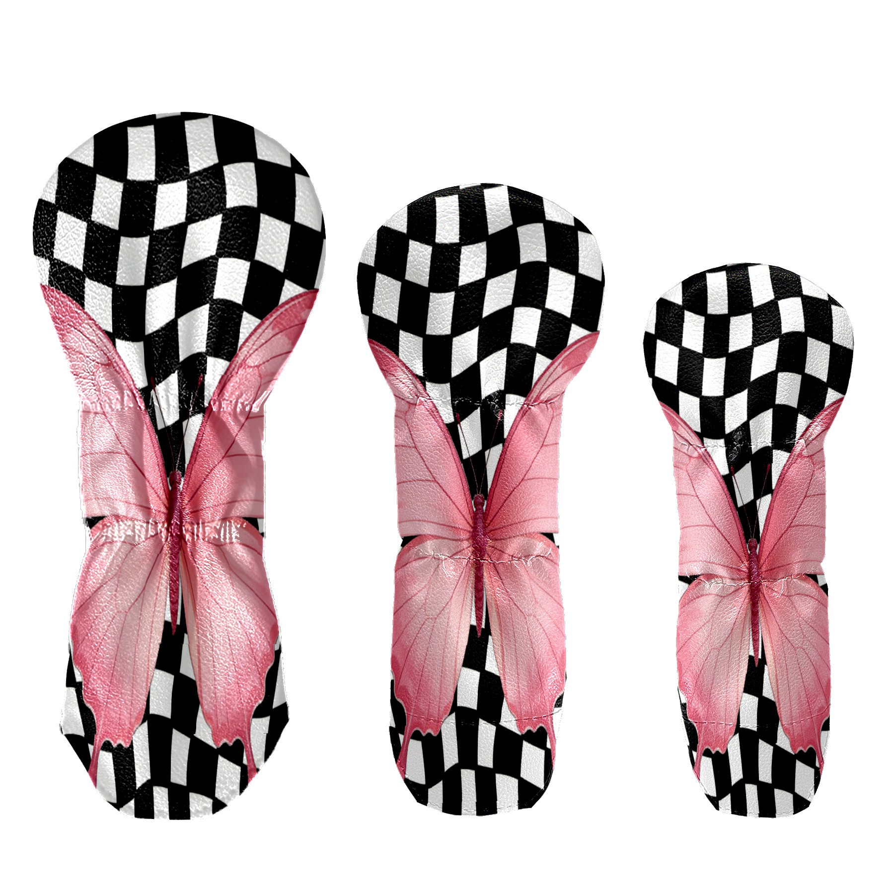 Golf Club Head Cover - Premium Leather Driver Fairway Wood Headcover, Soft Plush Lining Golf Headcover Fits Driver Hybrid for Men & Women Golfers (Black White Checkered Butterfly)