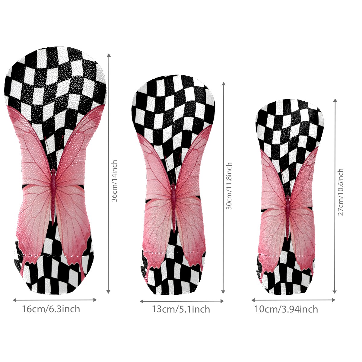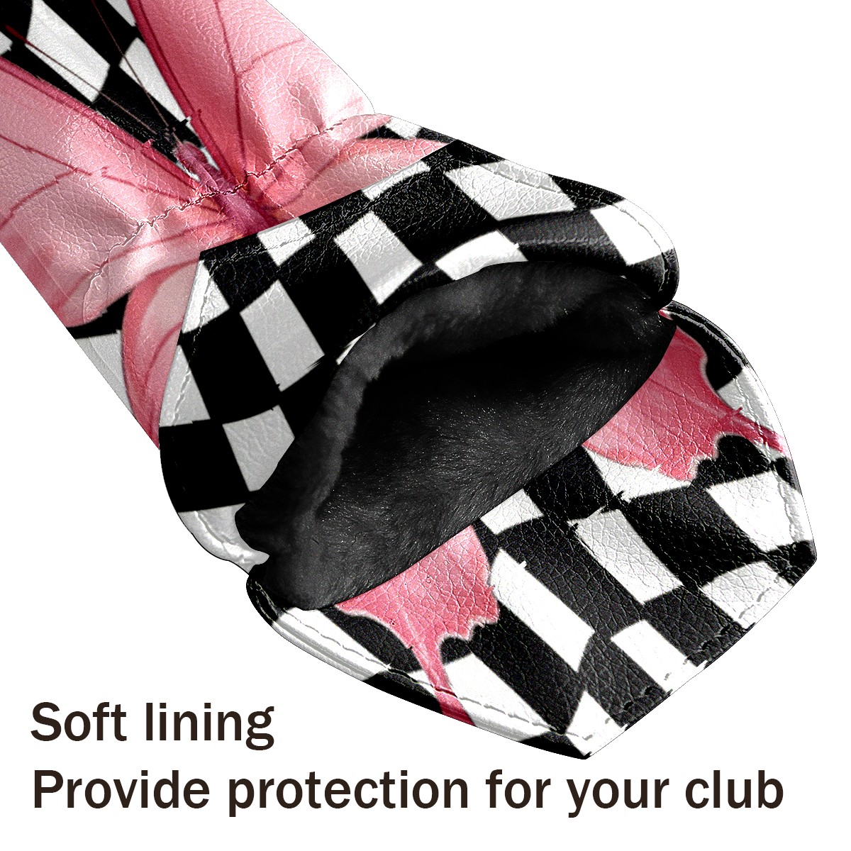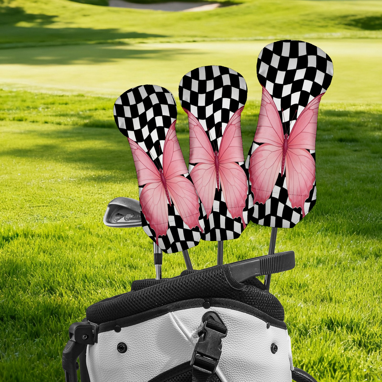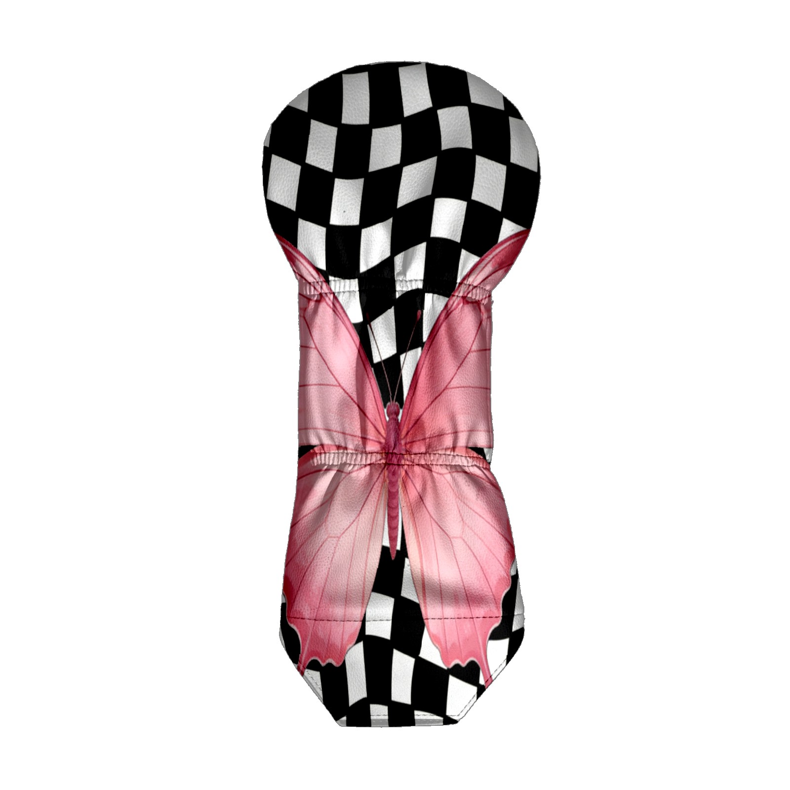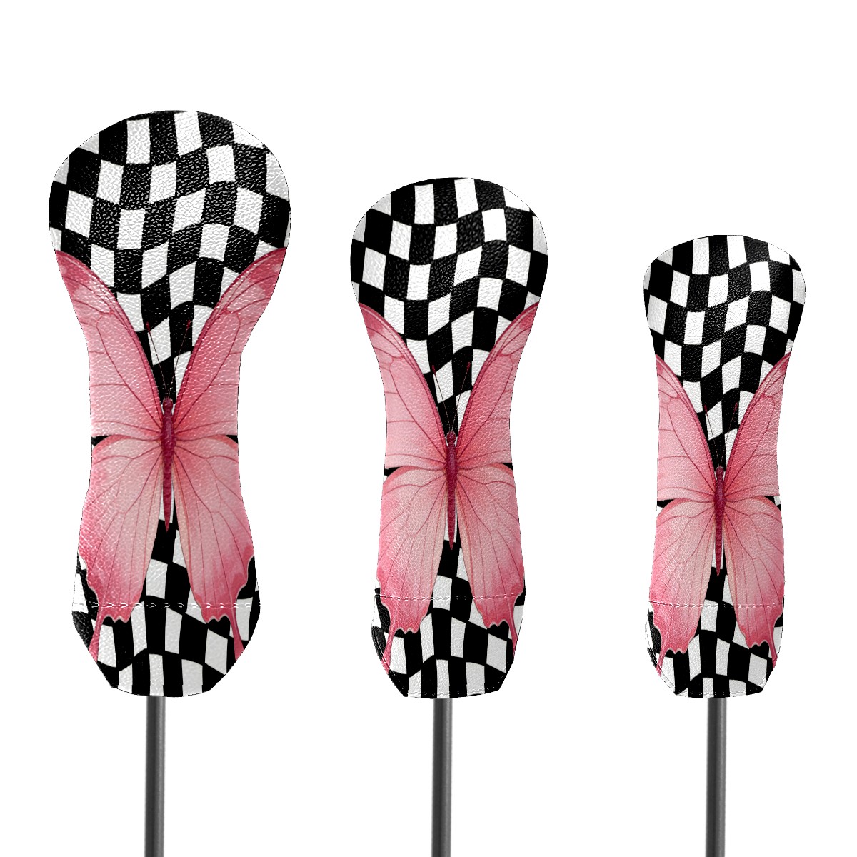 Golf Club Head Cover - Premium Leather Driver Fairway Wood Headcover, Soft Plush Lining Golf Headcover Fits Driver Hybrid for Men & Women Golfers (Black White Checkered Butterfly)
