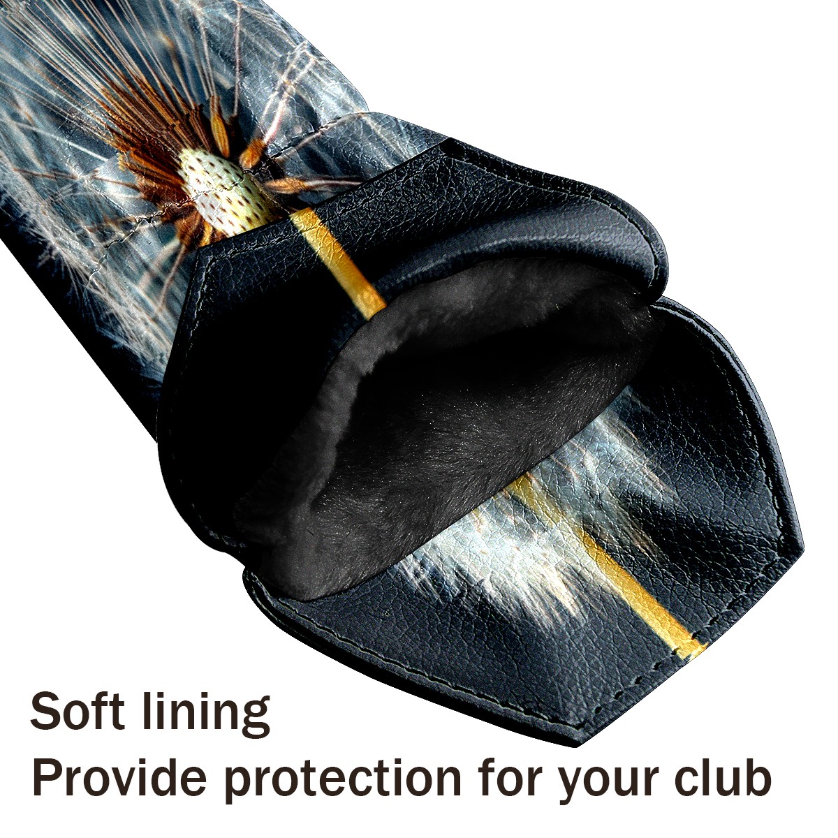 Golf Club Head Cover - Premium Leather Driver Fairway Wood Headcover, Soft Plush Lining Golf Headcover Fits Driver Hybrid for Men & Women Golfers (Dandelion)