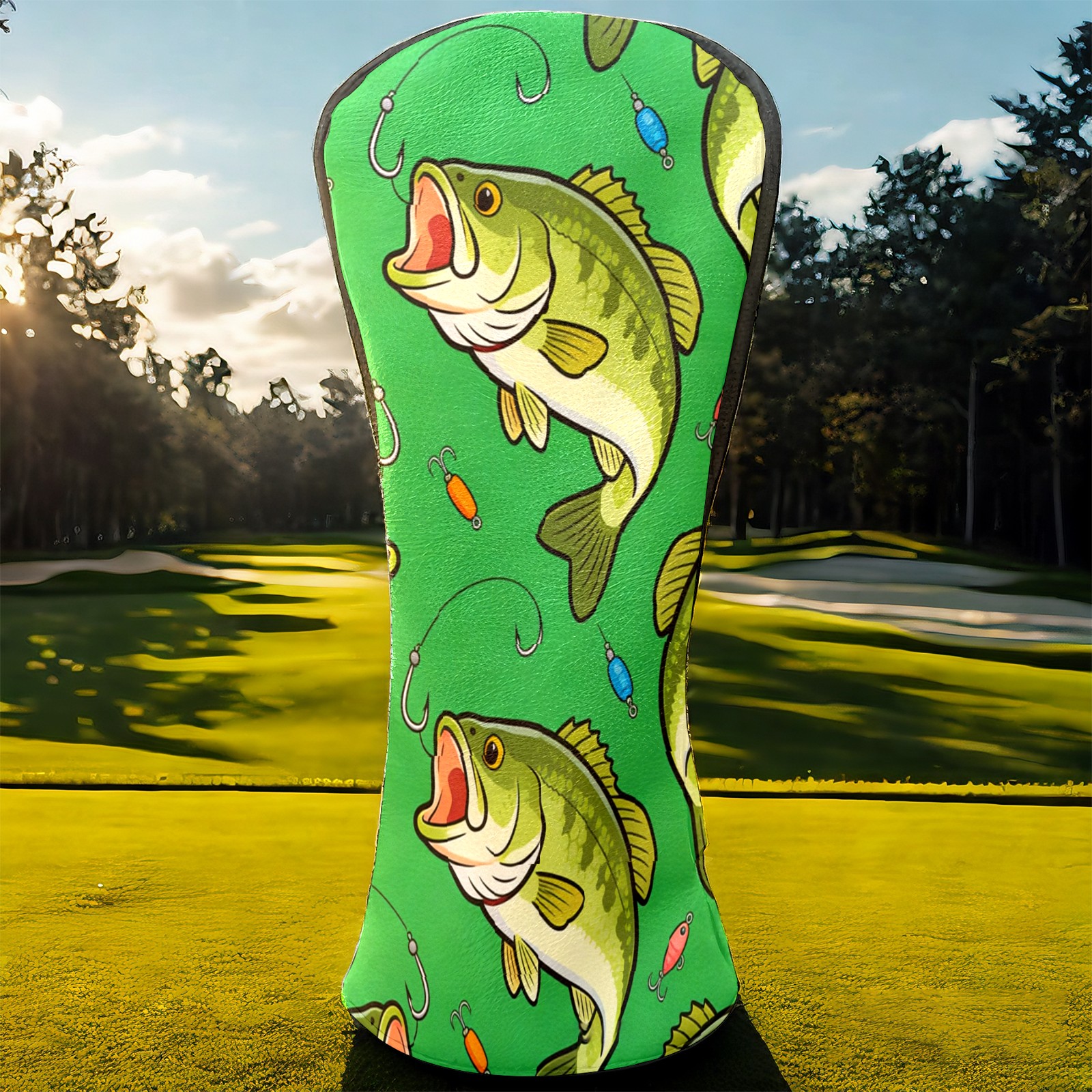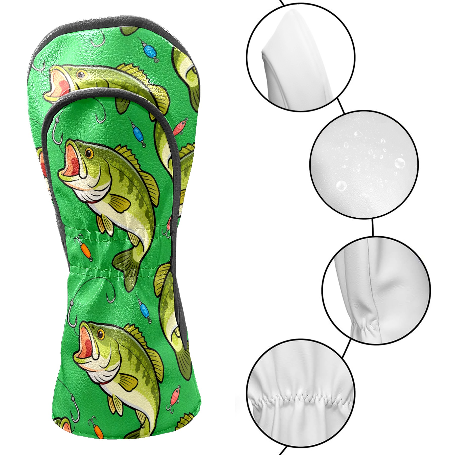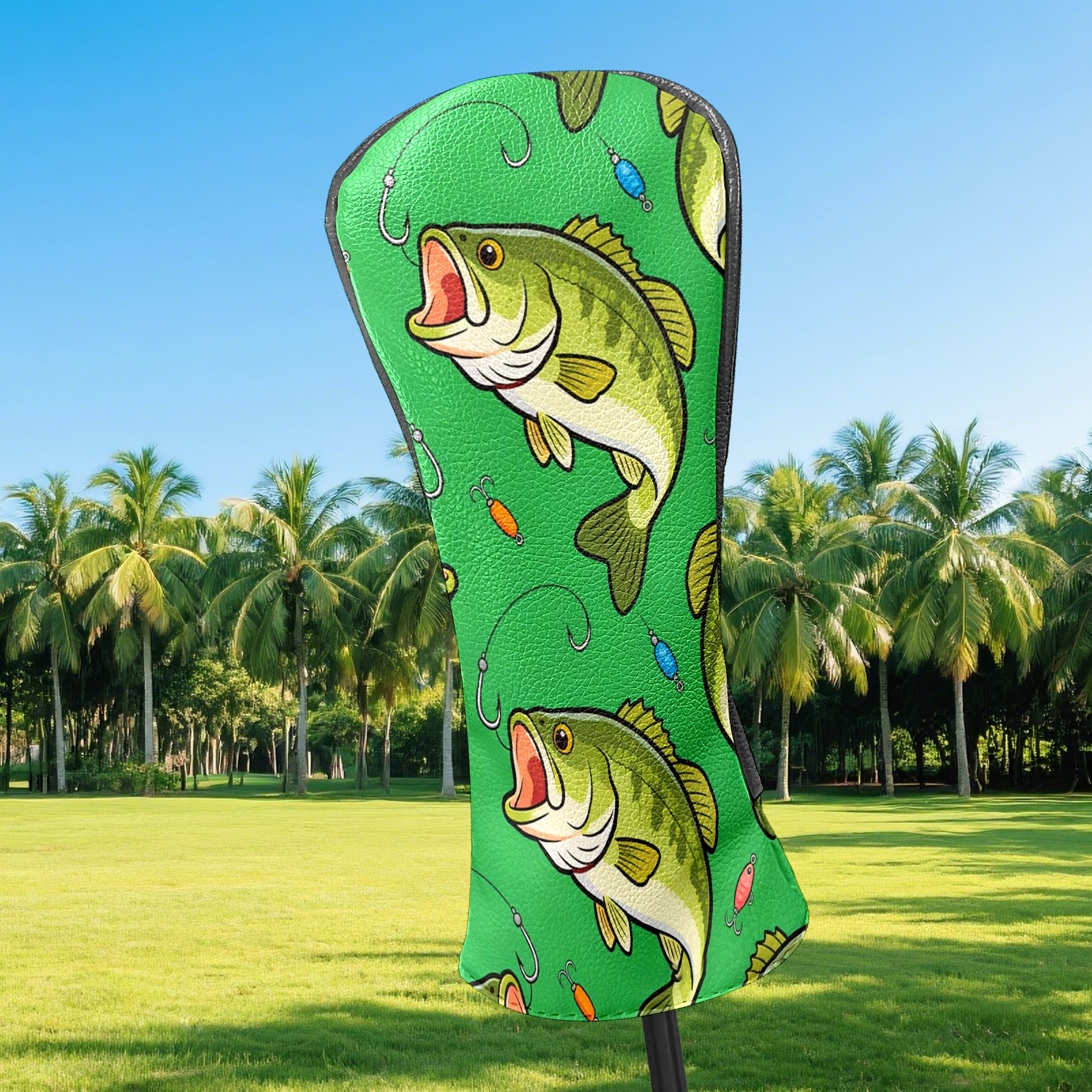 Golf Driver Head Cover Leather Driver Fairway Headcover, Premium Golf Club Covers with Plush Lining Girls Womens Mens Head Cover for Golf Clubs (Green Bass Fishes)
