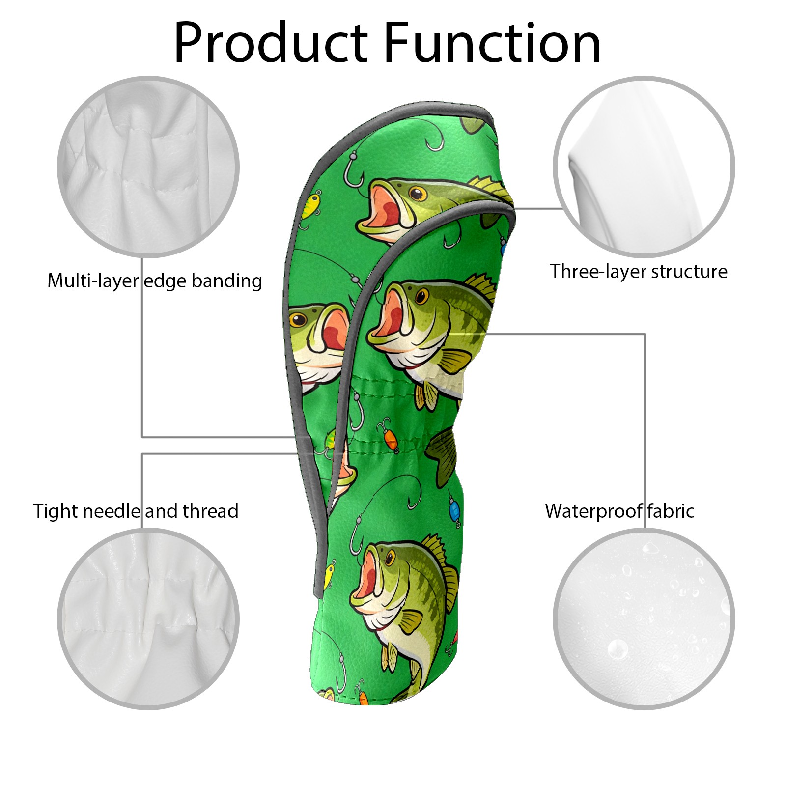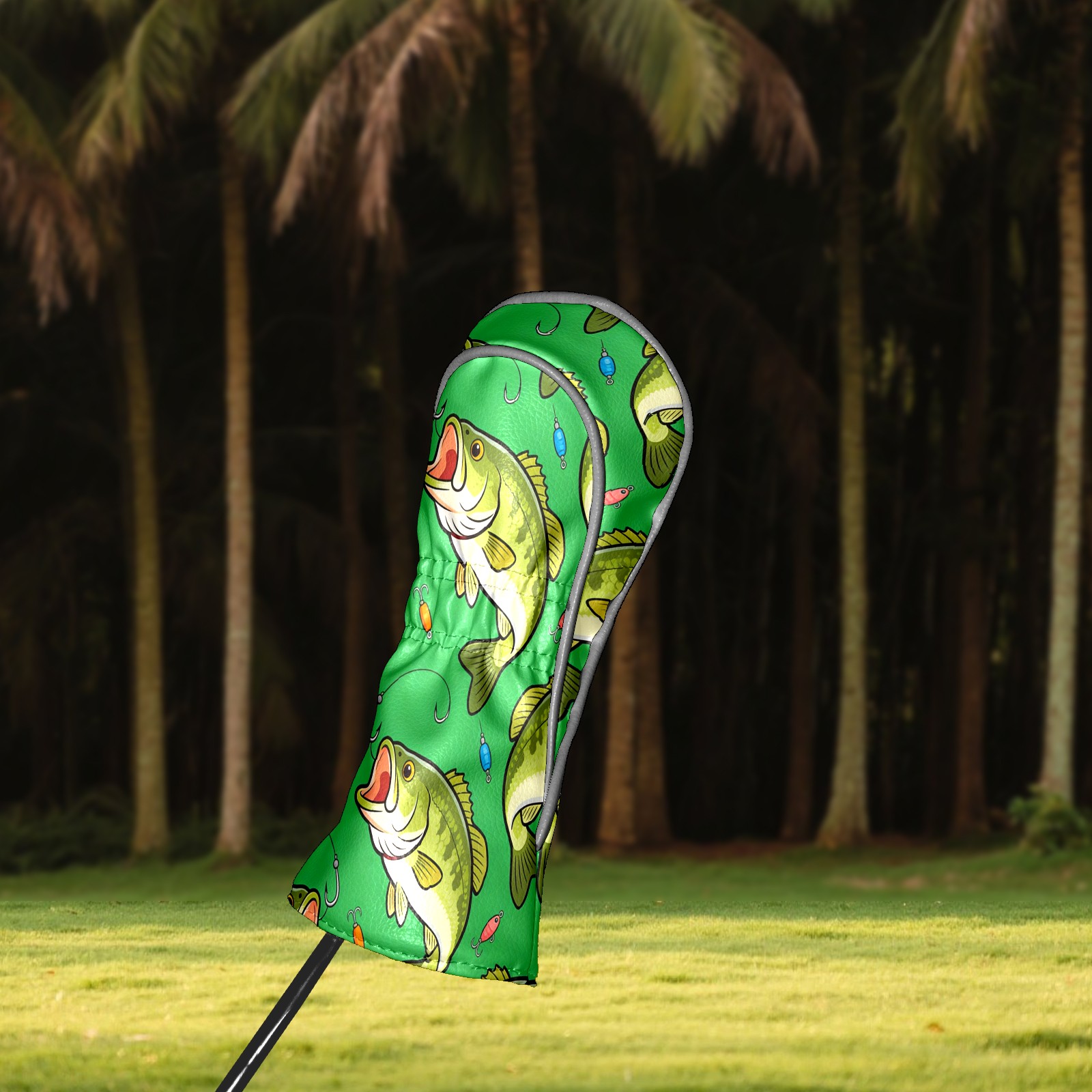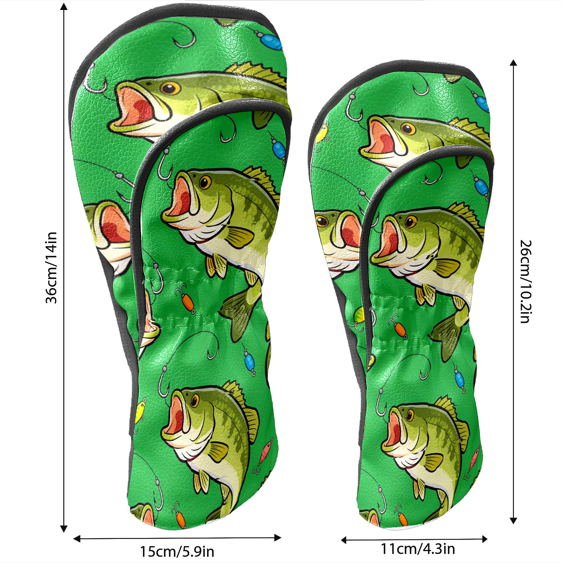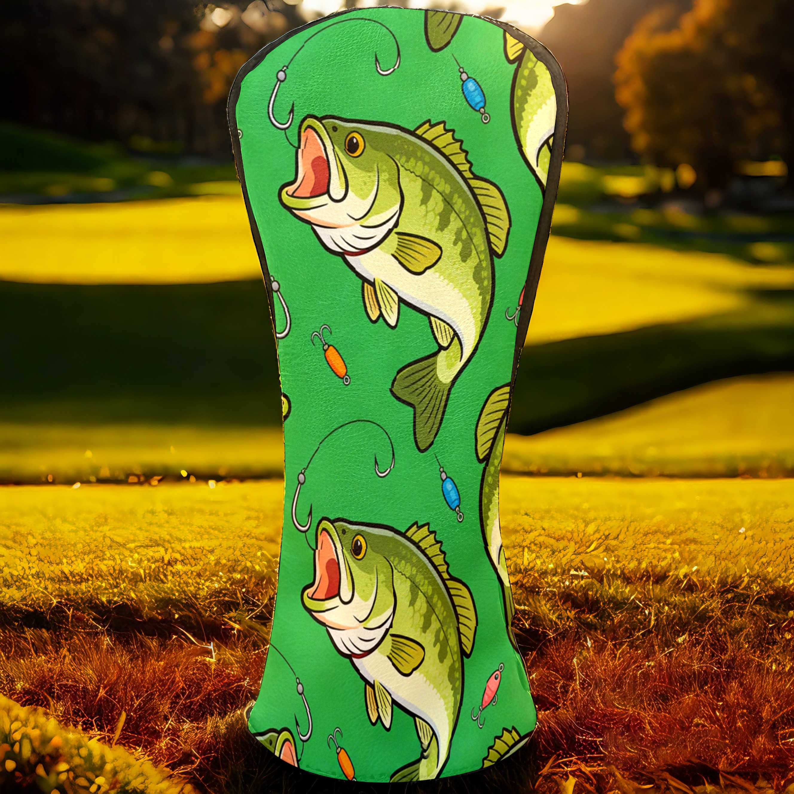 Golf Driver Head Cover Leather Driver Fairway Headcover, Premium Golf Club Covers with Plush Lining Girls Womens Mens Head Cover for Golf Clubs (Green Bass Fishes)