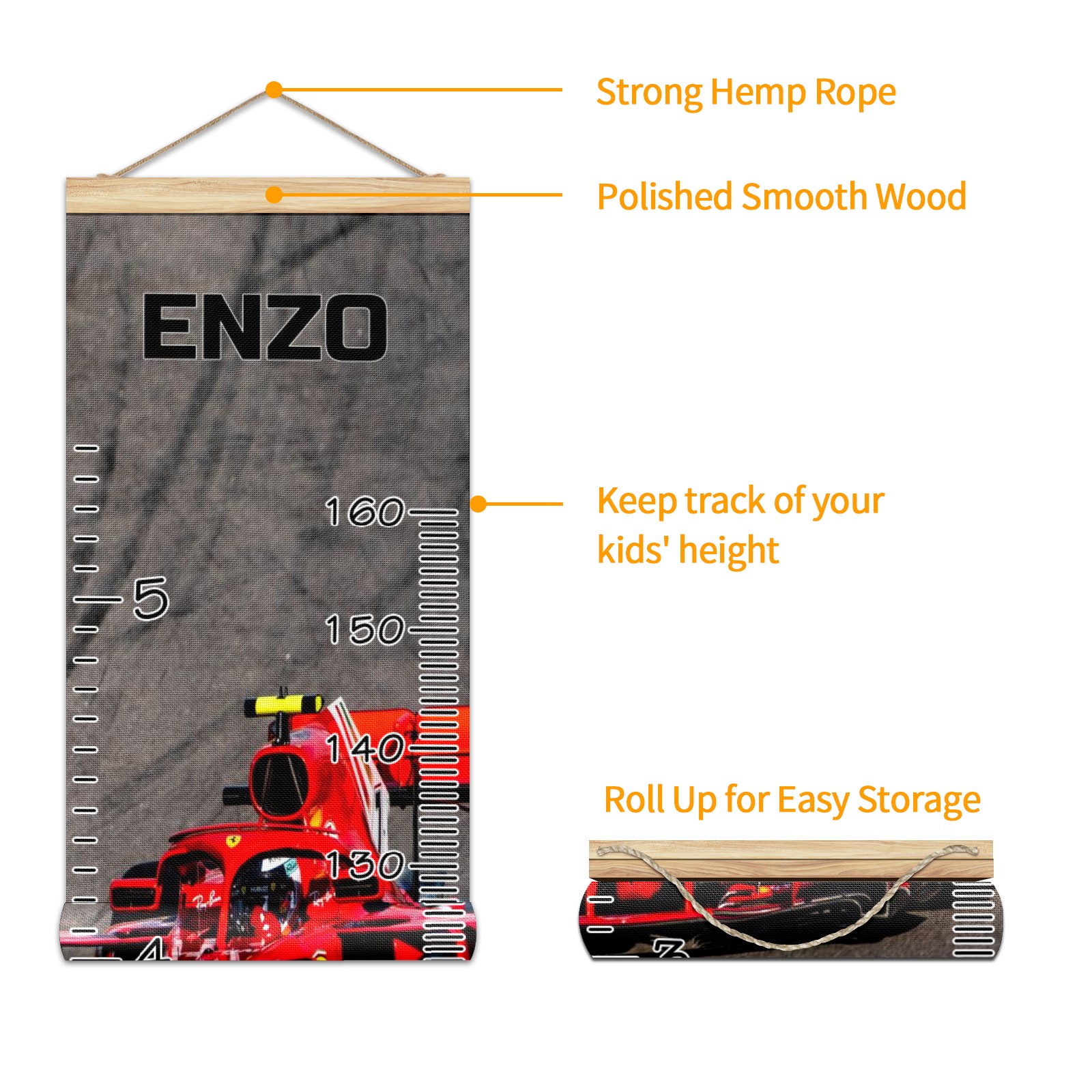 Personalized Kids Name Growth Chart Ruler for Wall Wood Frame Canvas Height Measure Chart 13.4x56 in Hanging Growth Chart RACE CAR3.18 Boys Girls Room Decor