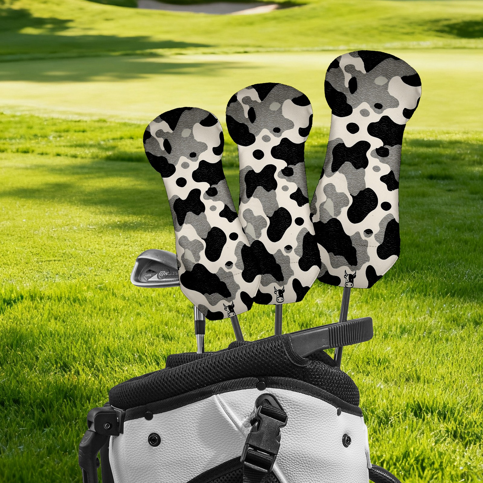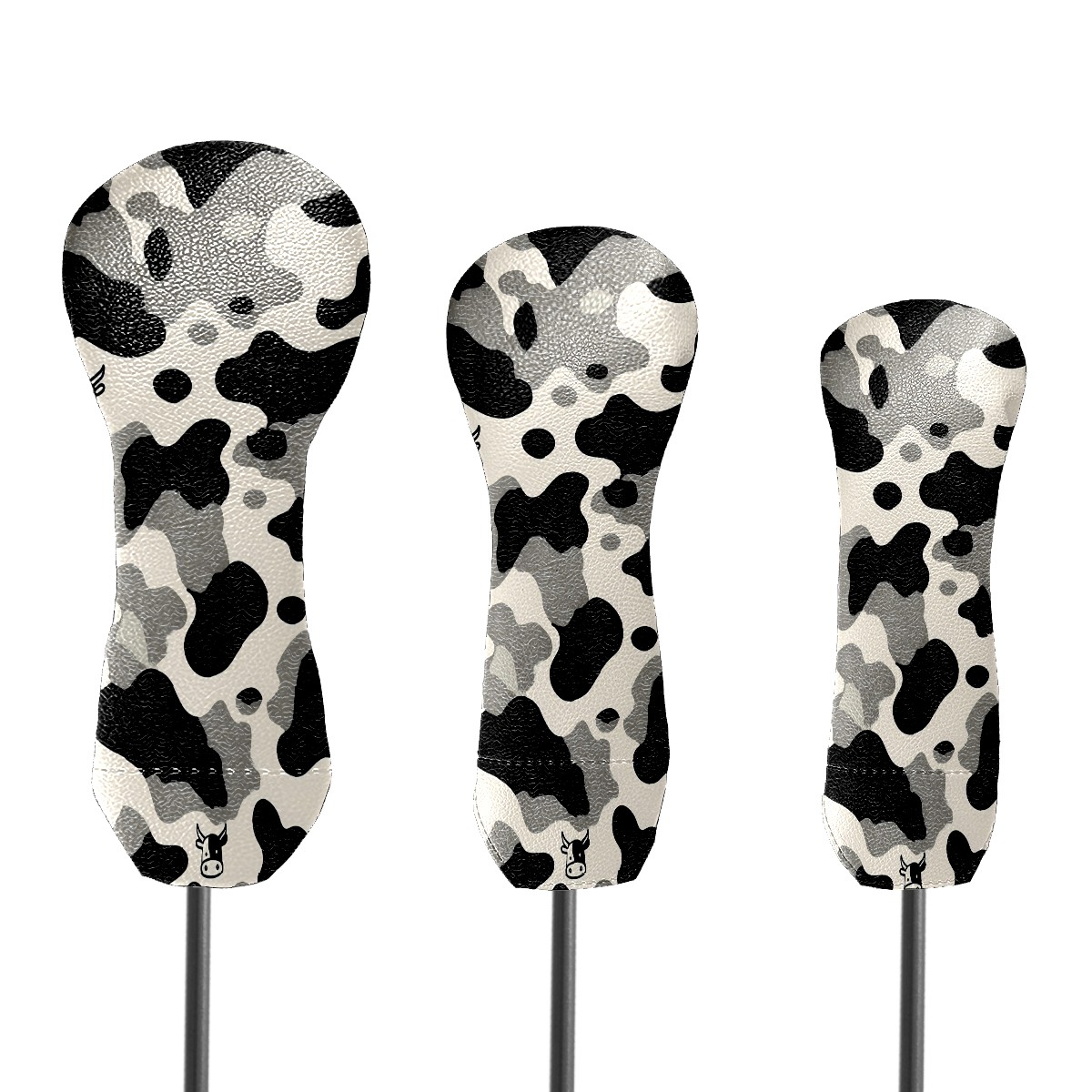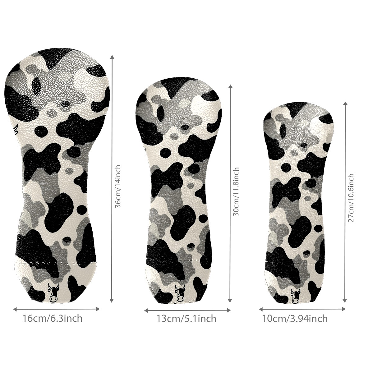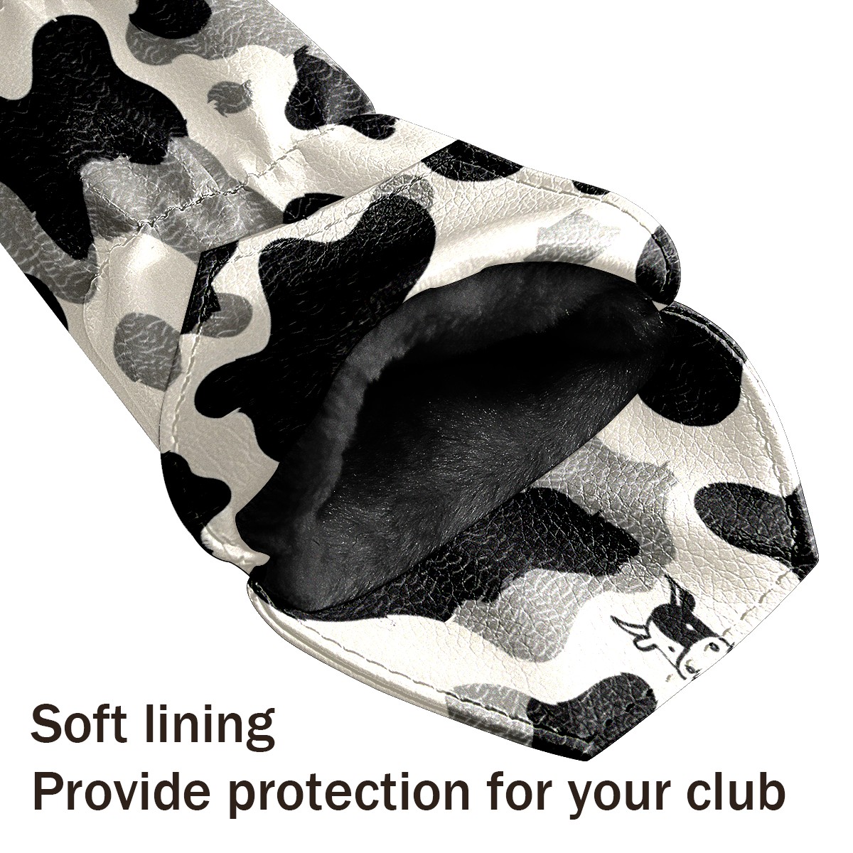 Golf Club Head Cover - Premium Leather Driver Fairway Wood Headcover, Soft Plush Lining Golf Headcover Fits Driver Hybrid for Men & Women Golfers (Vintage Cow Print)