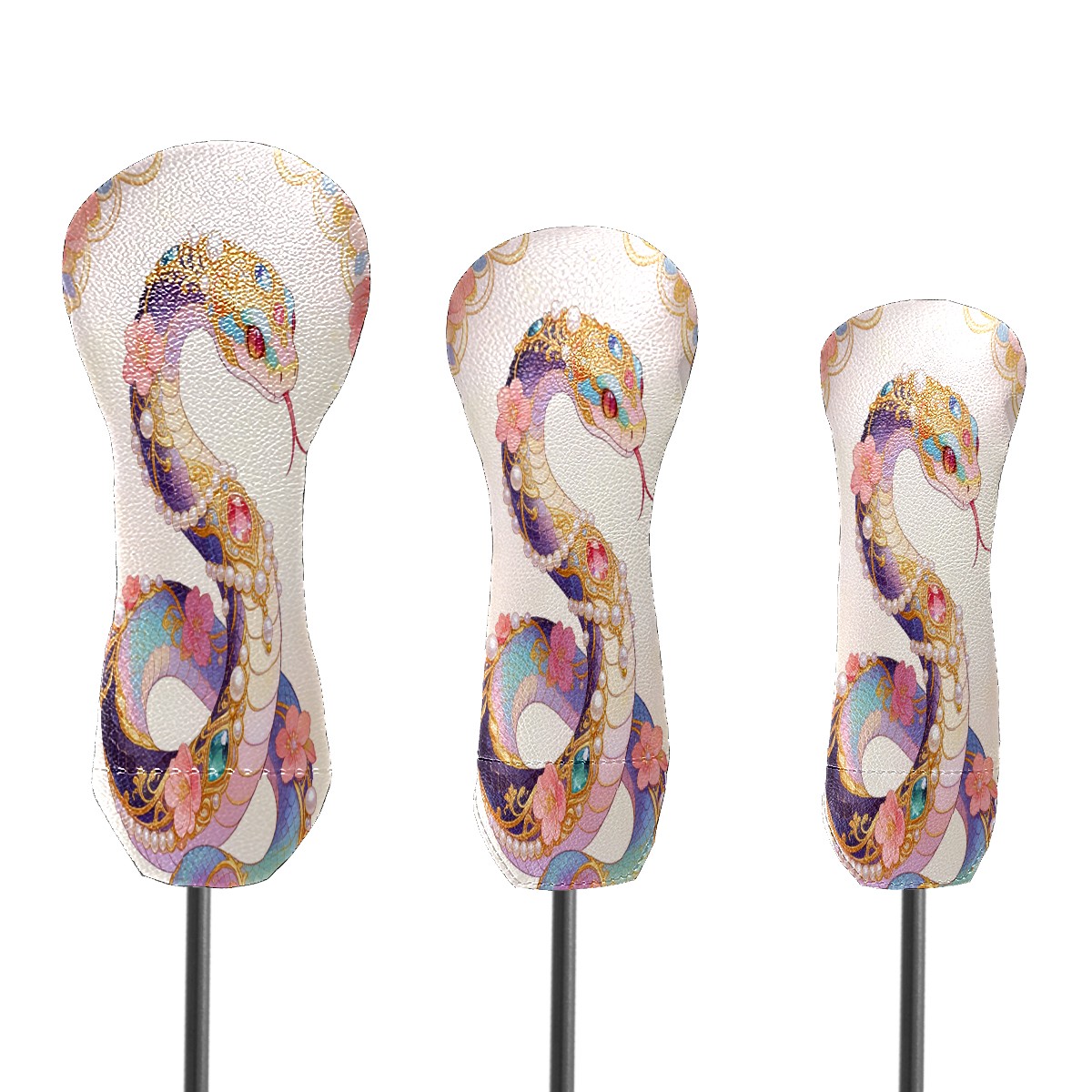Golf Club Head Cover - Premium Leather Driver Fairway Wood Headcover, Soft Plush Lining Golf Headcover Fits Driver Hybrid for Men & Women Golfers (Snake Pink)