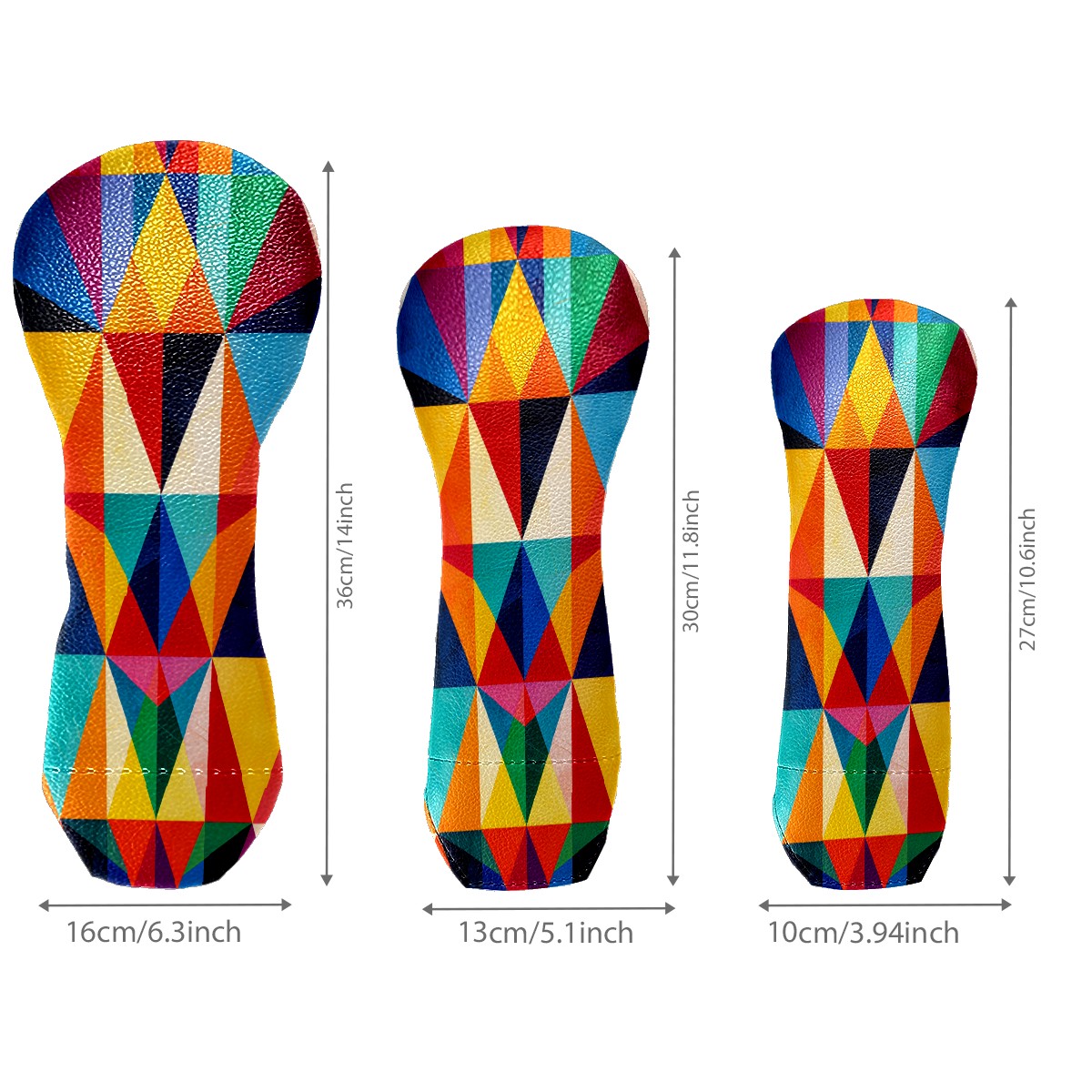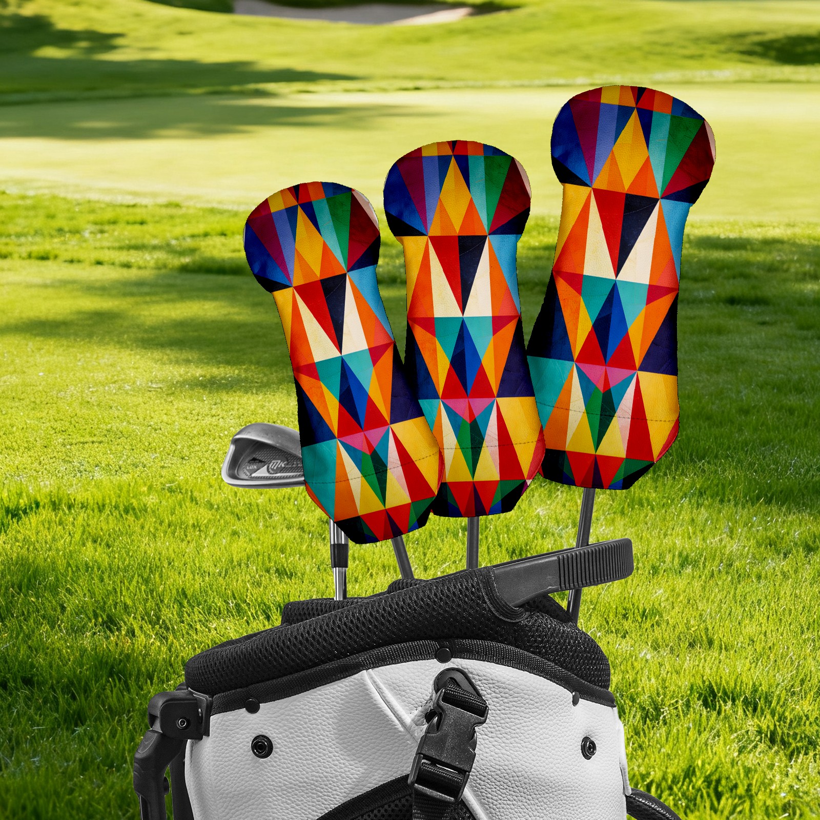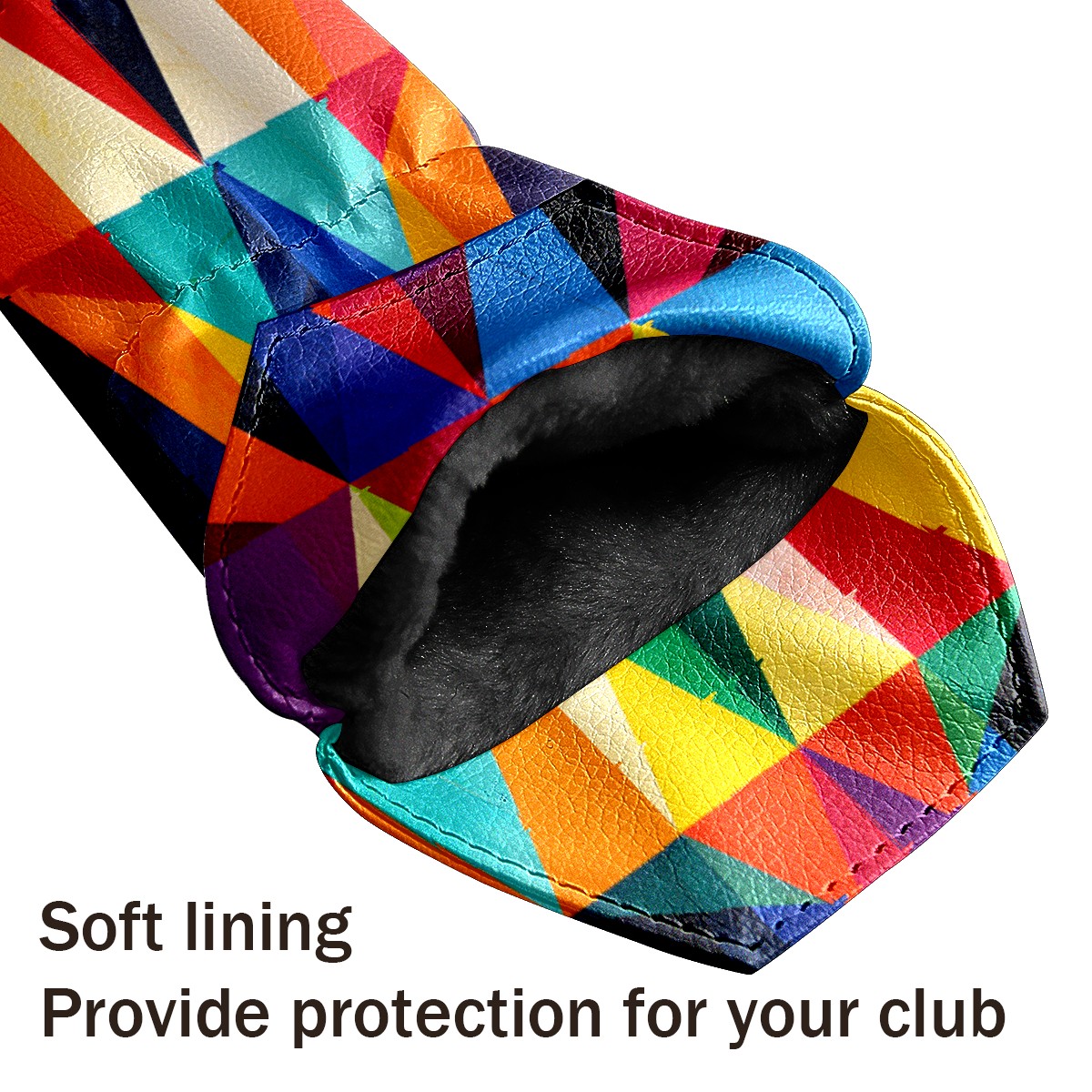 Golf Club Head Cover - Premium Leather Driver Fairway Wood Headcover, Soft Plush Lining Golf Headcover Fits Driver Hybrid for Men & Women Golfers (Geometric Triangles)
