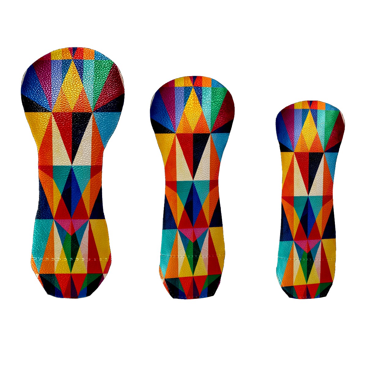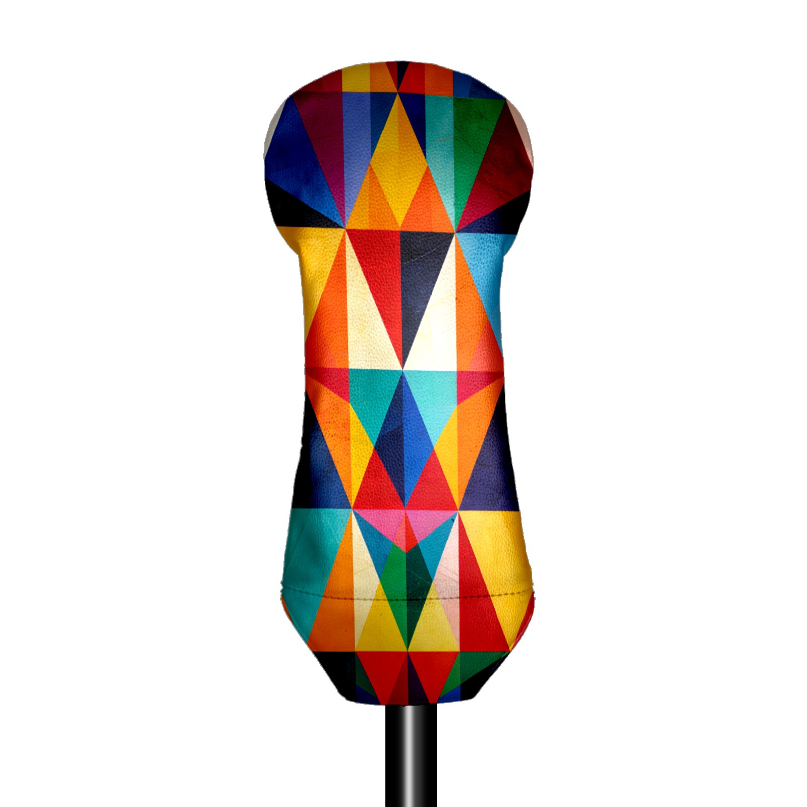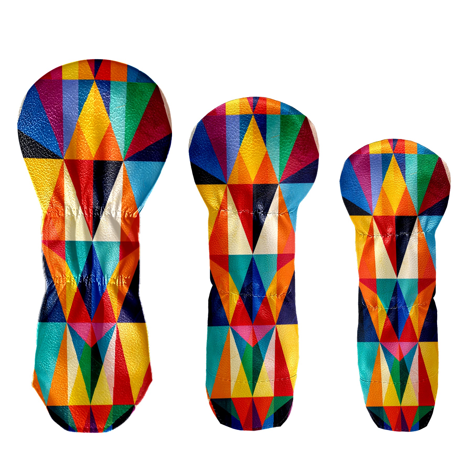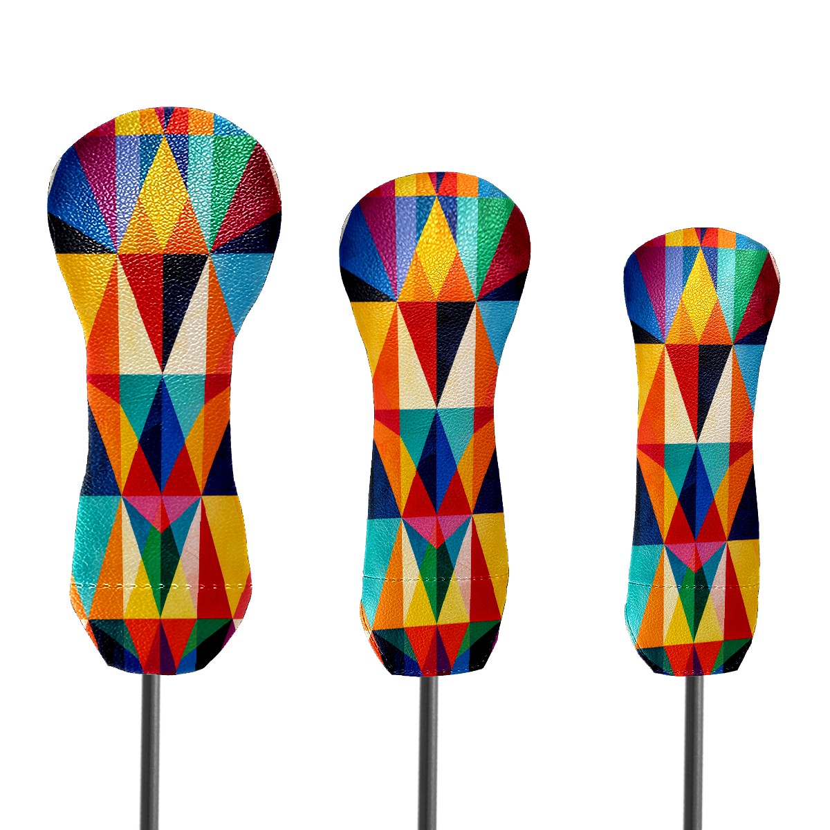 Golf Club Head Cover - Premium Leather Driver Fairway Wood Headcover, Soft Plush Lining Golf Headcover Fits Driver Hybrid for Men & Women Golfers (Geometric Triangles)