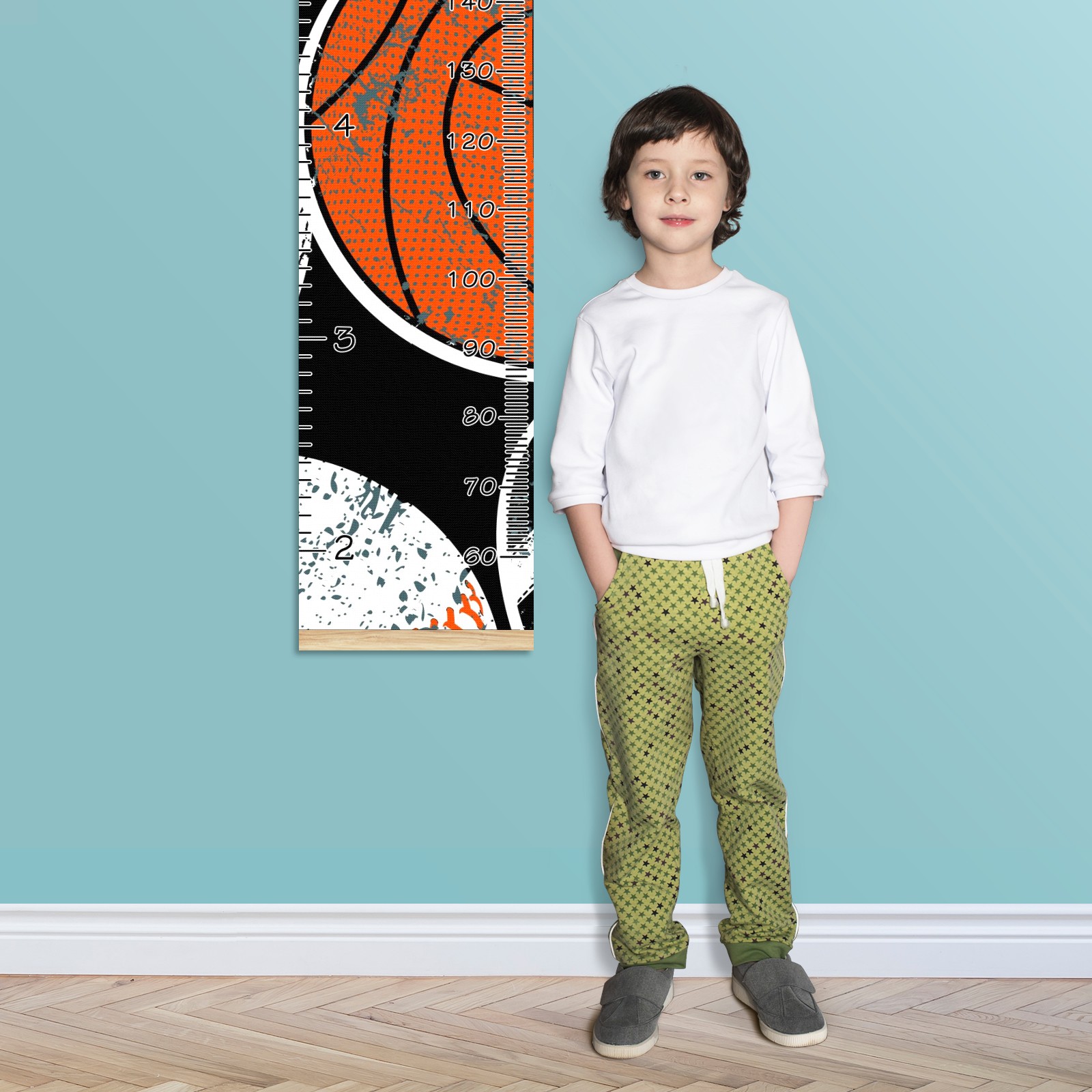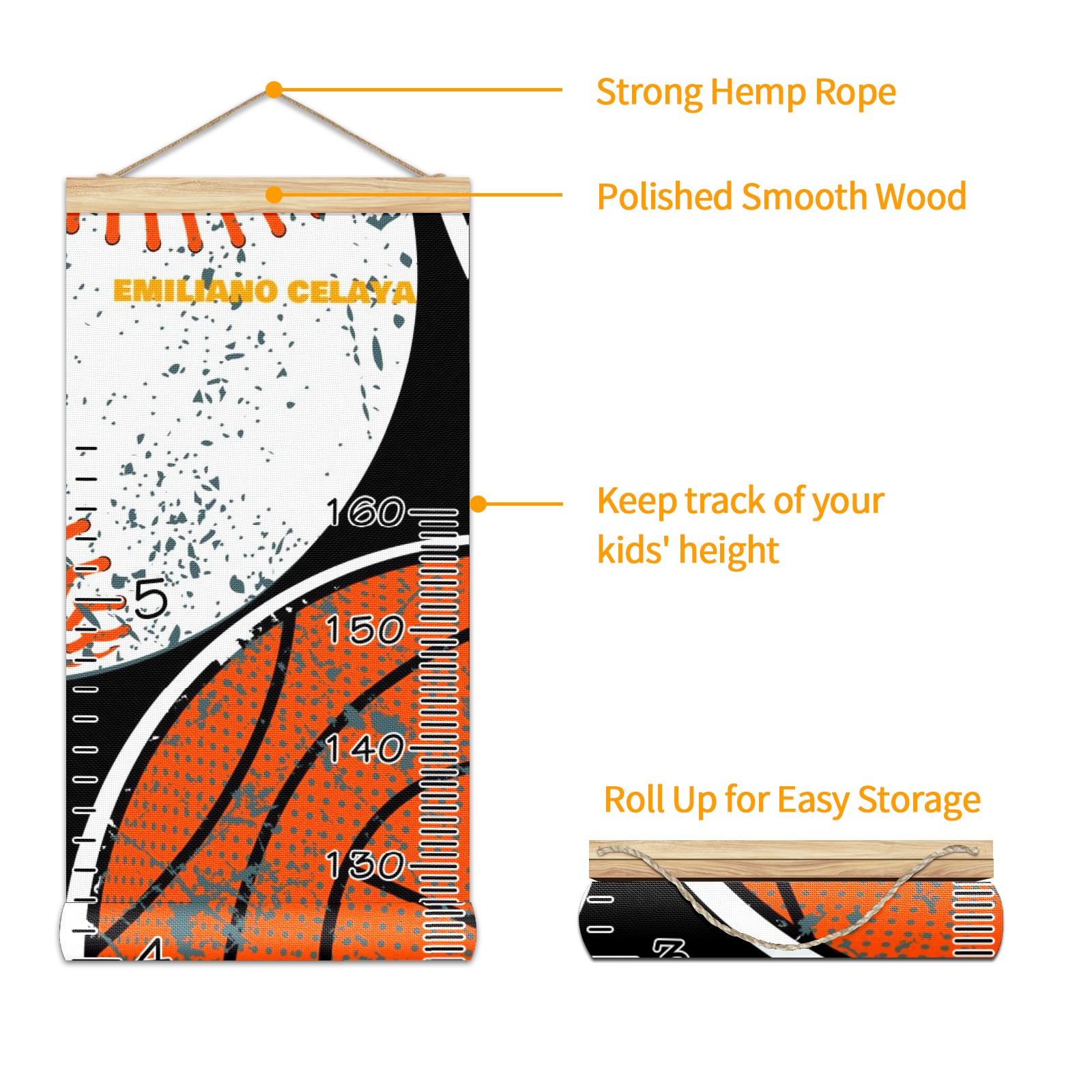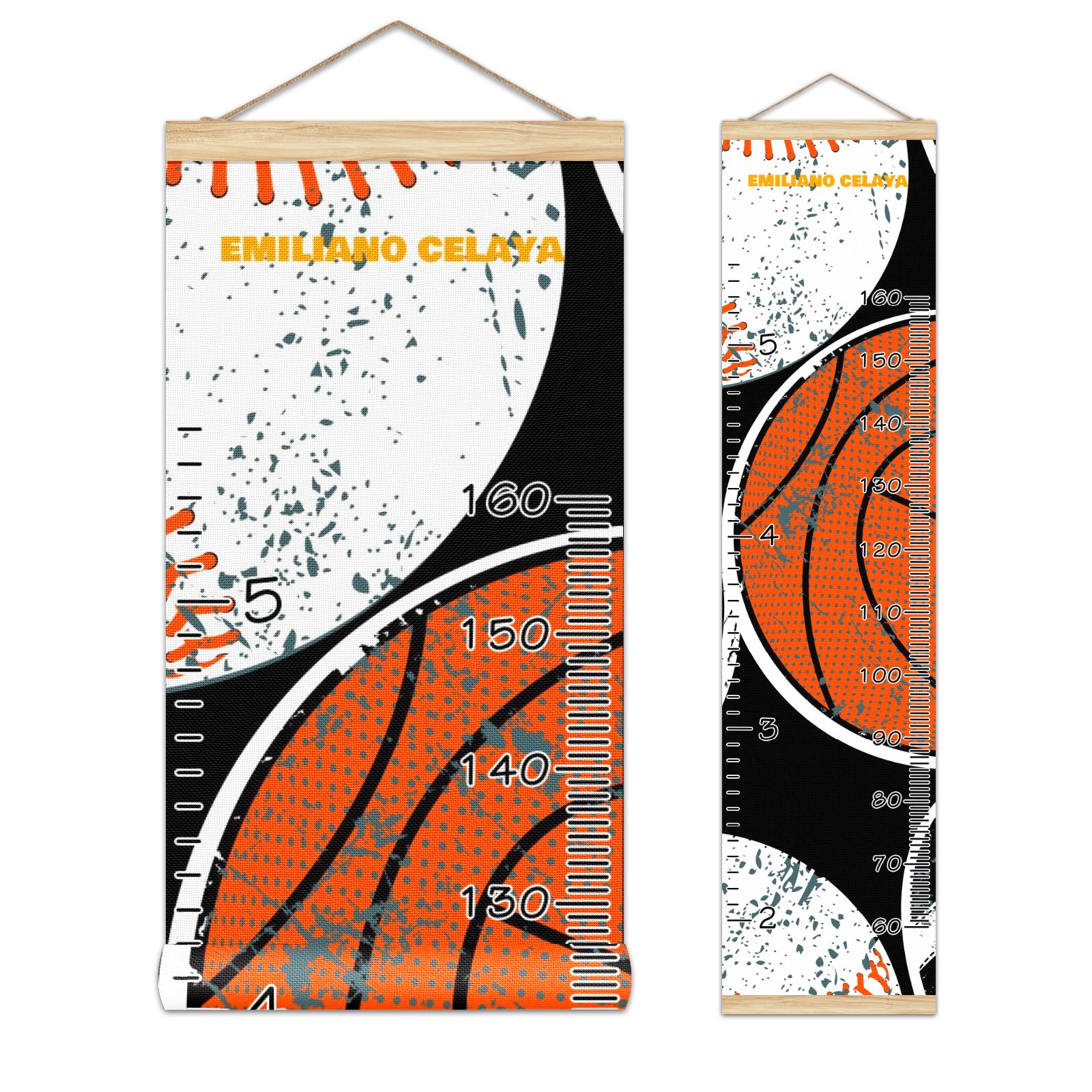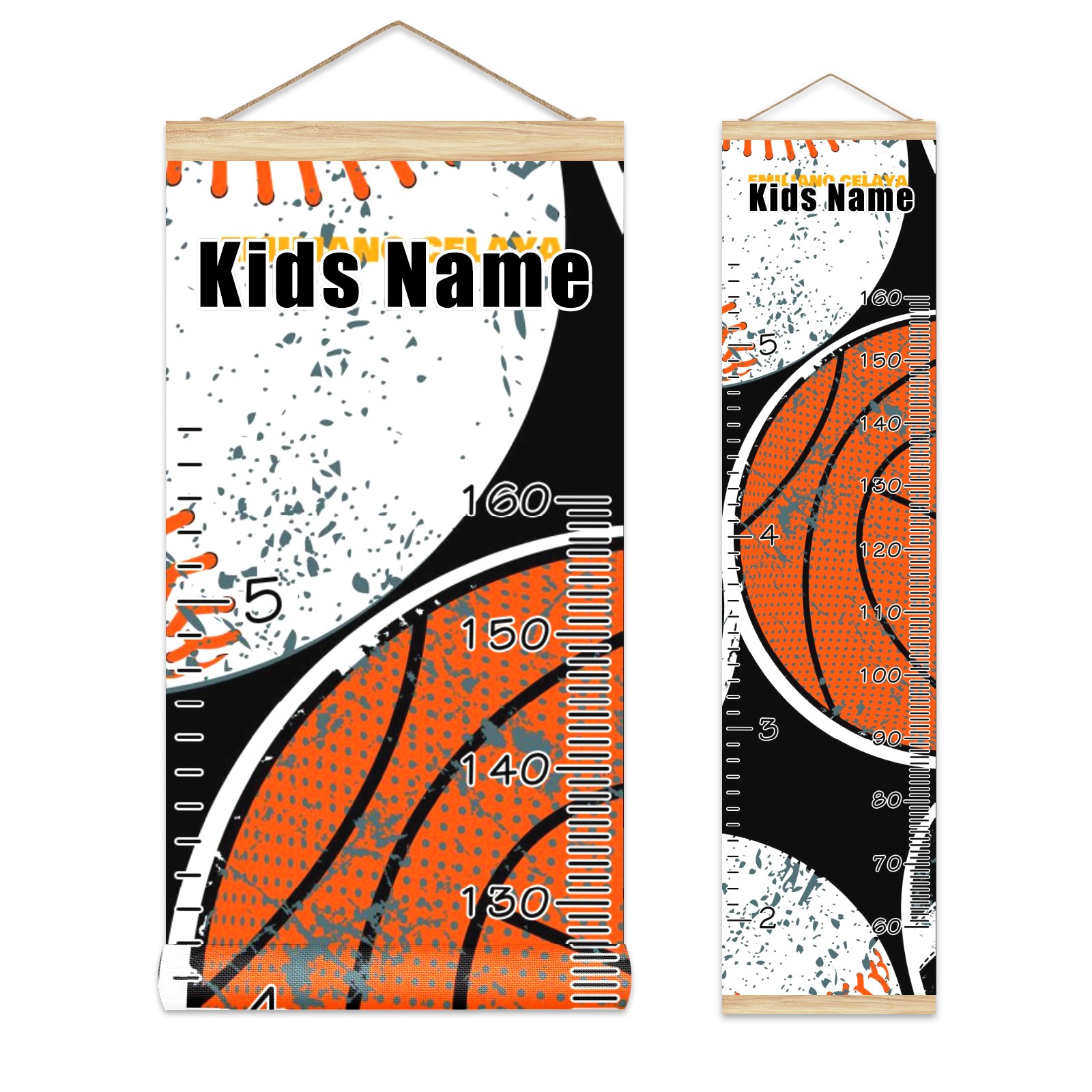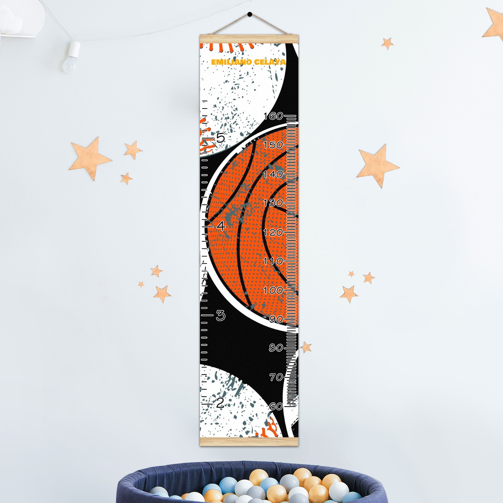 Personalized Kids Name Growth Chart Ruler for Wall Wood Frame Canvas Height Measure Chart 13.4x56 in Hanging Growth Chart Balls3.18 Boys Girls Room Decor