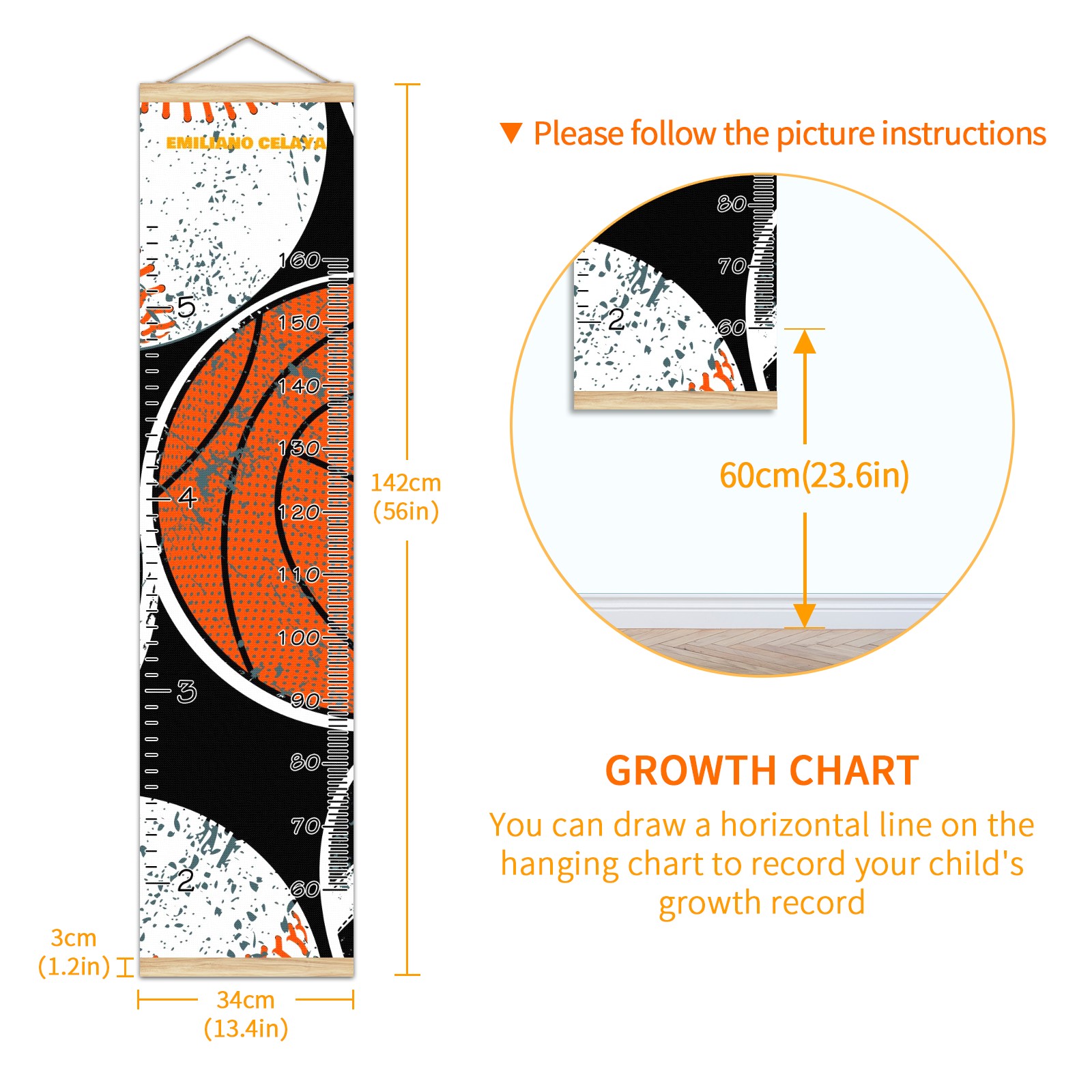 <p><b>Features:</b></p> <p>Rope for Hanging</p> <p>Material: Linen + Wood</p> <p>Dimensions: 13.4x56 inches</p> <p>Package Included: 1 * Baby Growth Chart</p> <p><b>Baby height growth chart can be used anywhere</b></p> <p>Ideal for kids nursery decoration, kids bedroom, interior walls or windows, playroom, living room, homedecoration.Add name and make the growth chart special!</p> <p><b>Easy to fold and carry</b></p> <p>With rope at the top of the growth chart, it is easy to install and remove.You can fold it and unfold any time any where.</p> <p><b>Perfect Gift Idea for Kids</b></p> <p>Environmental and non-toxic for kids use, it must be a perfect gift for baby, kids, girls, and boys.This is a best choice for your friend who have kids or baby as a popular gift.</p> <p><b>Easy to read</b></p> <p>Measurement accrate with 2 scales, Centimeters and feet. The letters are big enough, very easy to read.</p> <p><b>60cm(23.6inch) Over Ground Design</b></p> <p>Not only can protect from dust and other damage, but also will not interfere in floor cleaning.</p>