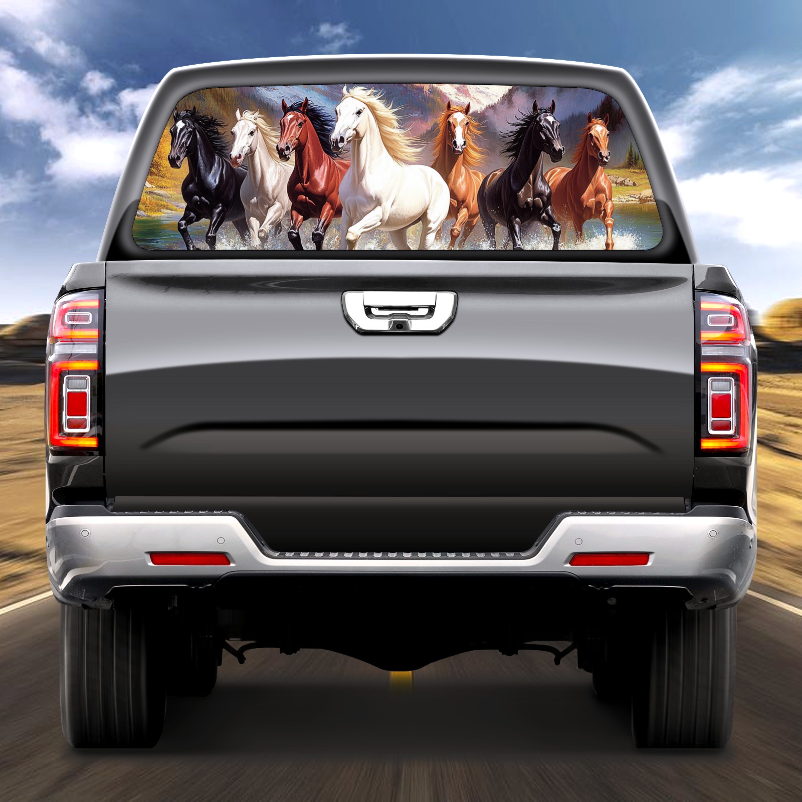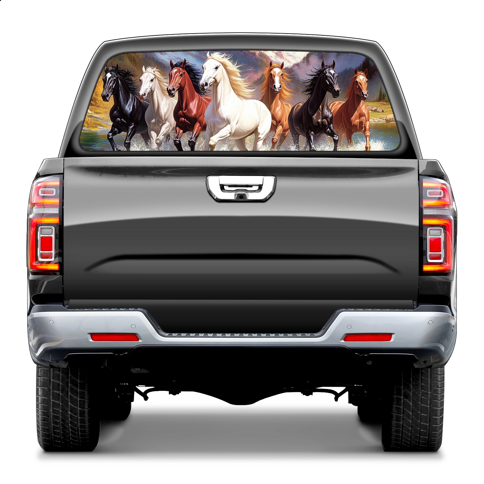 Truck Rear Window Graphic Decals Wild Horses Back Window Perforated Vinyl Decal for Truck Car Pickup Back Window Sticker Film 66" x 22"