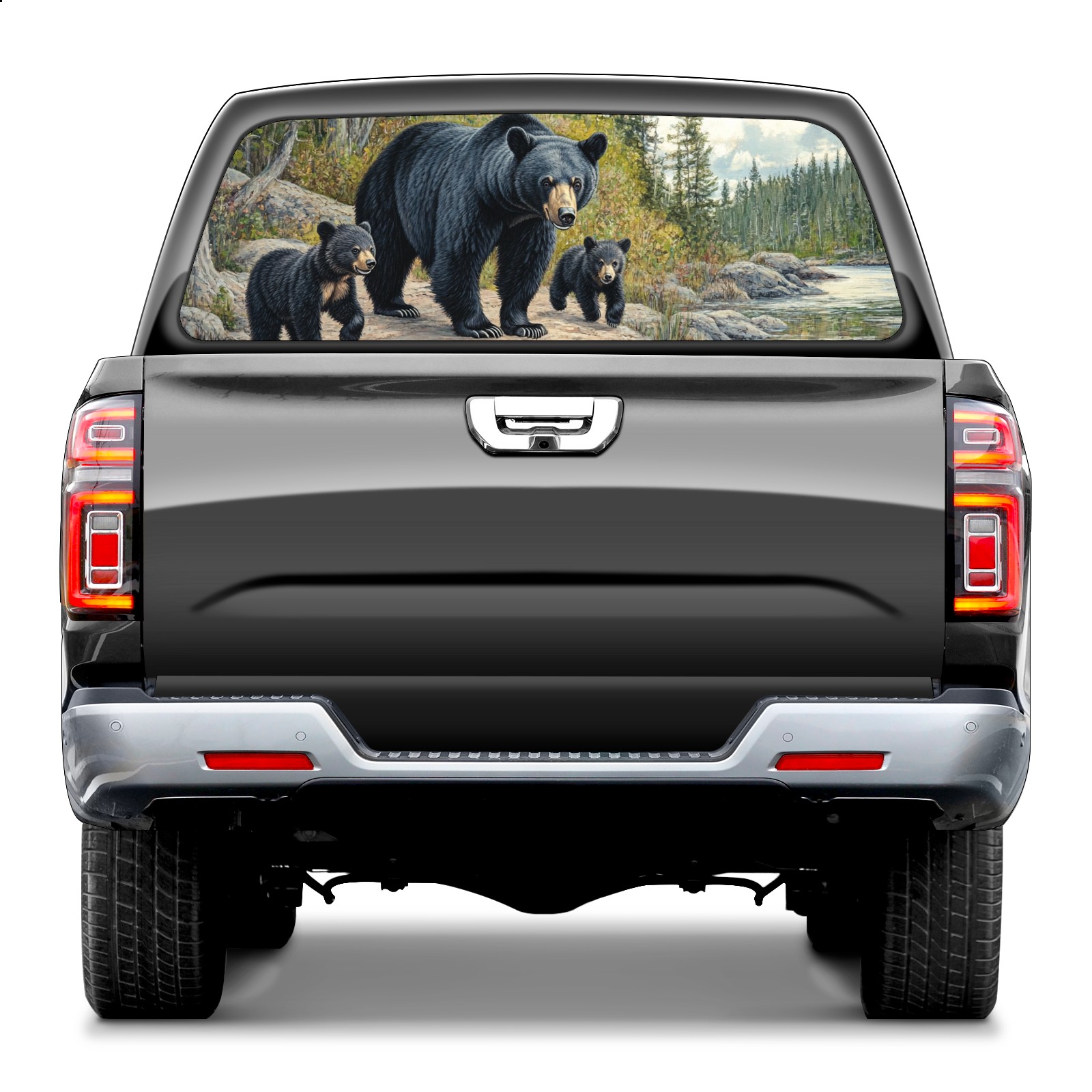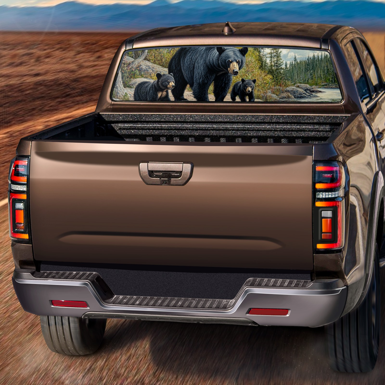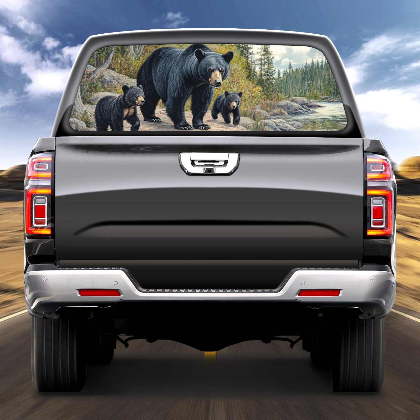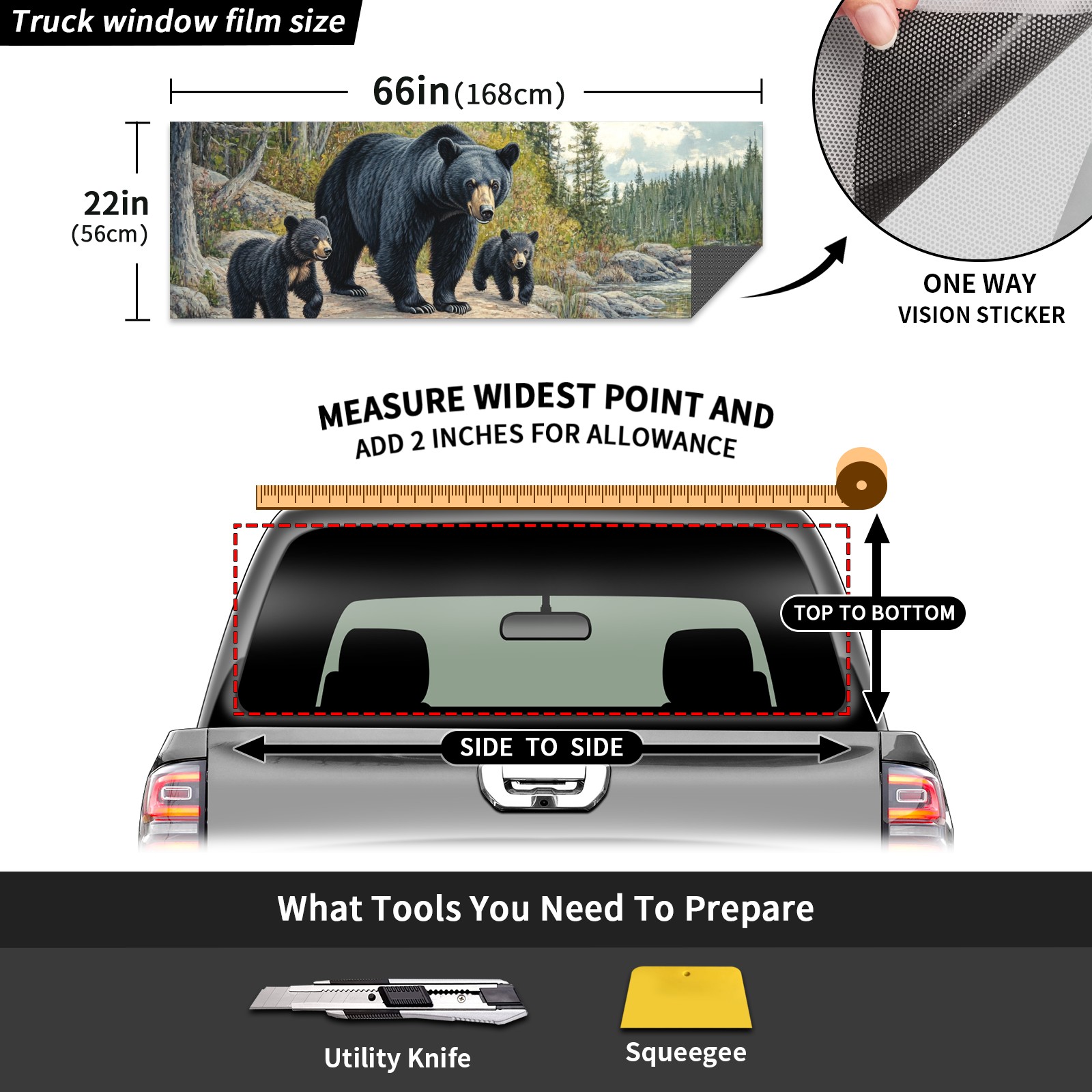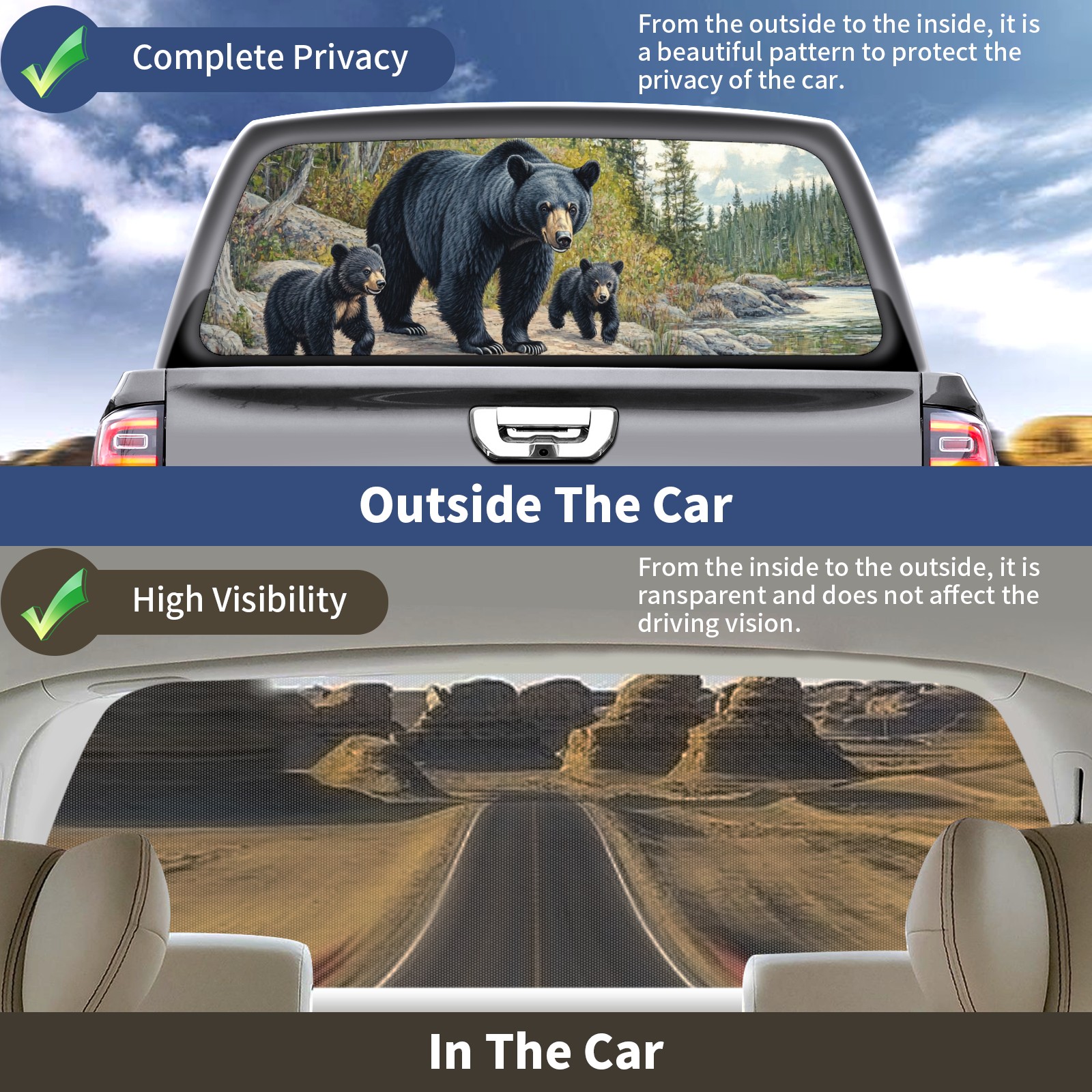 Truck Rear Window Graphic Decals Bear Black Back Window Perforated Vinyl Decal for Truck Car Pickup Back Window Sticker Film 66" x 22"