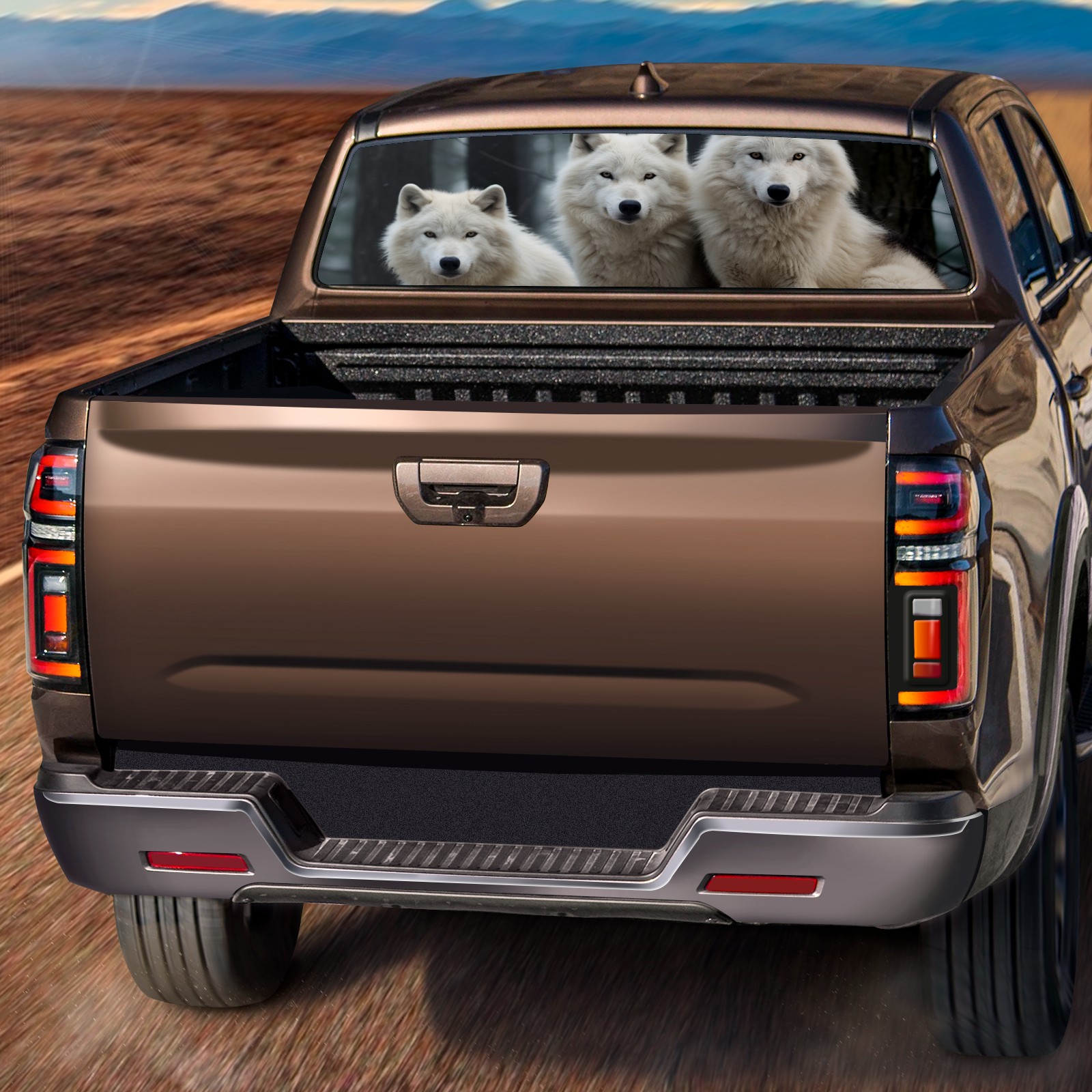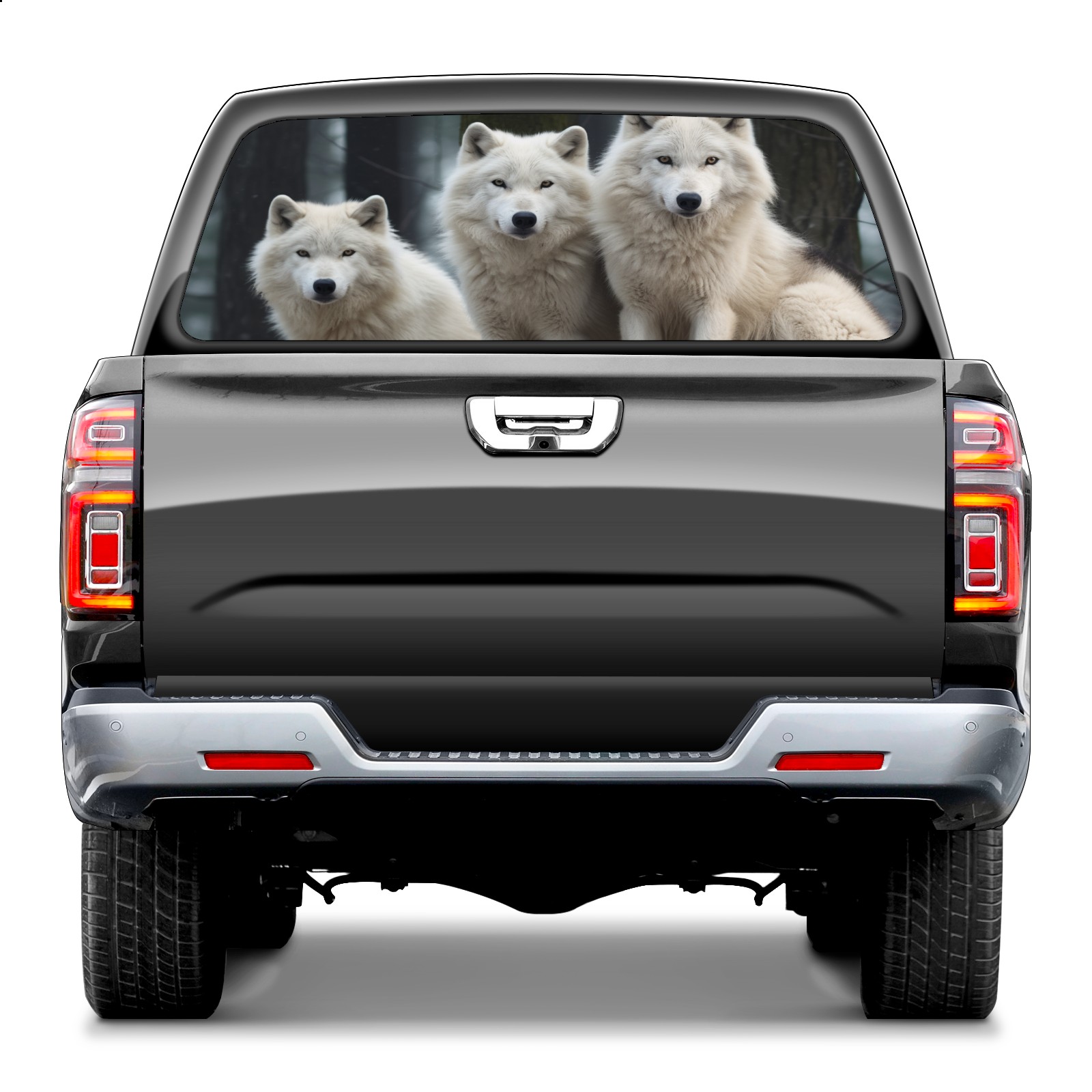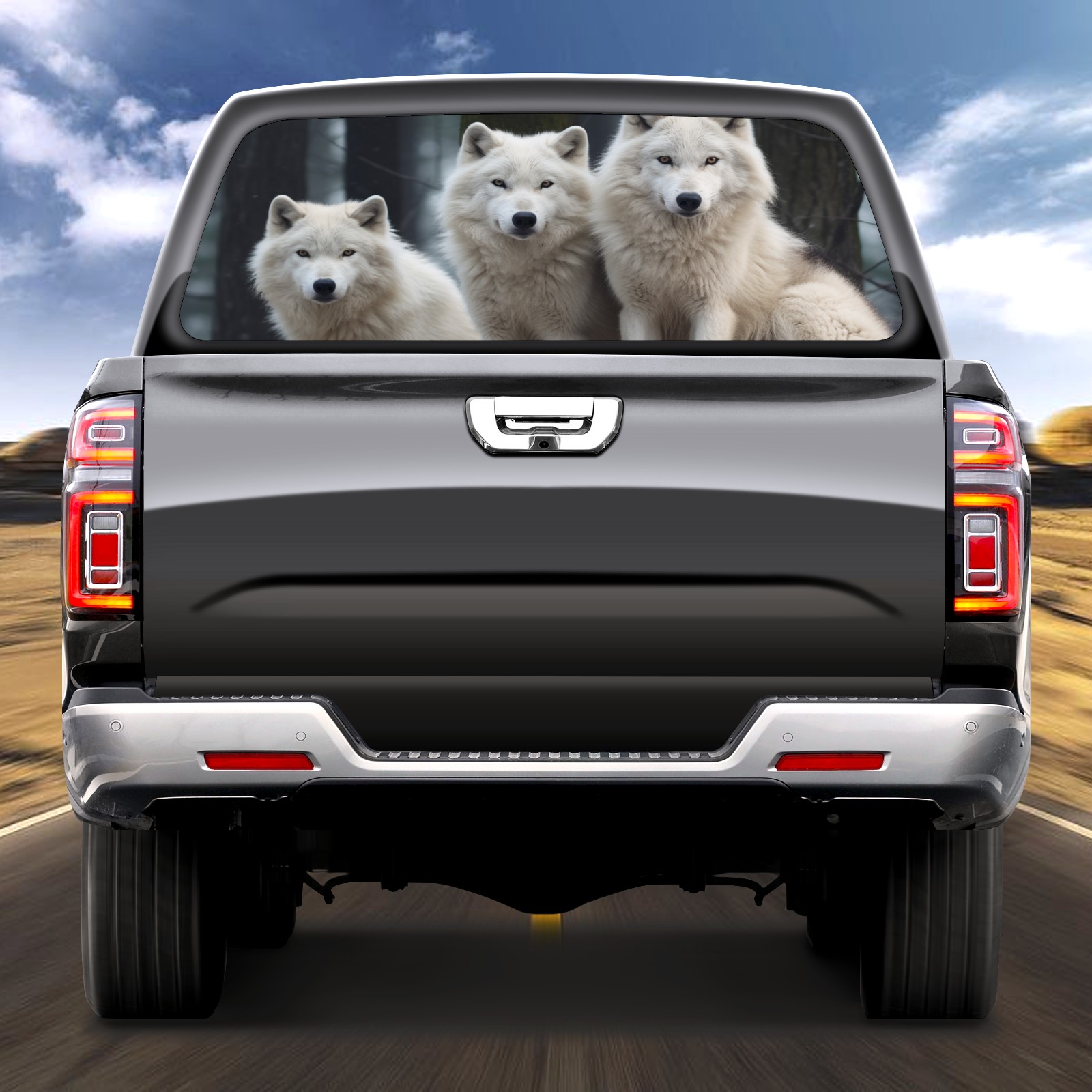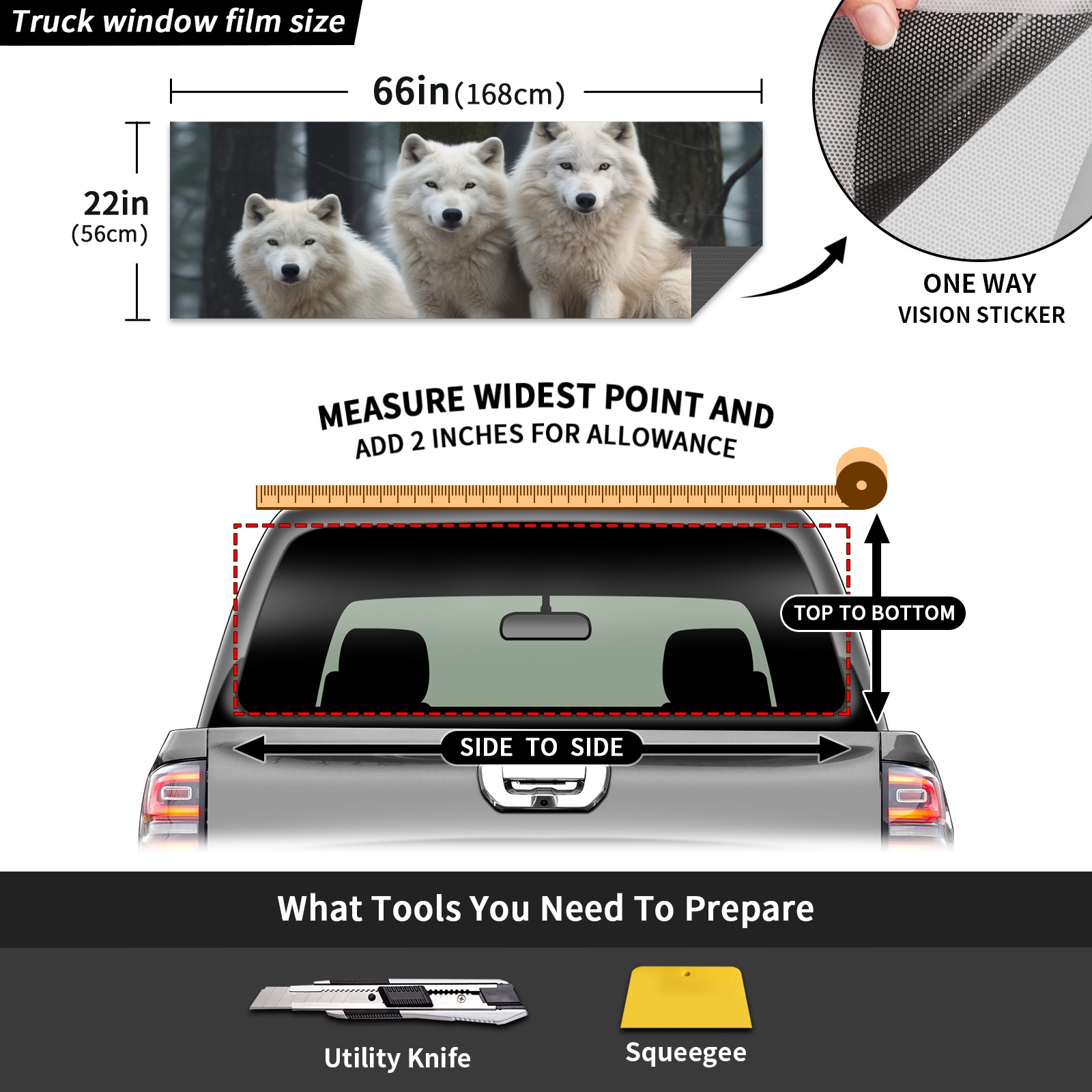 Truck Rear Window Graphic Decals White Wolf Back Window Perforated Vinyl Decal for Truck Car Pickup Back Window Sticker Film 66" x 22"