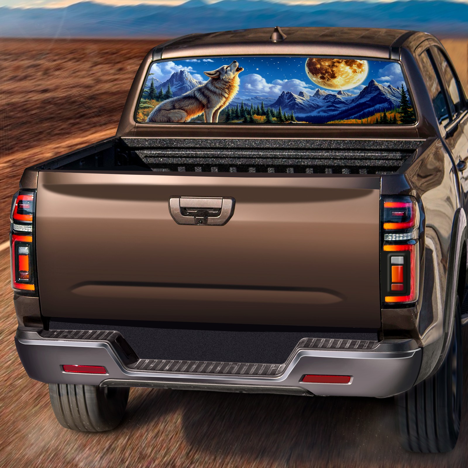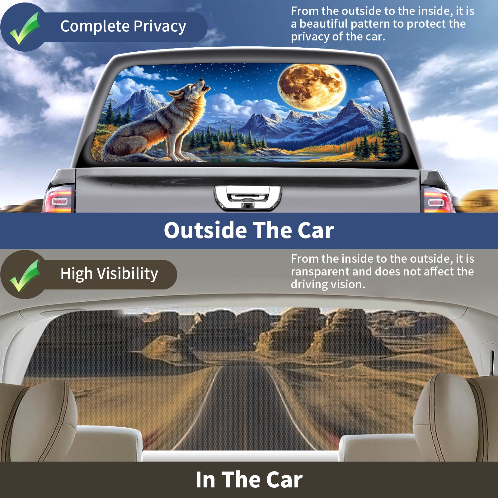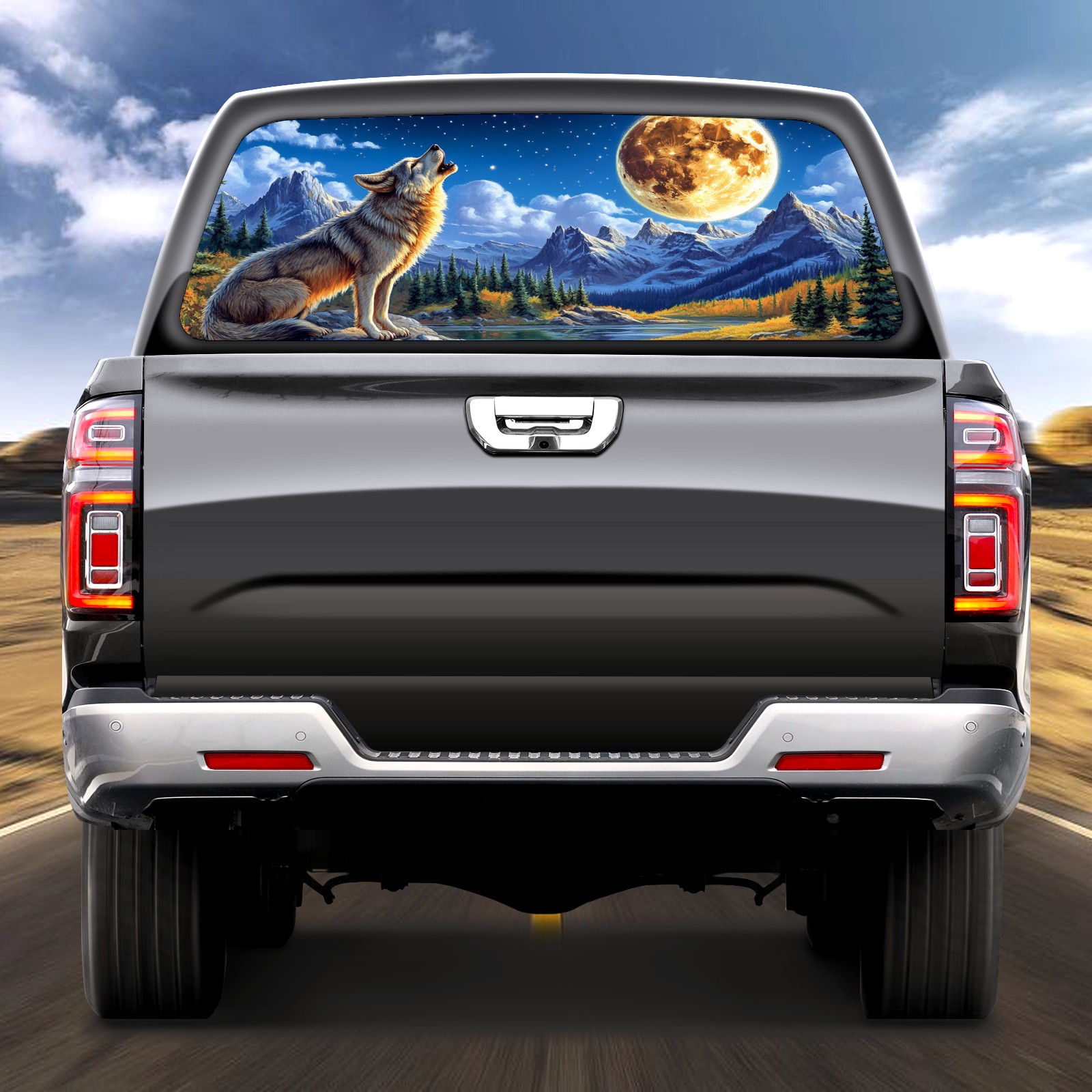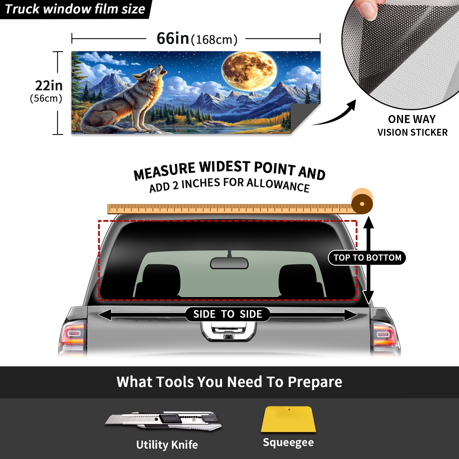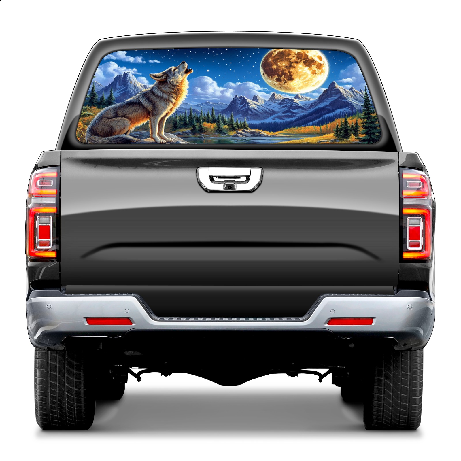 Truck Rear Window Graphic Decals Wolf Howling Back Window Perforated Vinyl Decal for Truck Car Pickup Back Window Sticker Film 66" x 22"