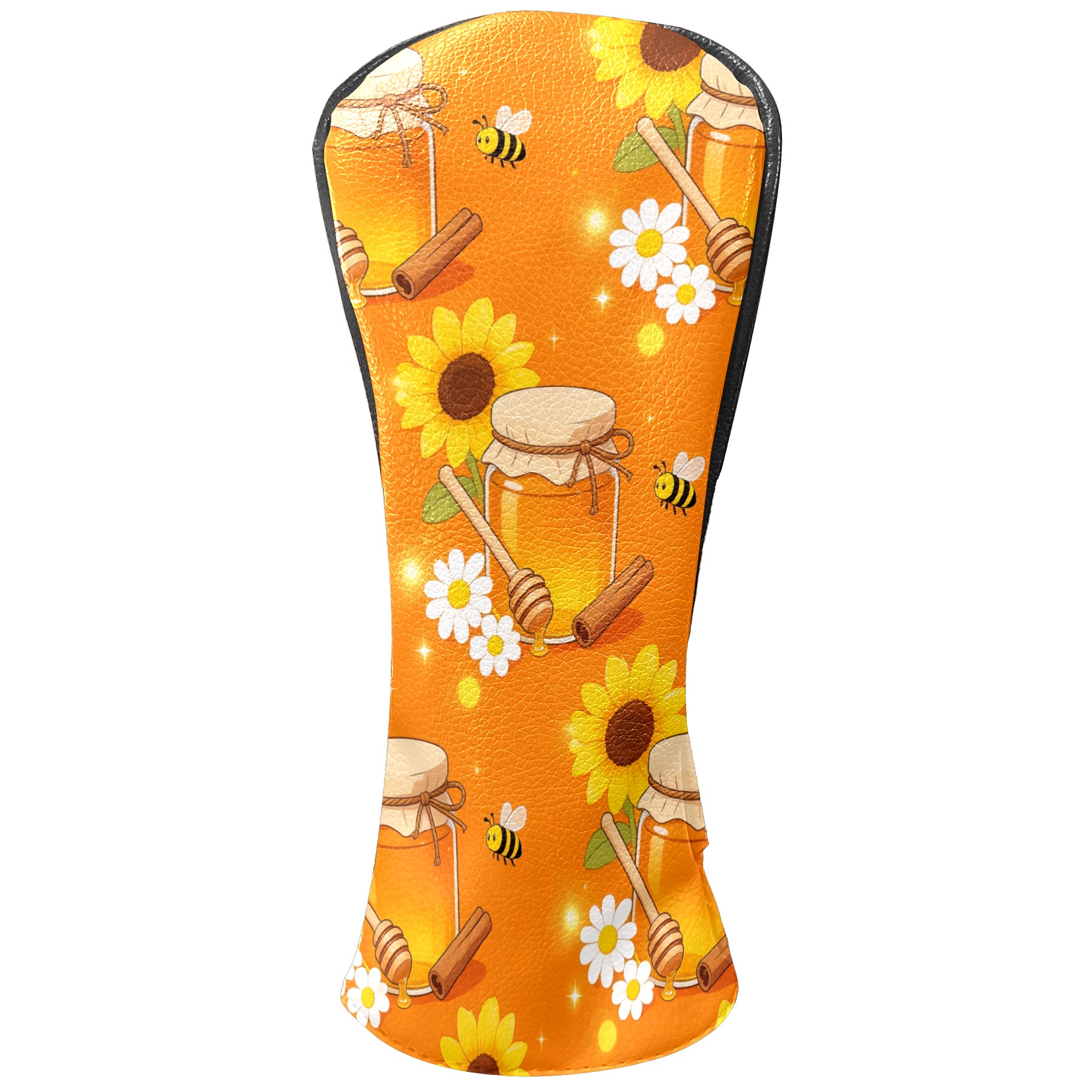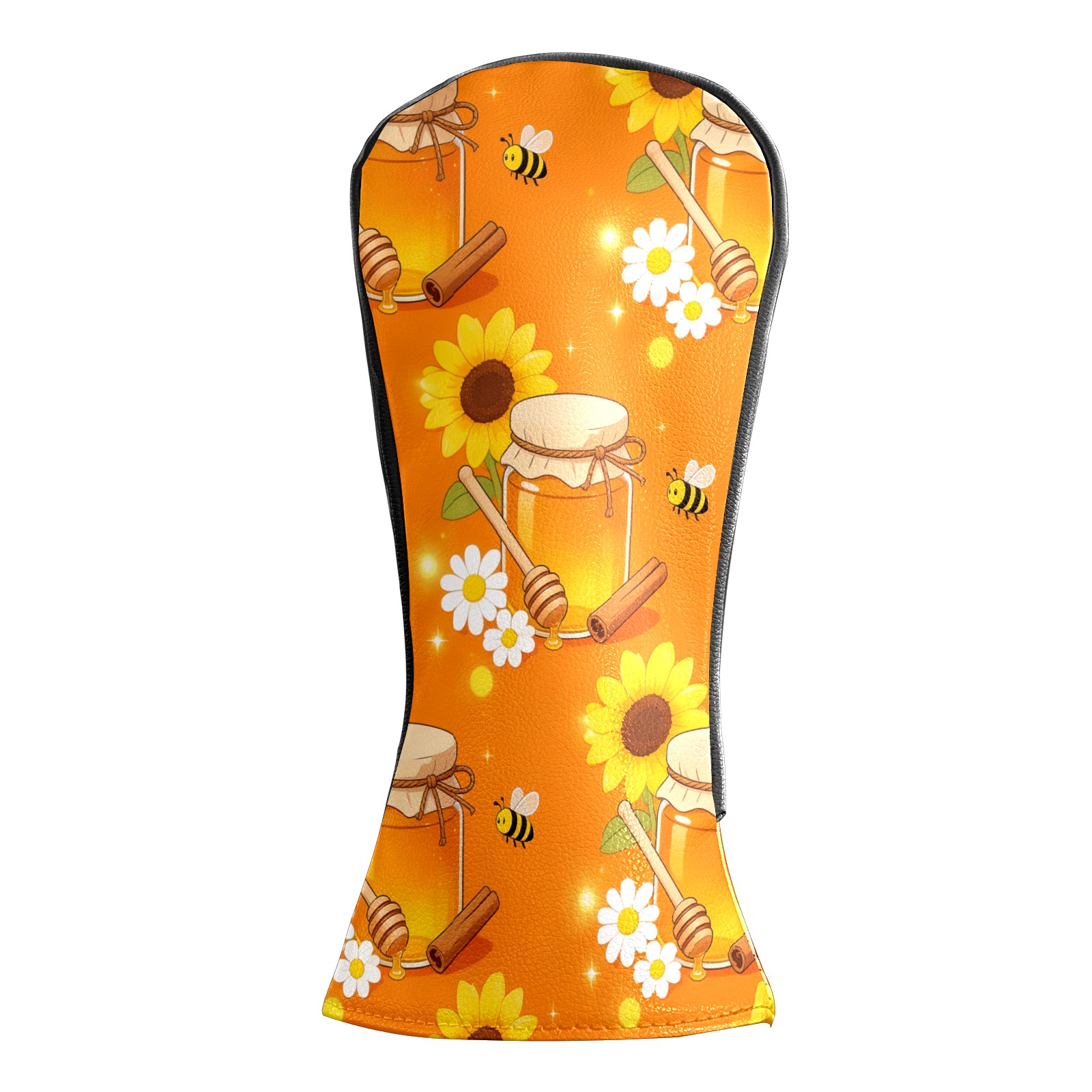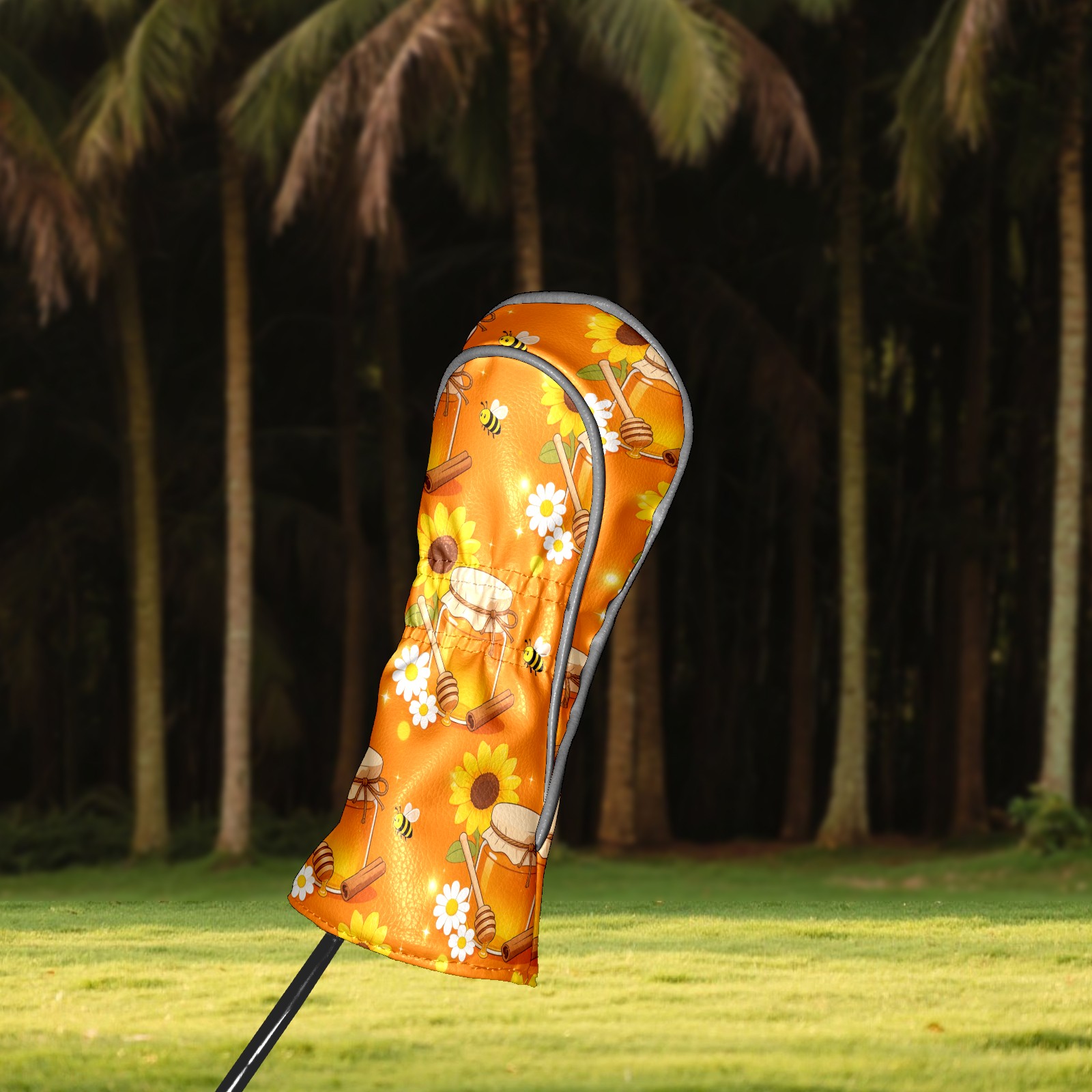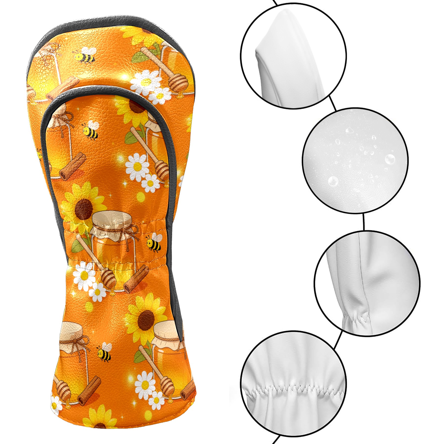 Golf Driver Head Cover Leather Driver Fairway Headcover, Premium Golf Club Covers with Plush Lining Girls Womens Mens Head Cover for Golf Clubs (Flowers Honey Jar Orange)