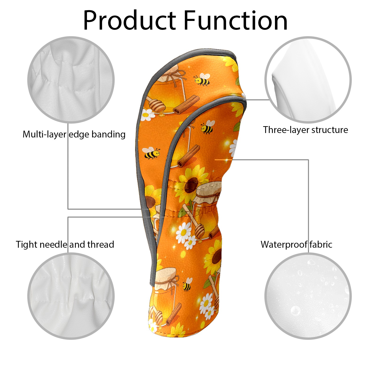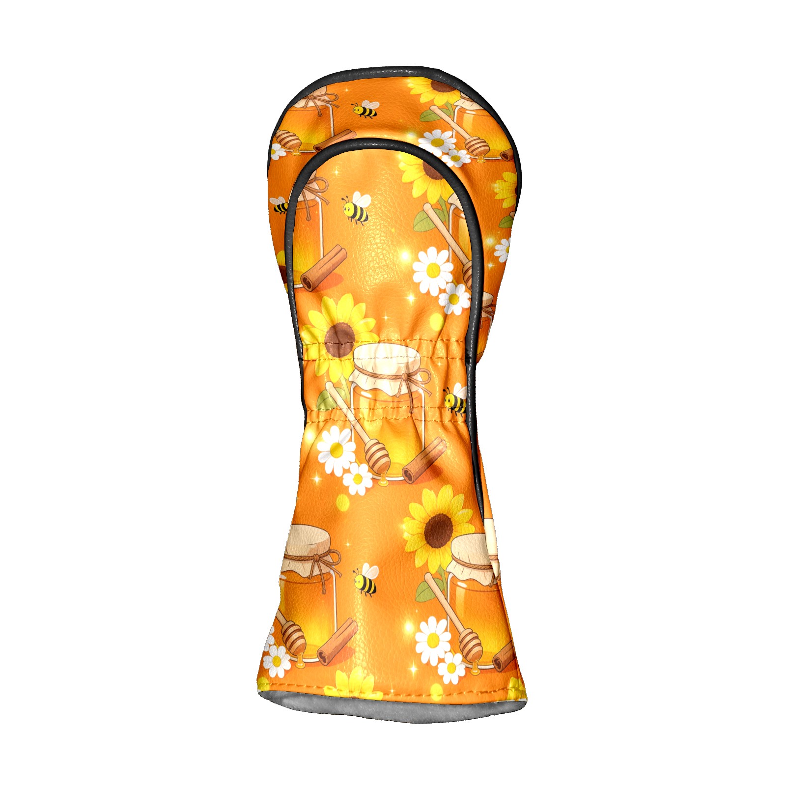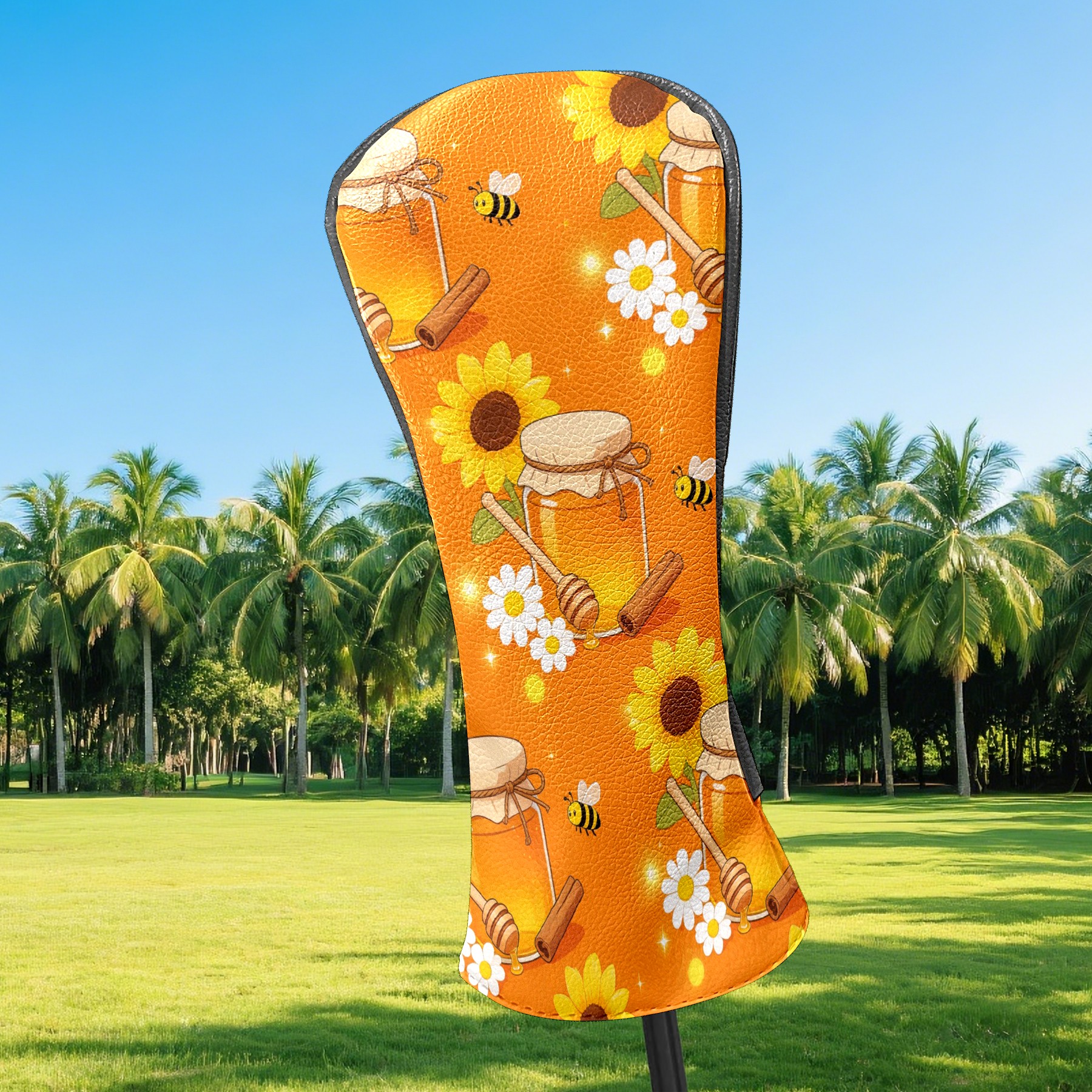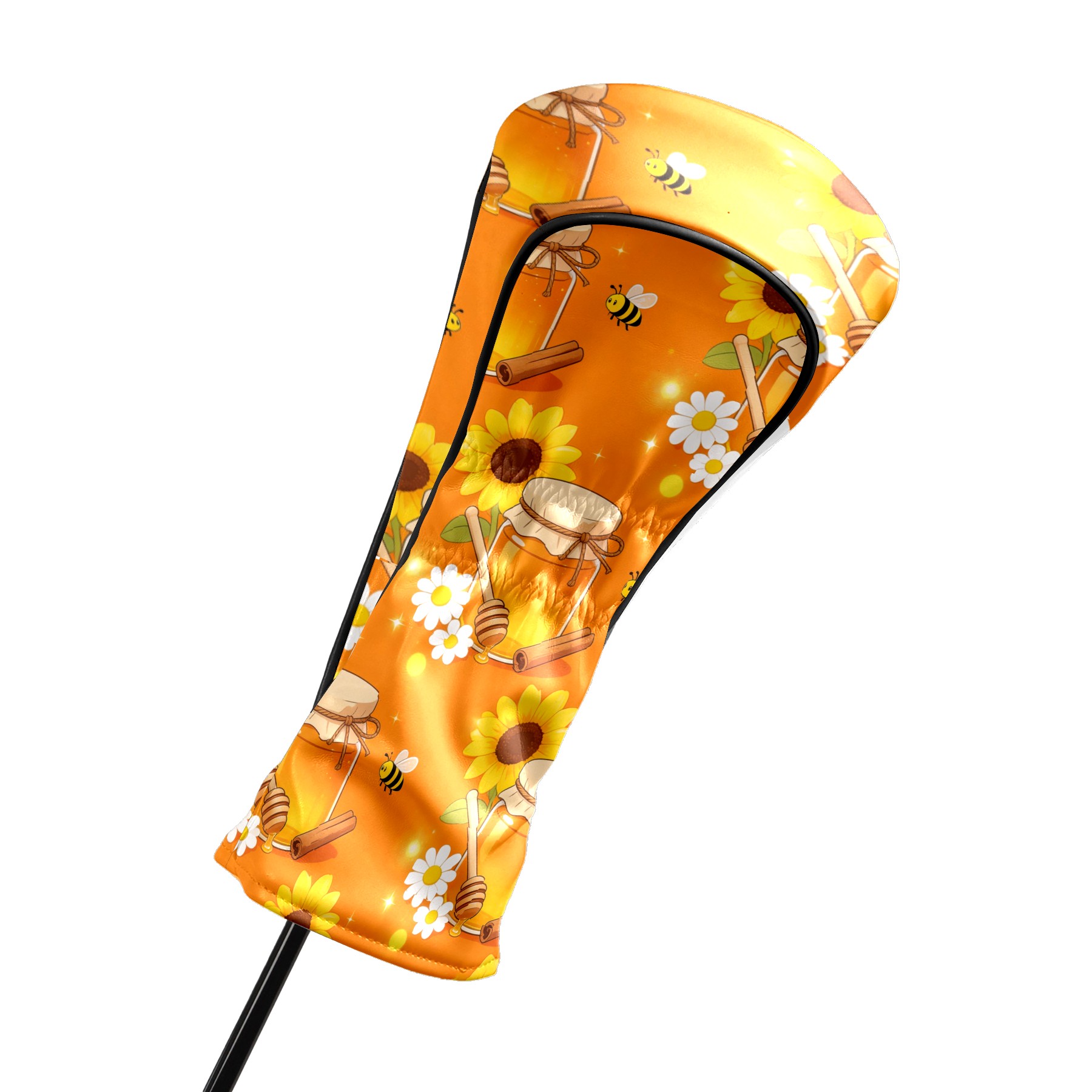 Golf Driver Head Cover Leather Driver Fairway Headcover, Premium Golf Club Covers with Plush Lining Girls Womens Mens Head Cover for Golf Clubs (Flowers Honey Jar Orange)