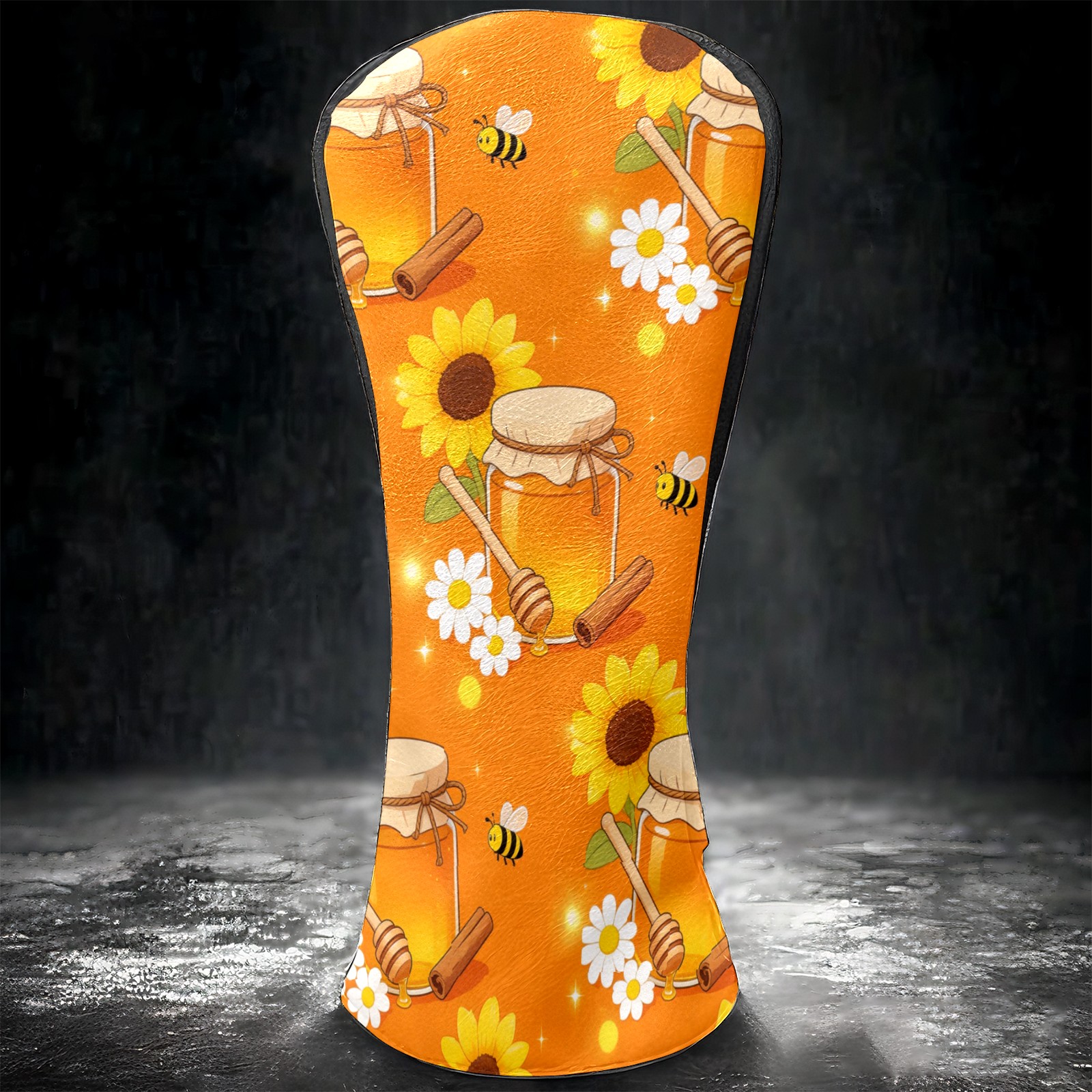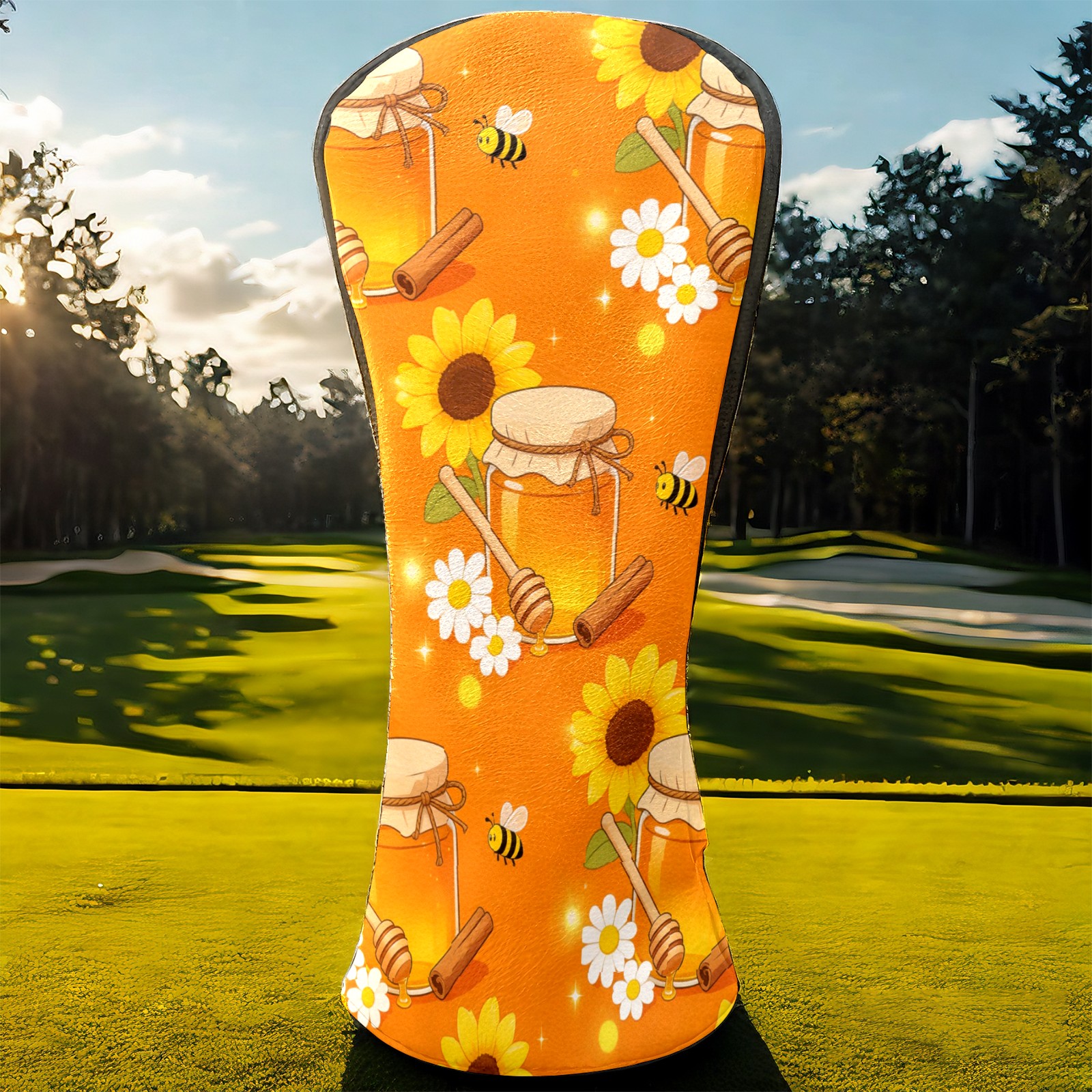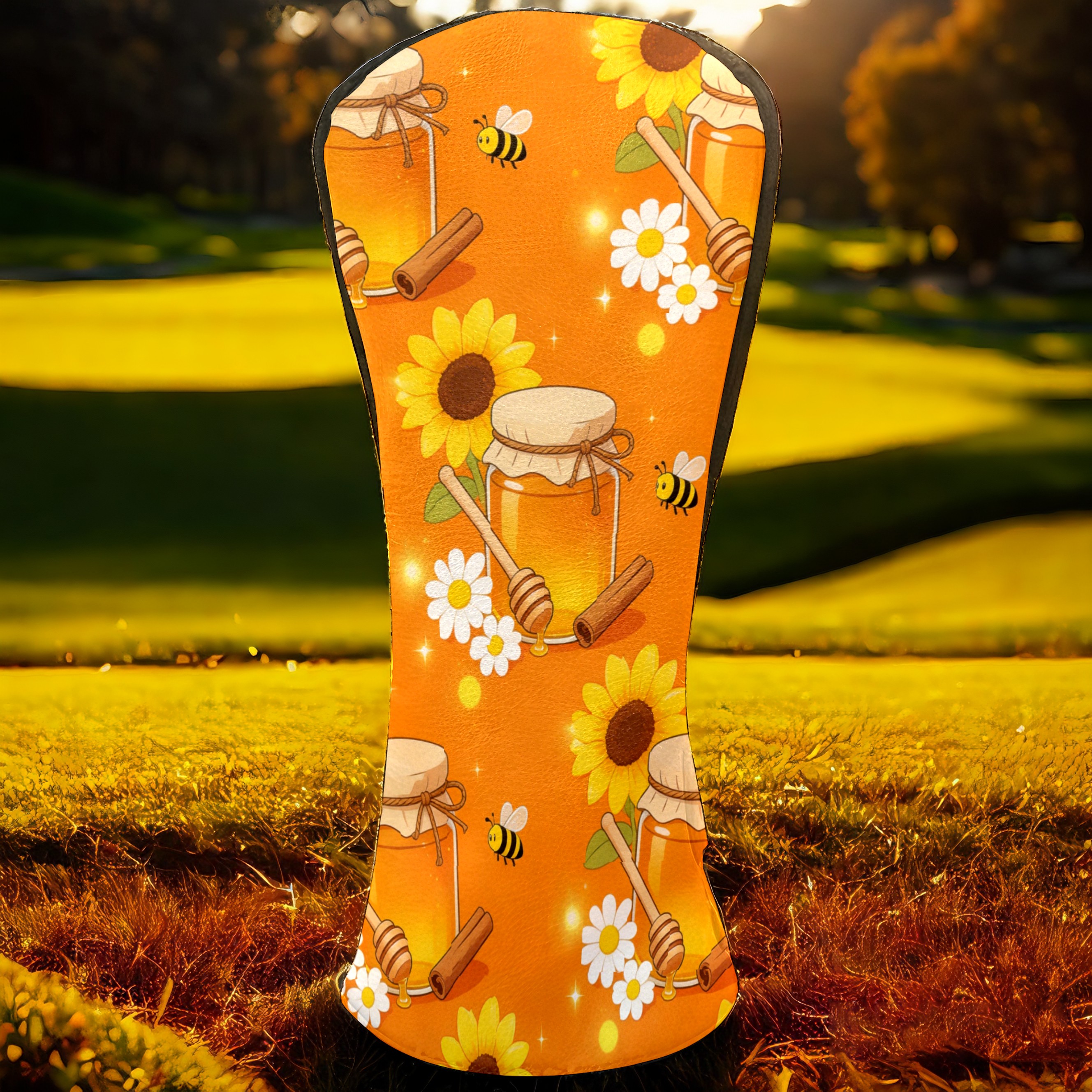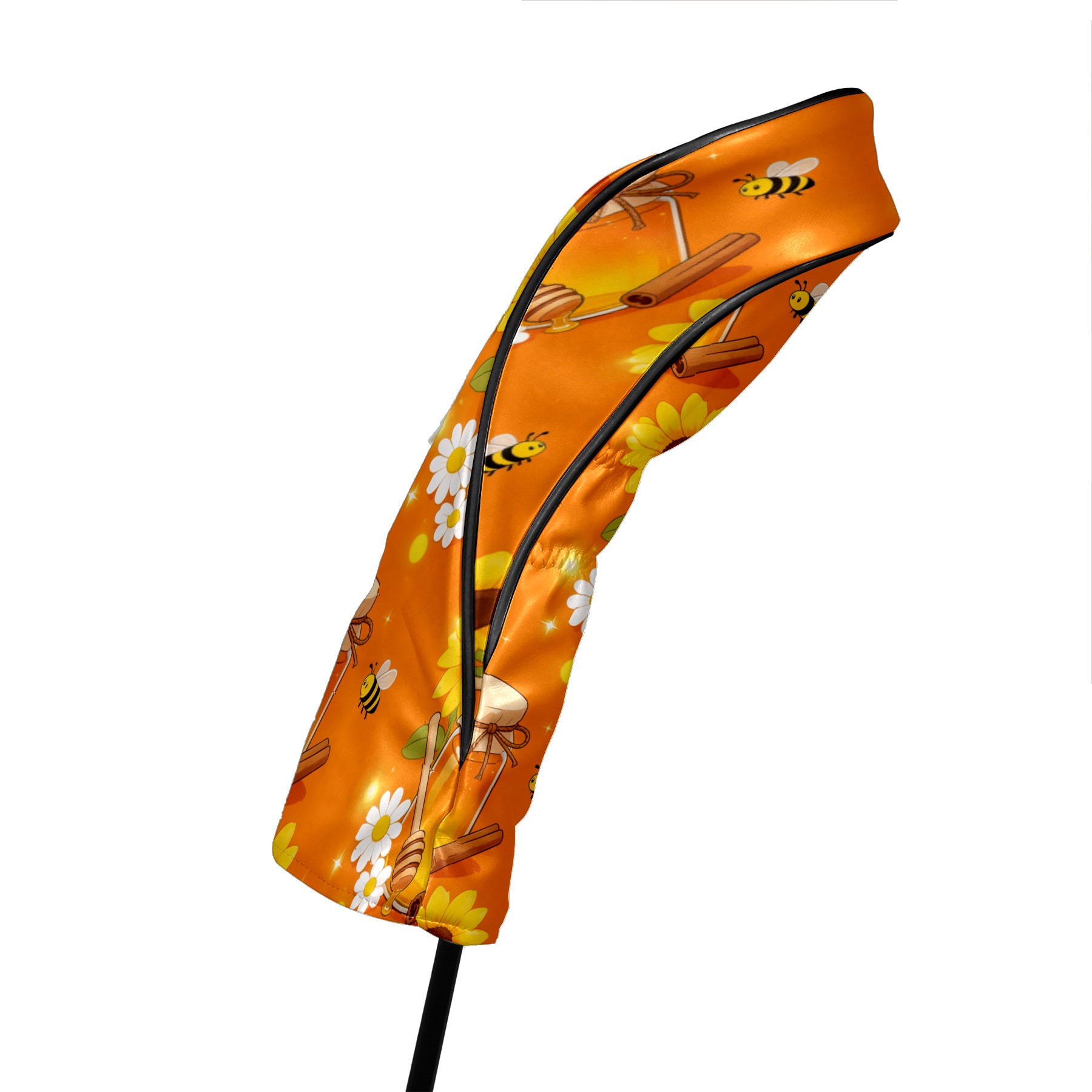 Golf Driver Head Cover Leather Driver Fairway Headcover, Premium Golf Club Covers with Plush Lining Girls Womens Mens Head Cover for Golf Clubs (Flowers Honey Jar Orange)