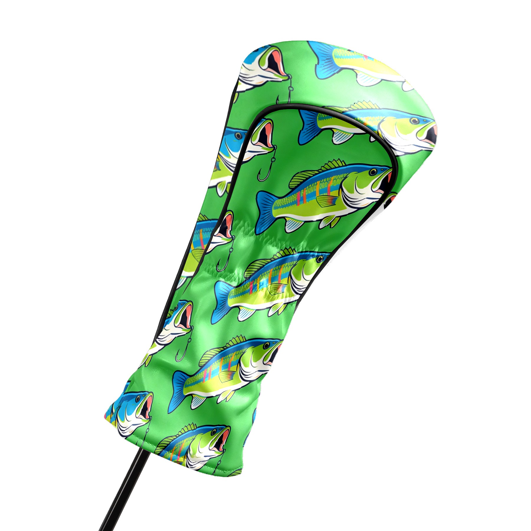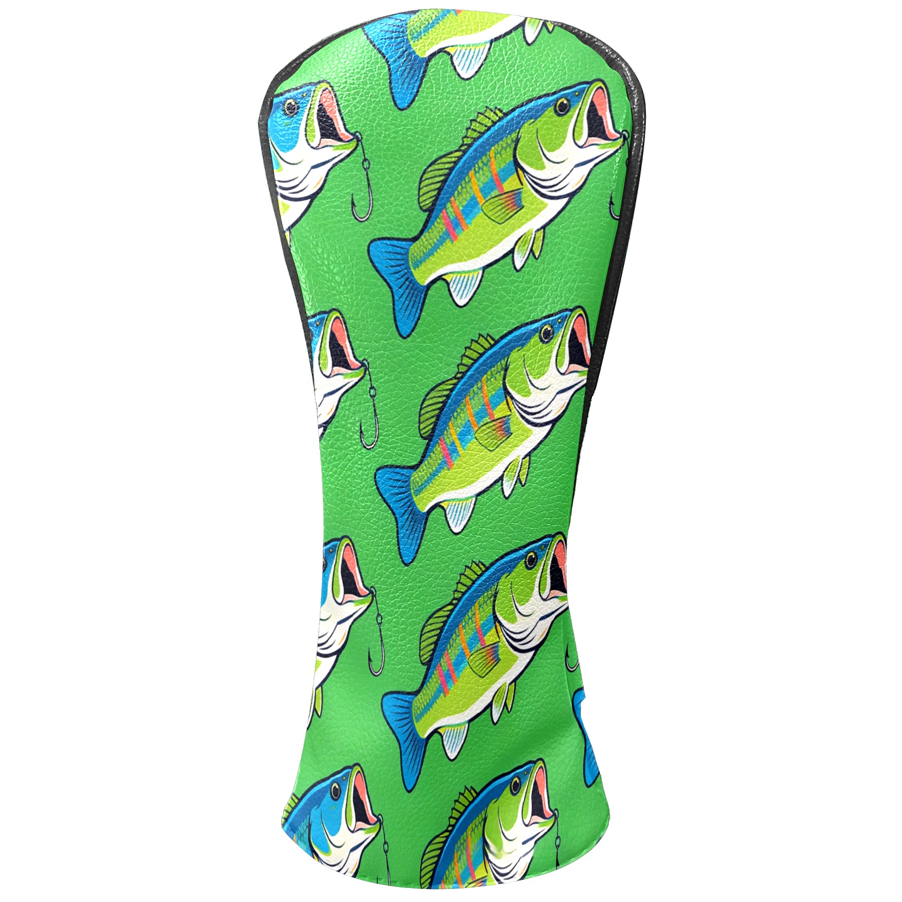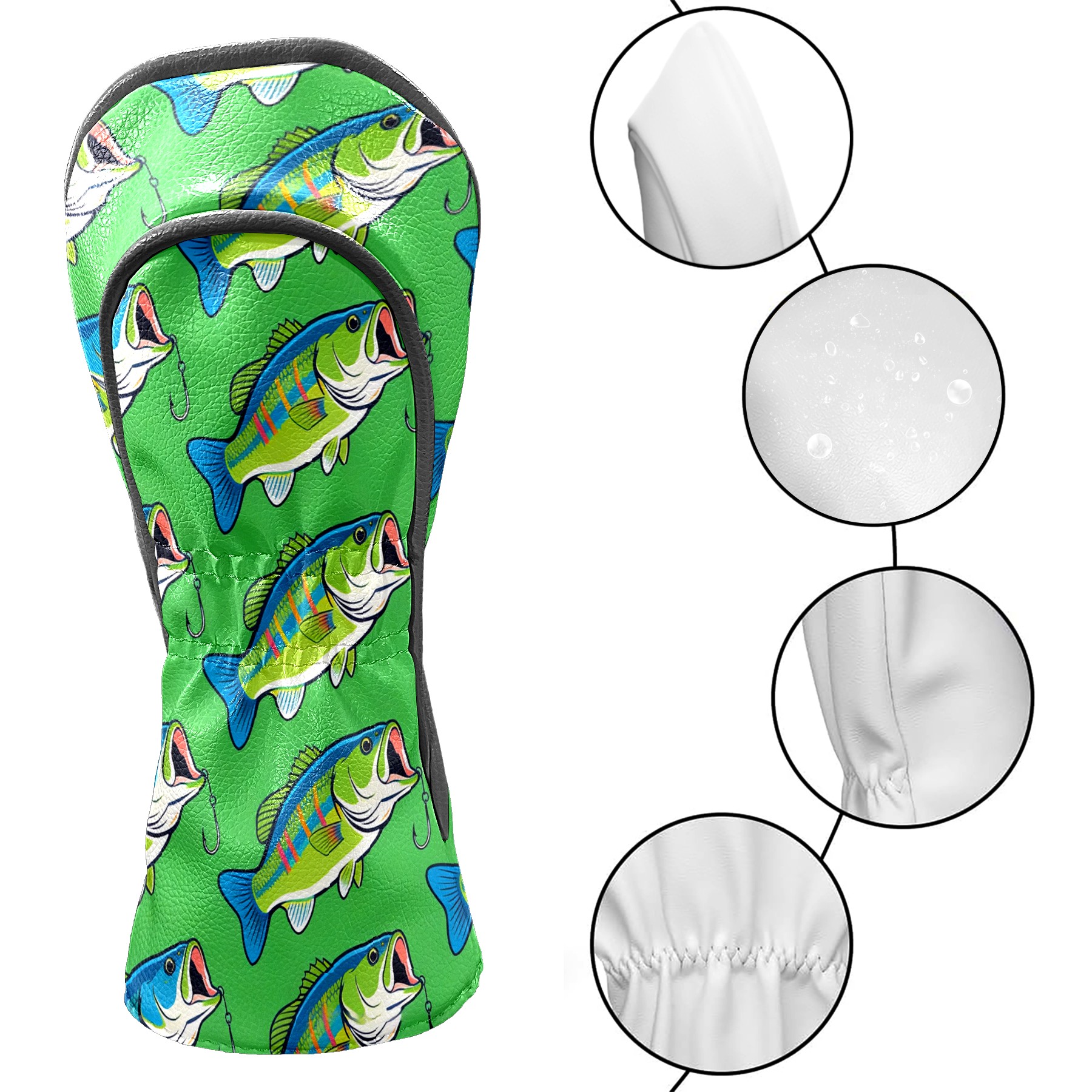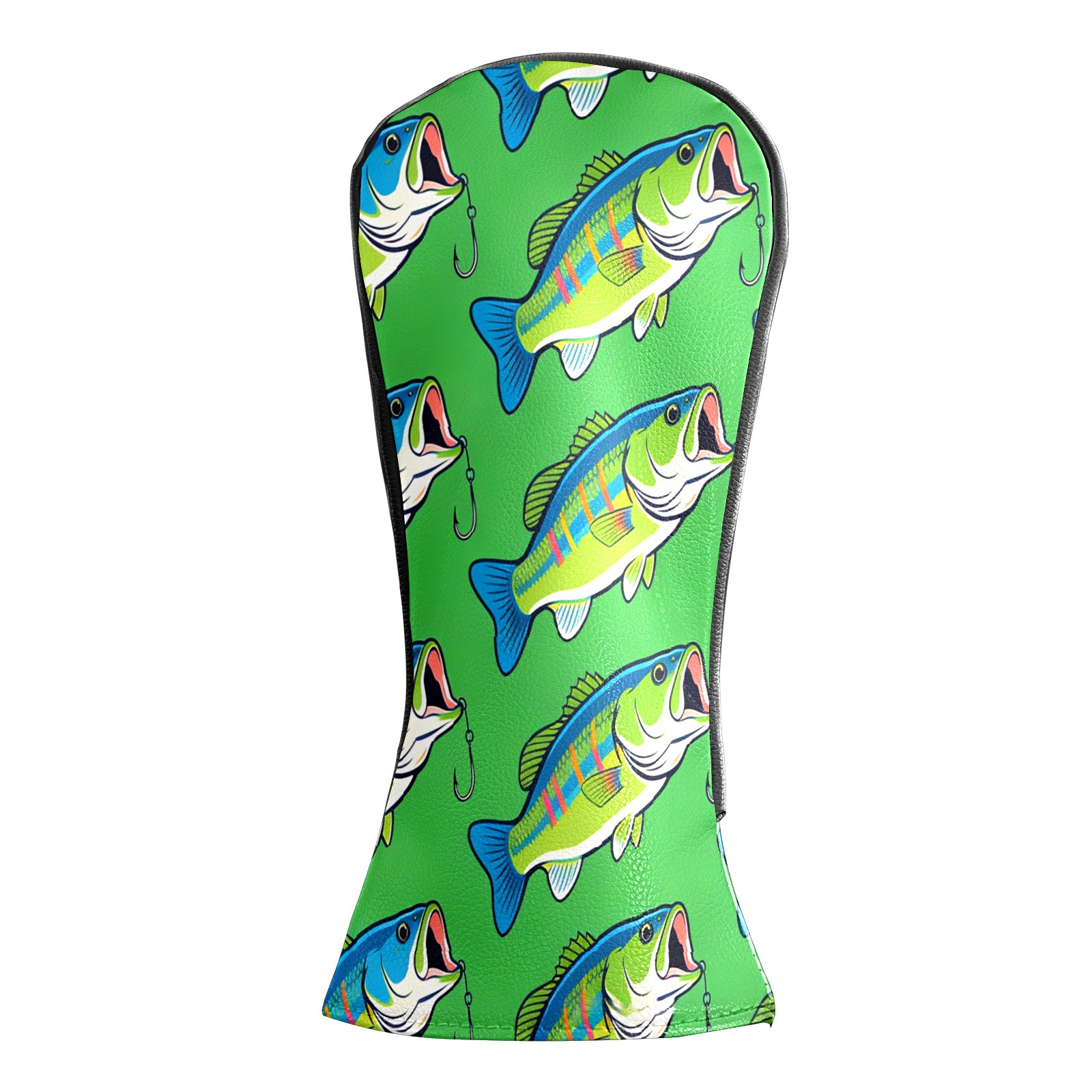 Golf Driver Head Cover Leather Driver Fairway Headcover, Premium Golf Club Covers with Plush Lining Girls Womens Mens Head Cover for Golf Clubs (Bass Fishing Green)