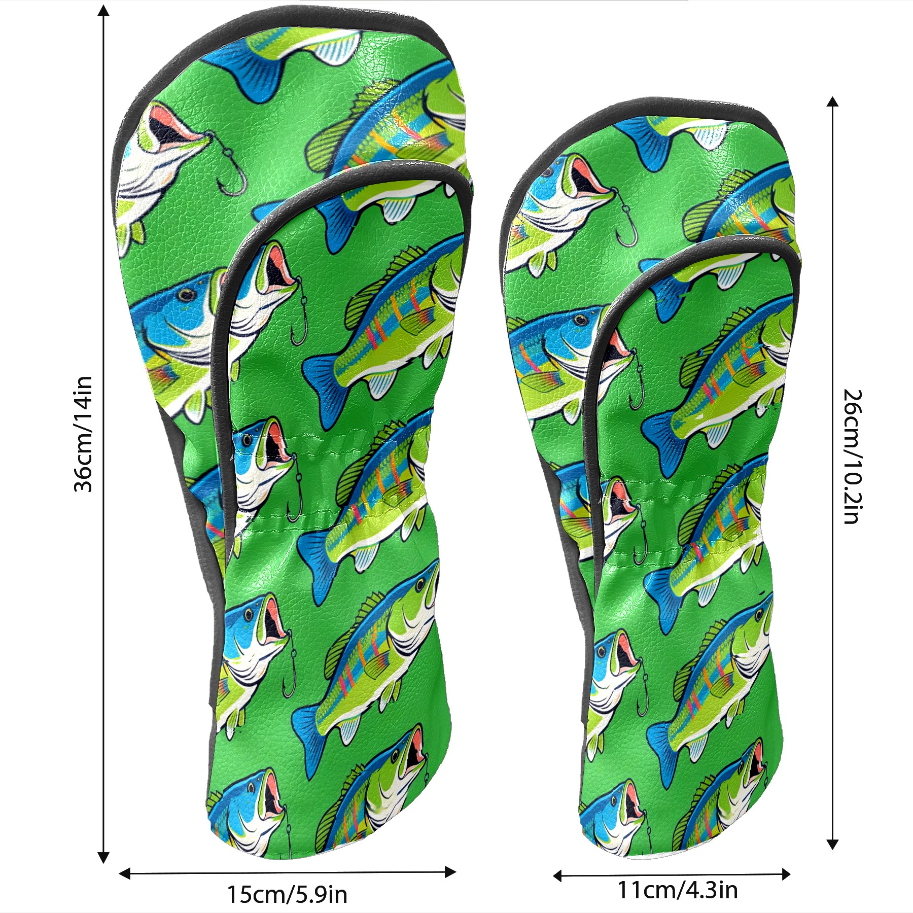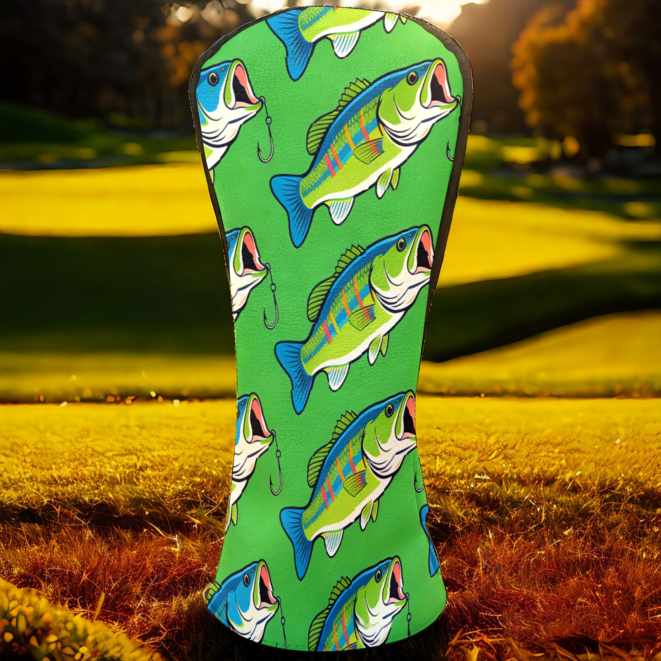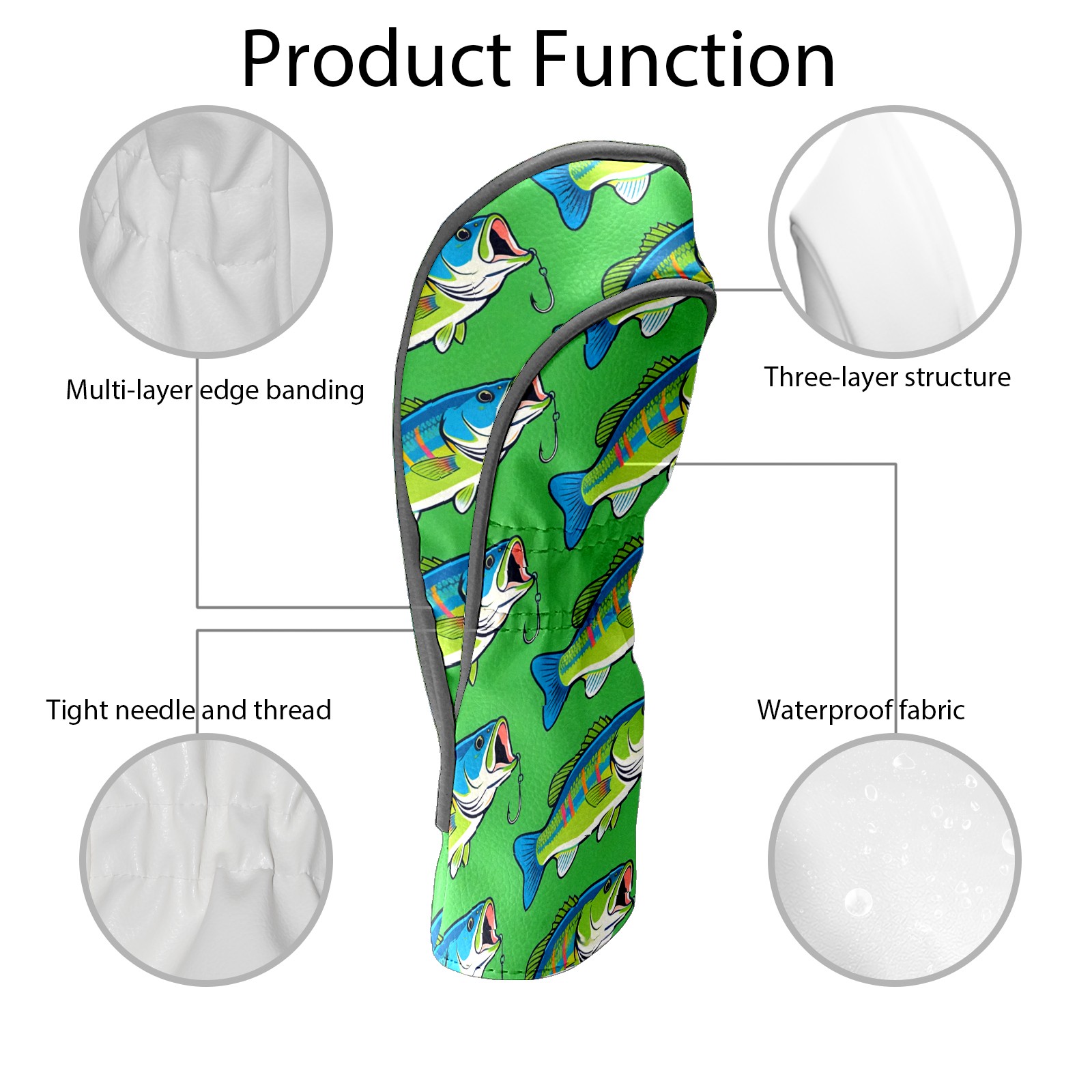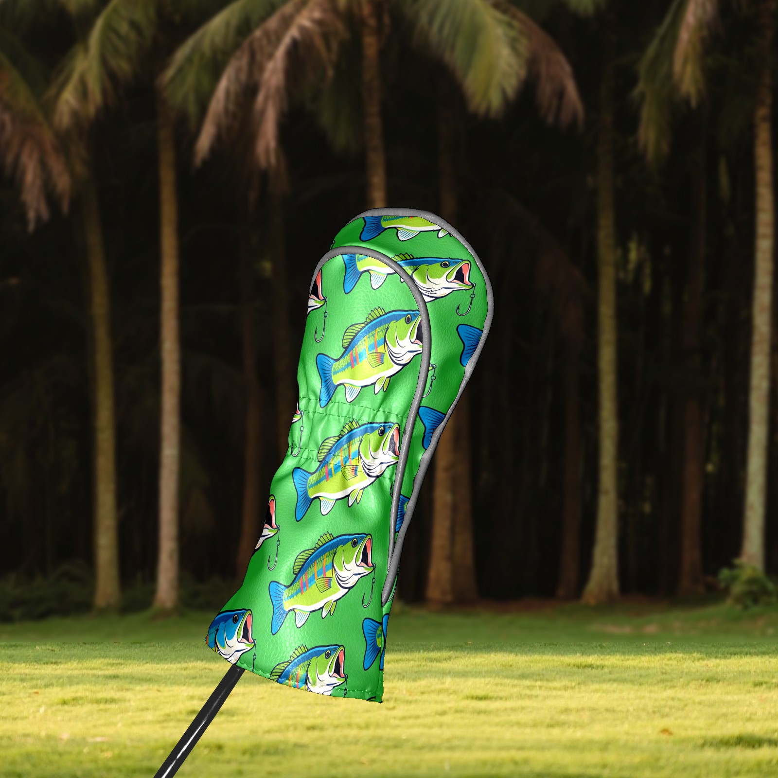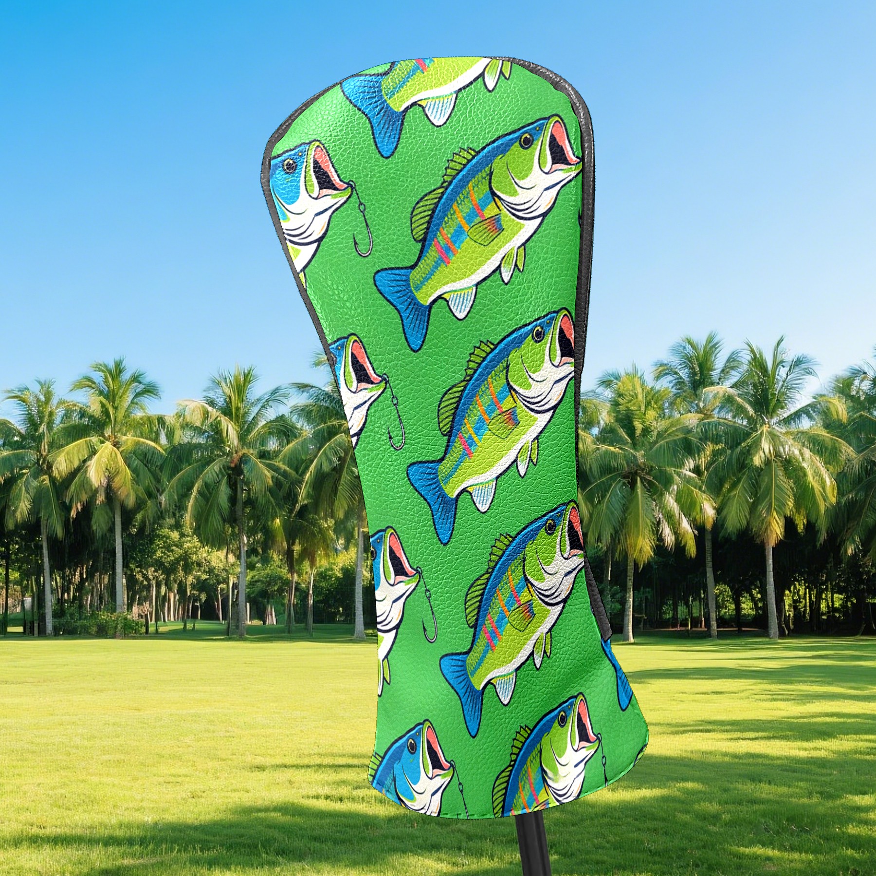 Golf Driver Head Cover Leather Driver Fairway Headcover, Premium Golf Club Covers with Plush Lining Girls Womens Mens Head Cover for Golf Clubs (Bass Fishing Green)
