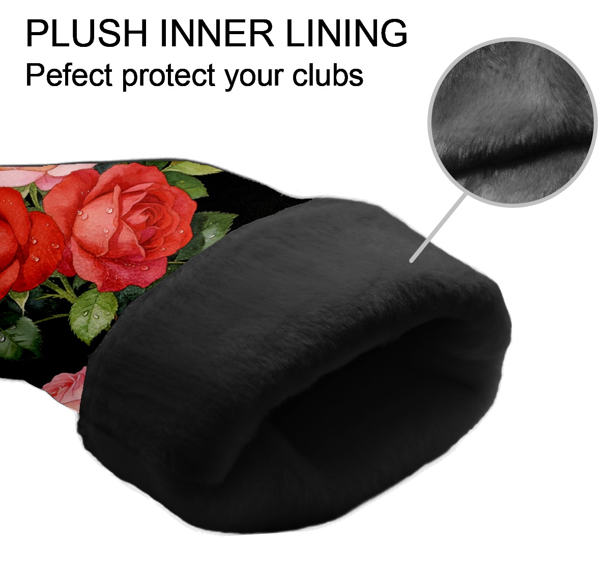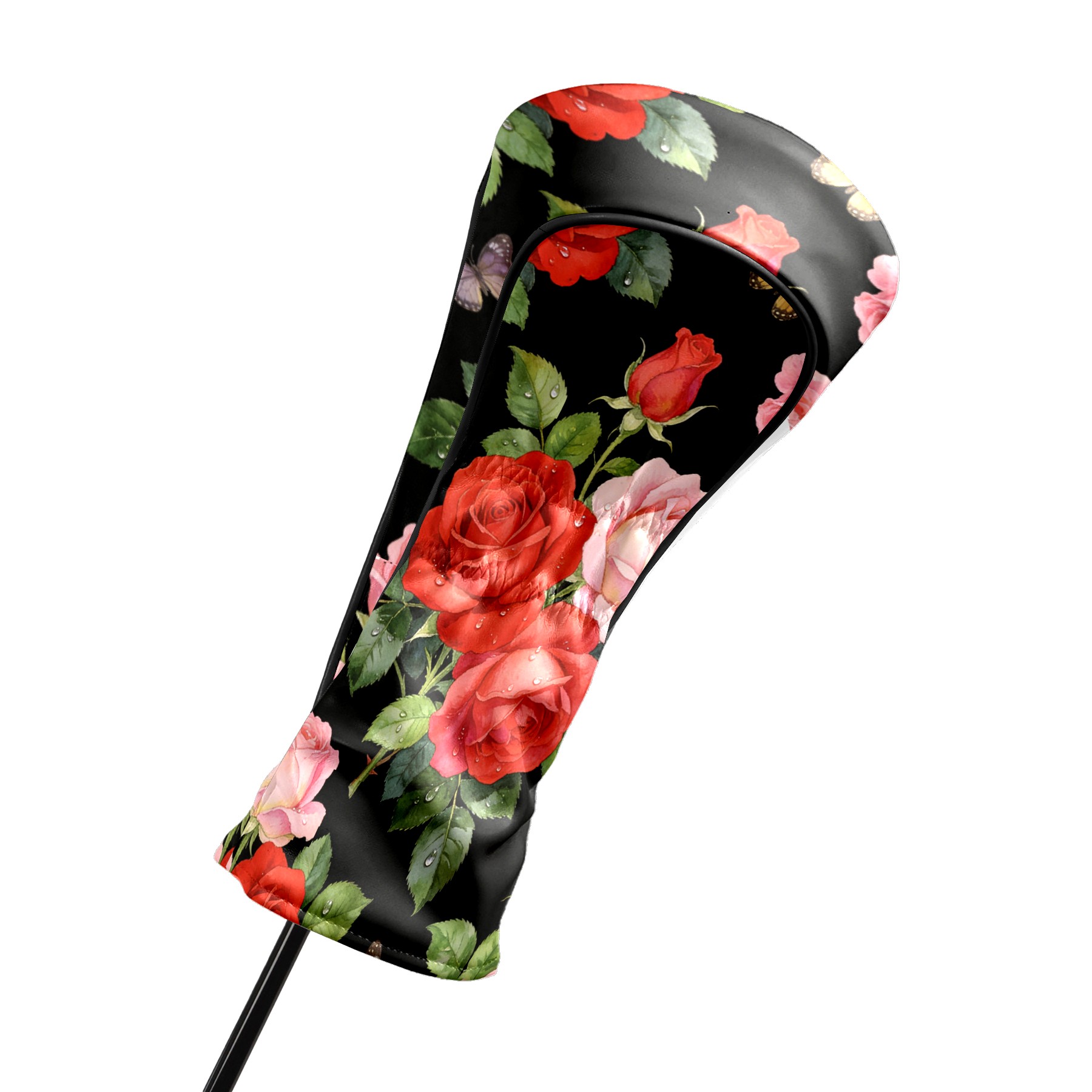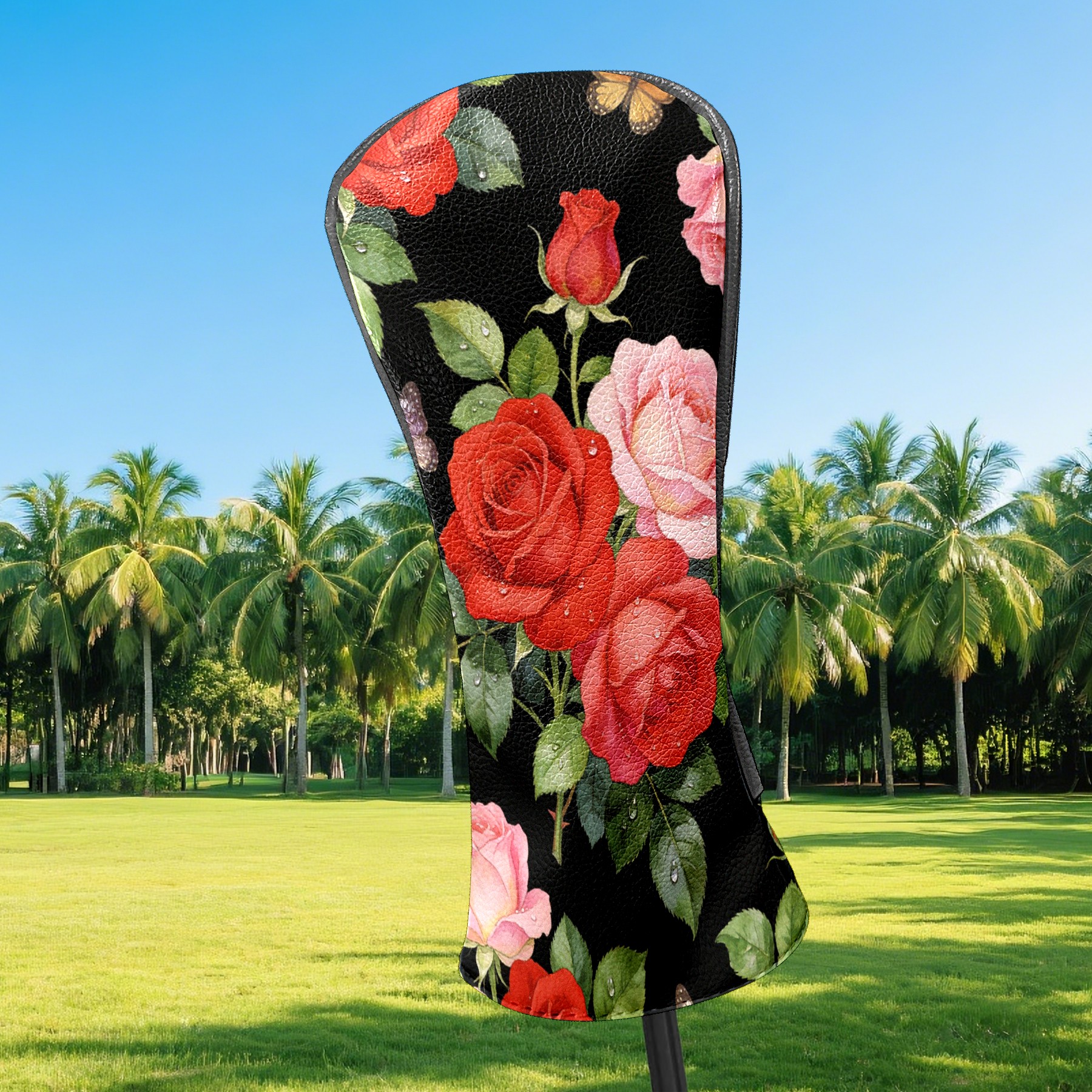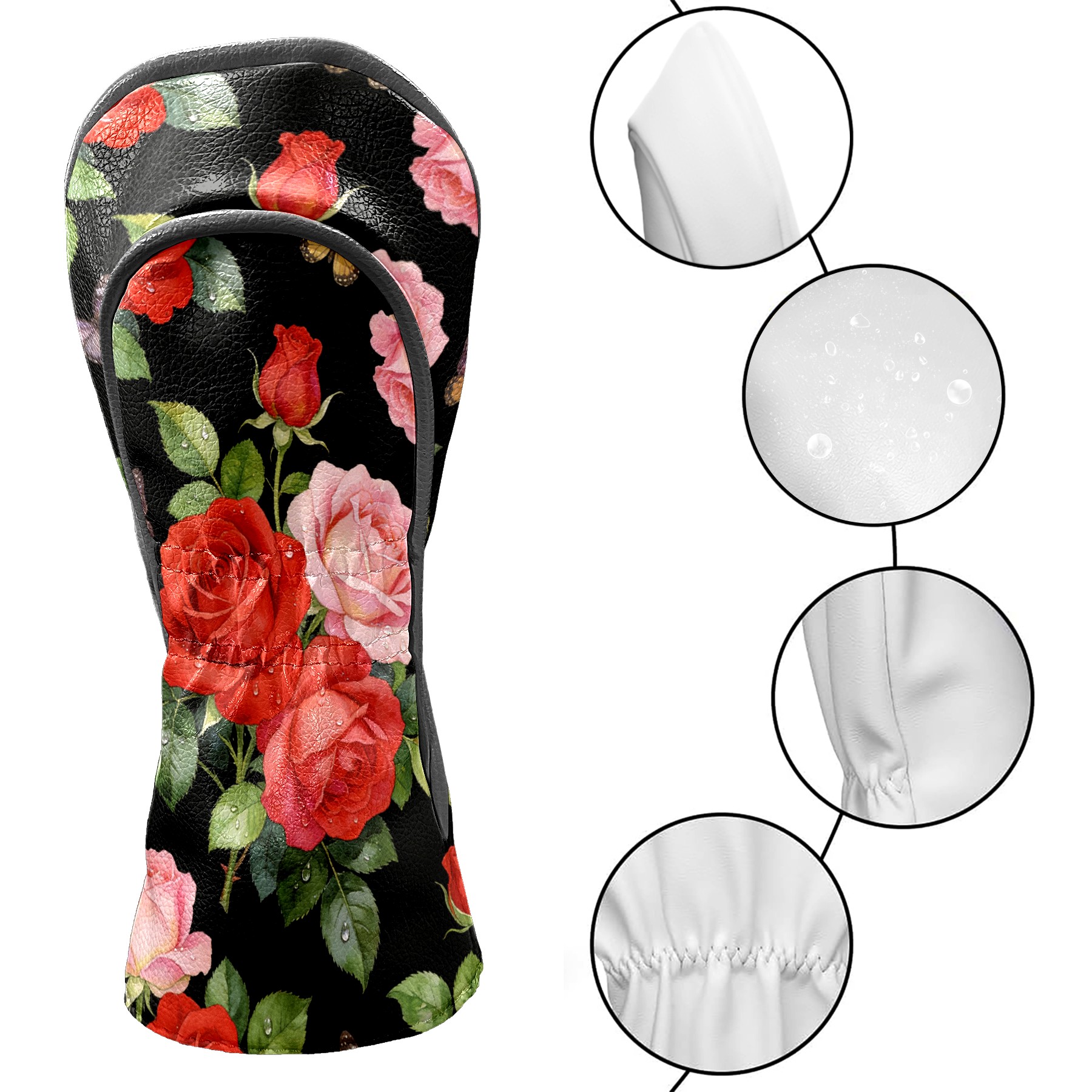 Golf Driver Head Cover Leather Driver Fairway Headcover, Premium Golf Club Covers with Plush Lining Girls Womens Mens Head Cover for Golf Clubs (Rose Flower Black)