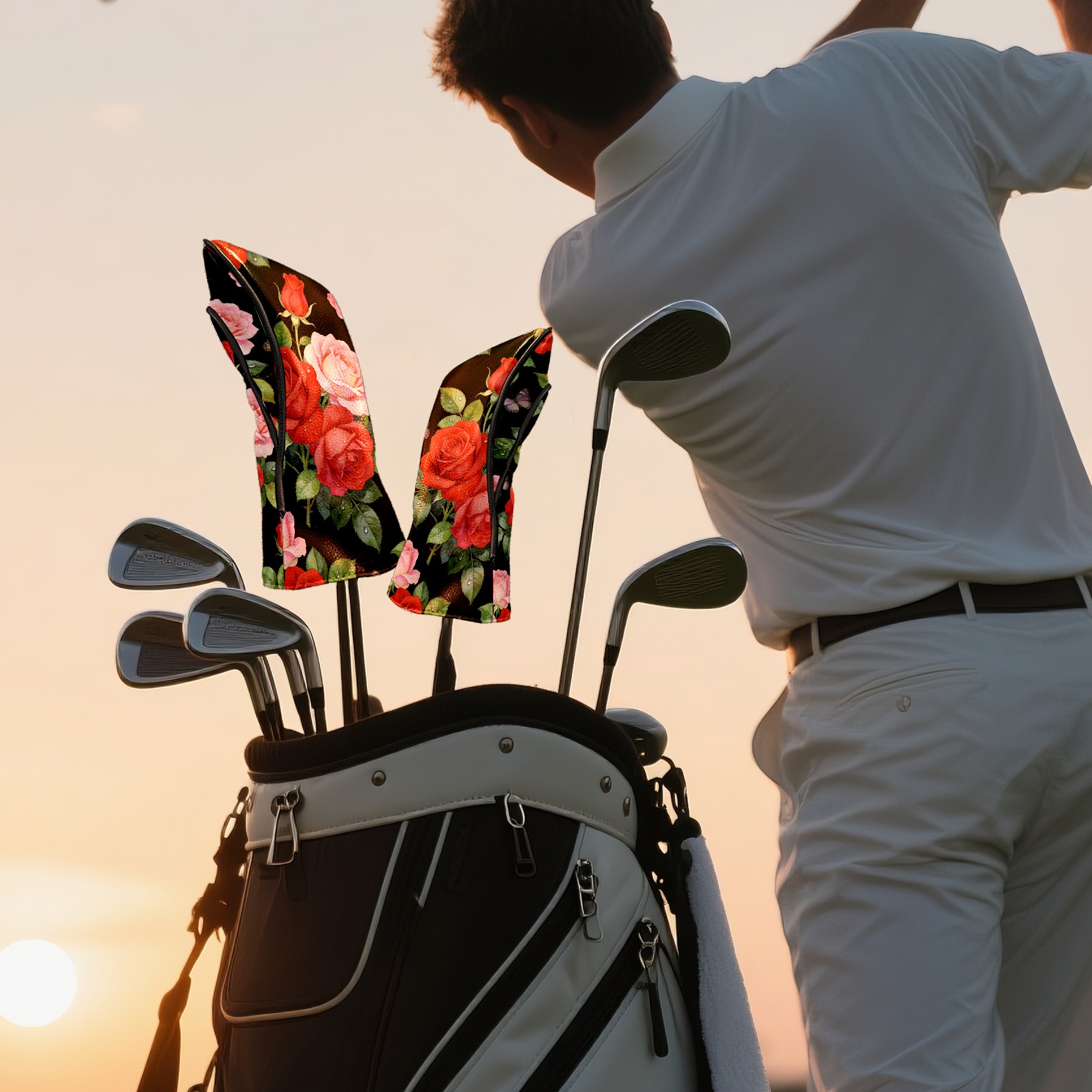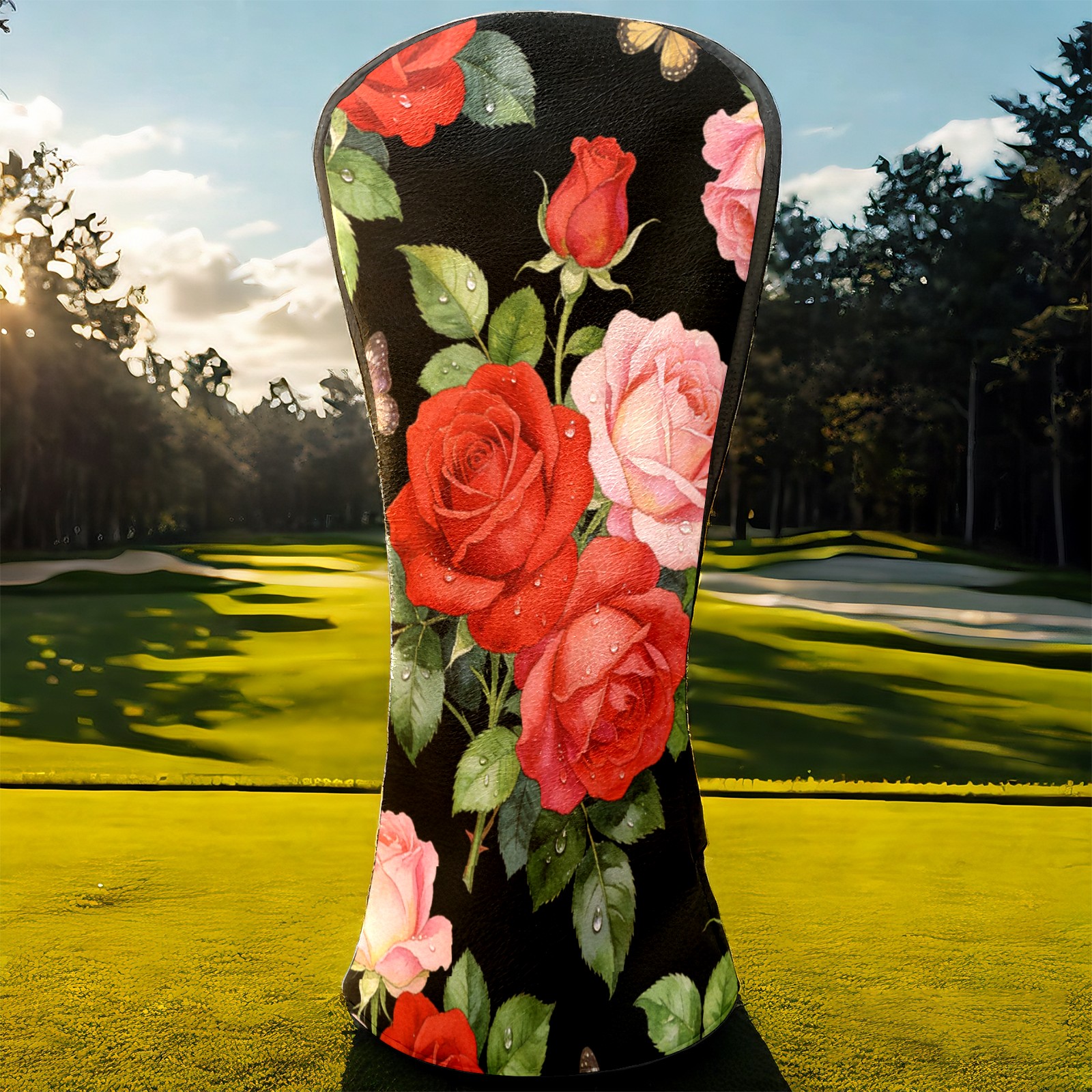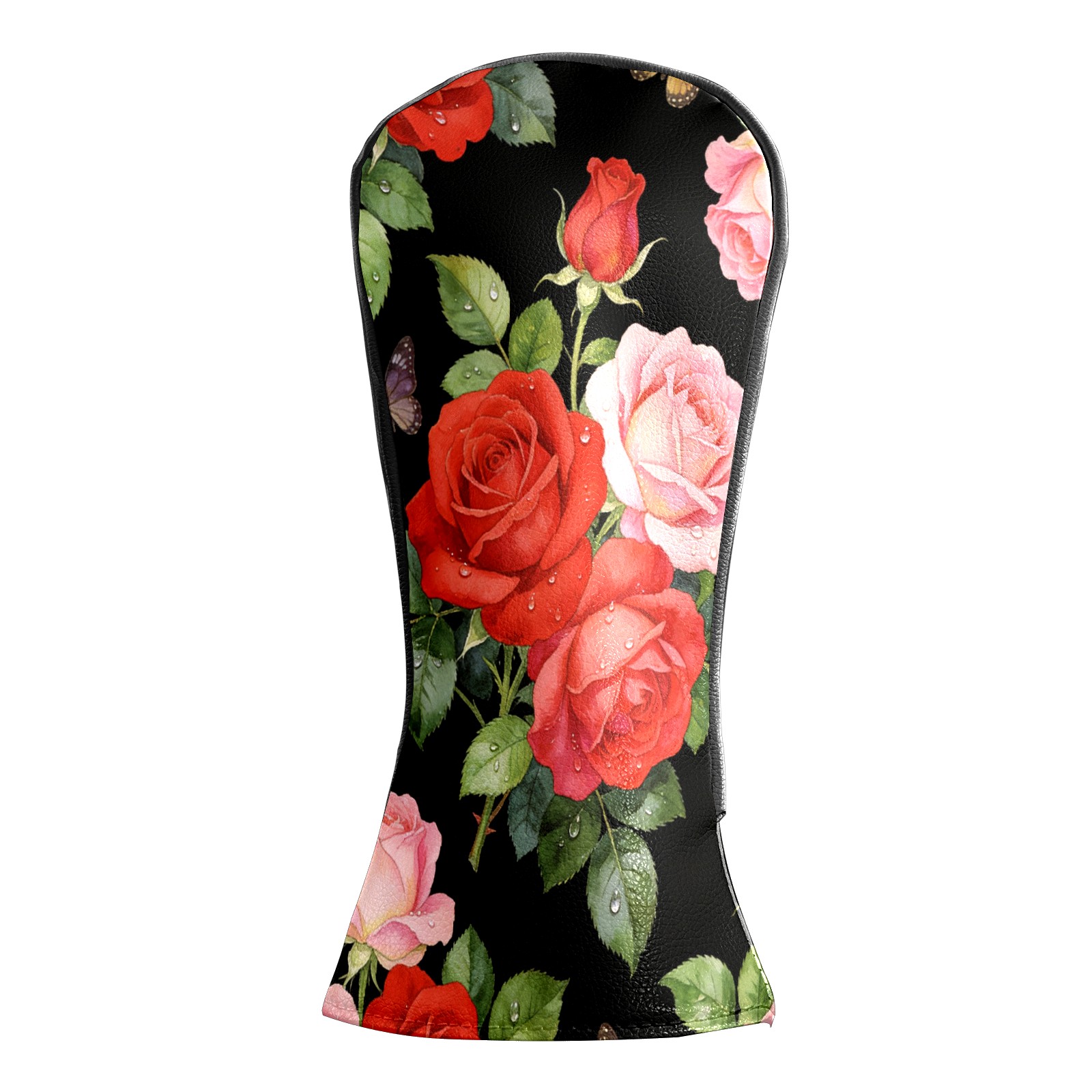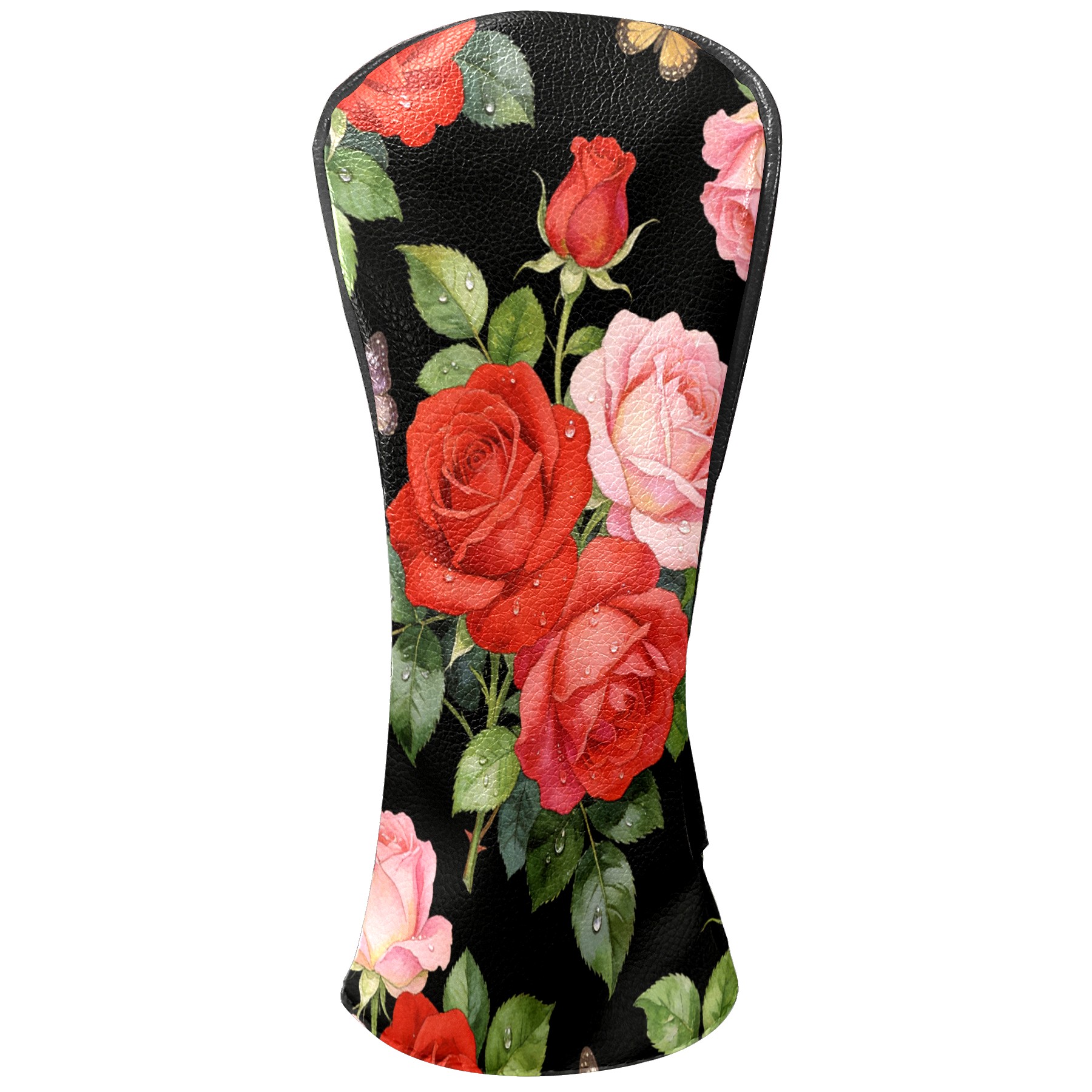 Golf Driver Head Cover Leather Driver Fairway Headcover, Premium Golf Club Covers with Plush Lining Girls Womens Mens Head Cover for Golf Clubs (Rose Flower Black)