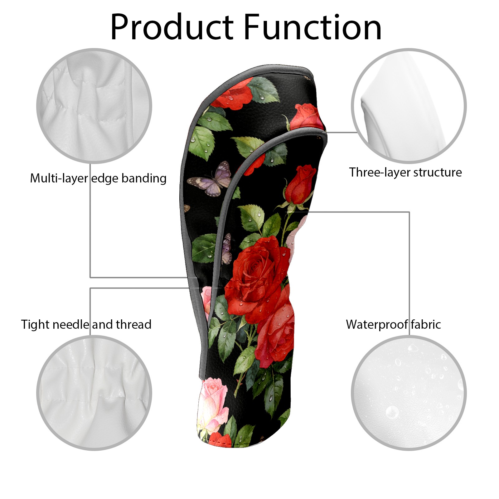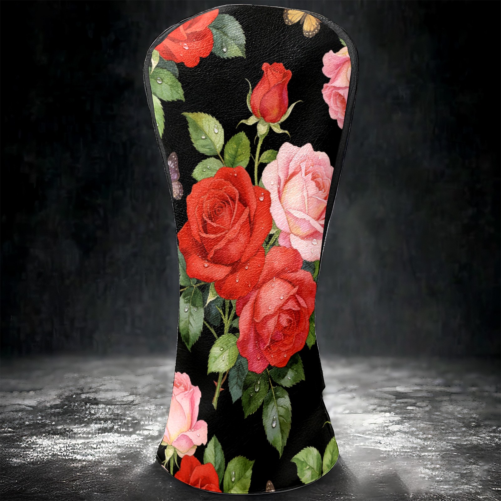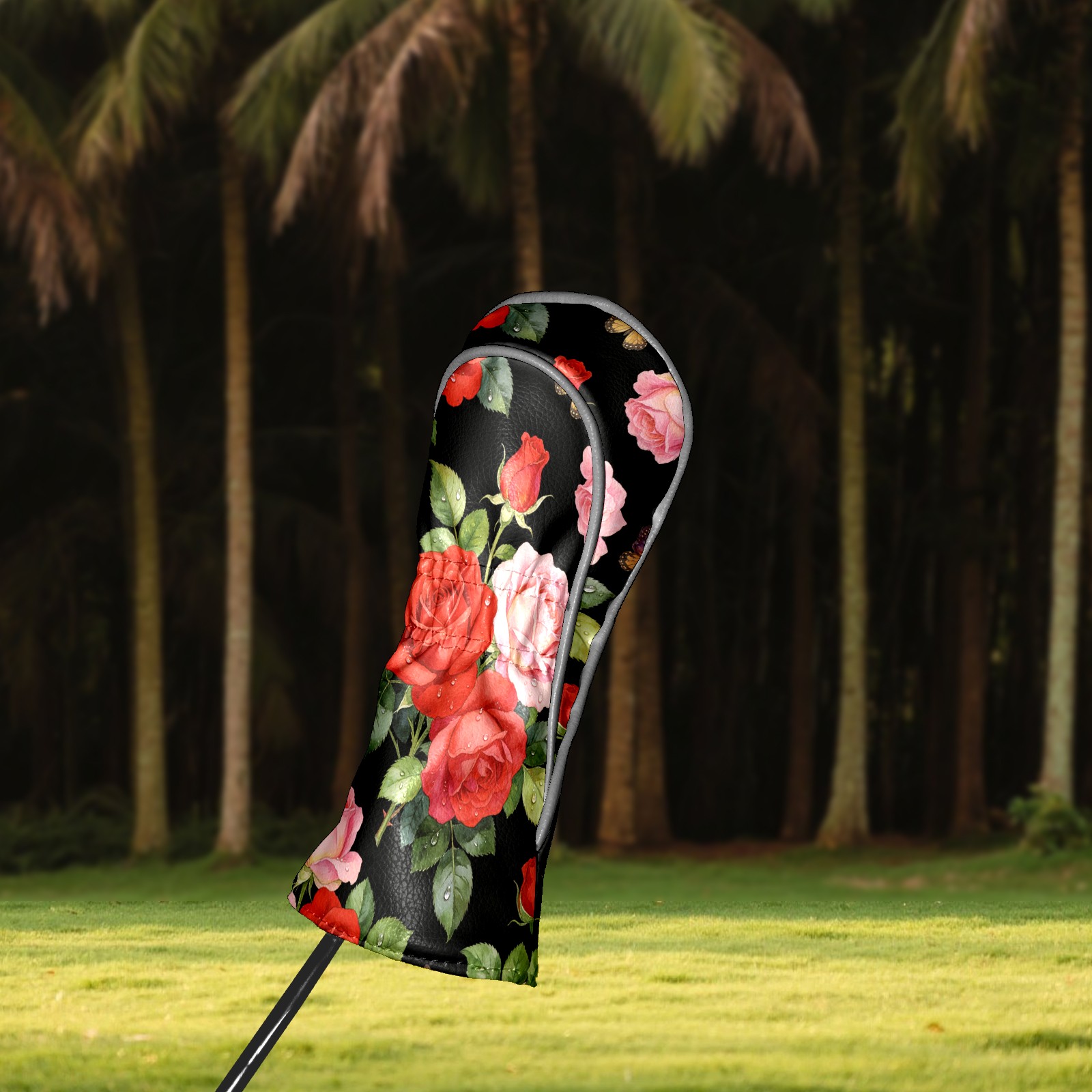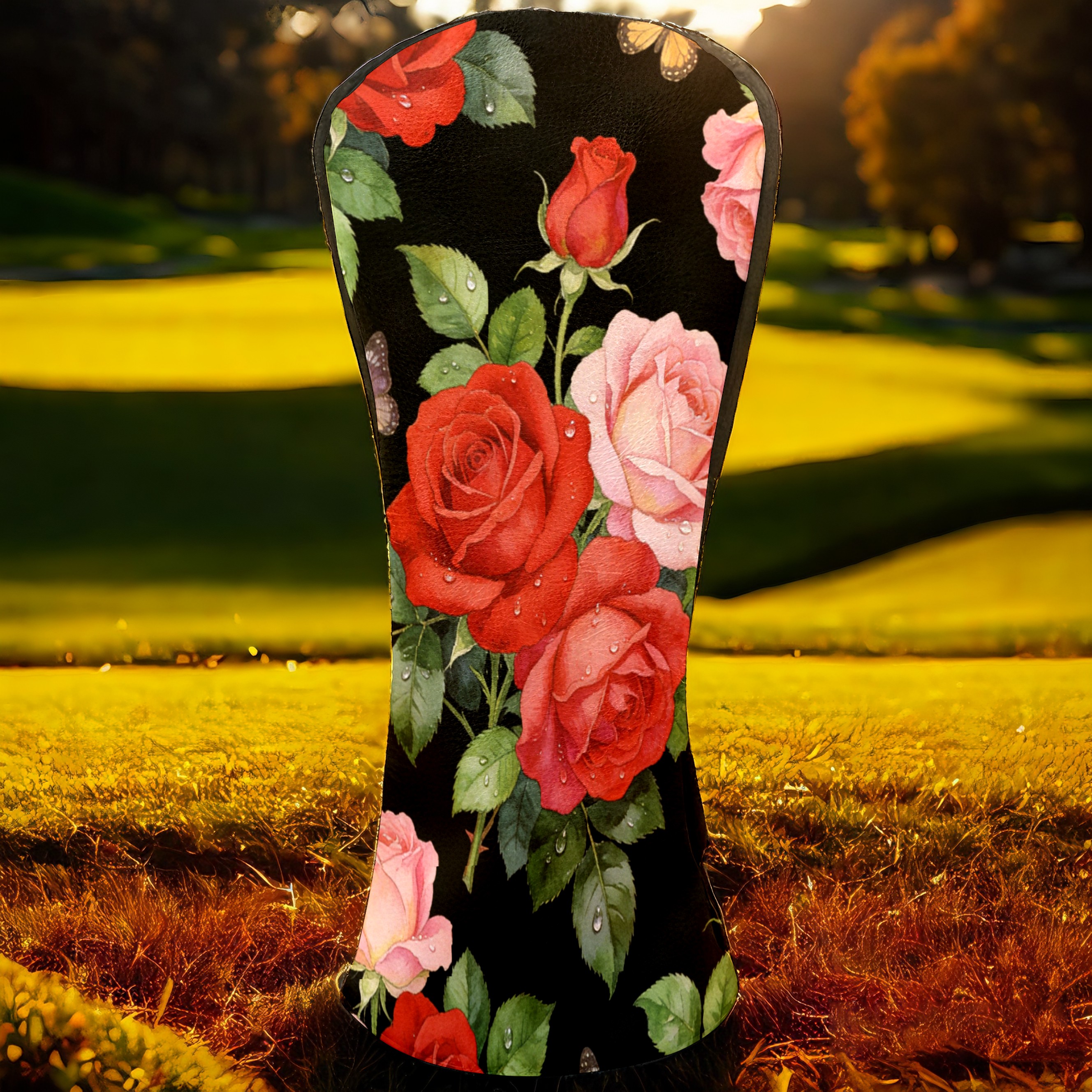 Golf Driver Head Cover Leather Driver Fairway Headcover, Premium Golf Club Covers with Plush Lining Girls Womens Mens Head Cover for Golf Clubs (Rose Flower Black)