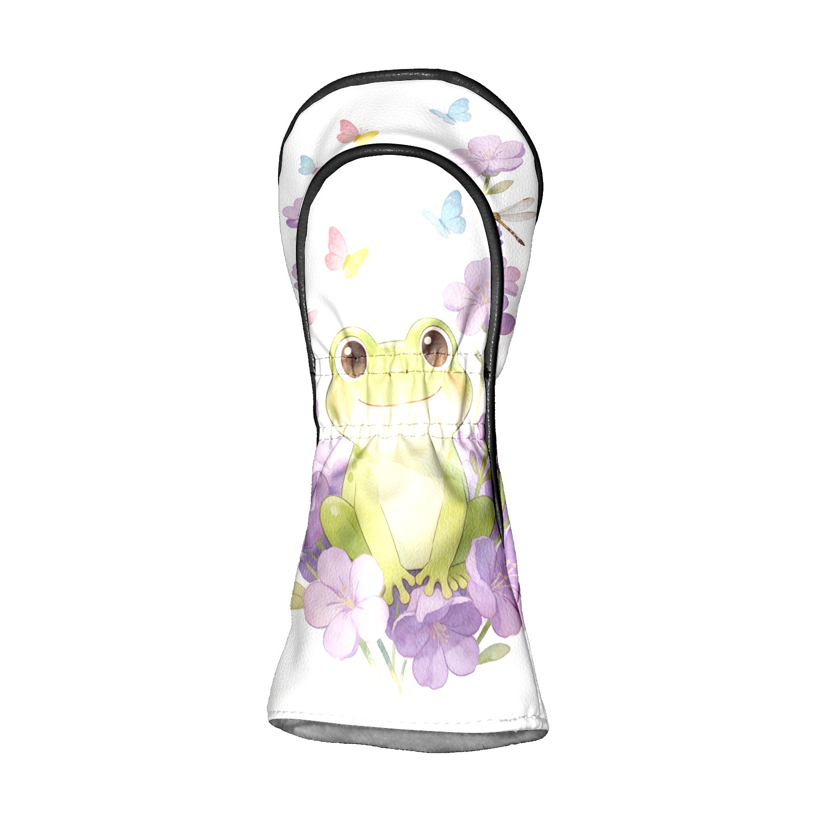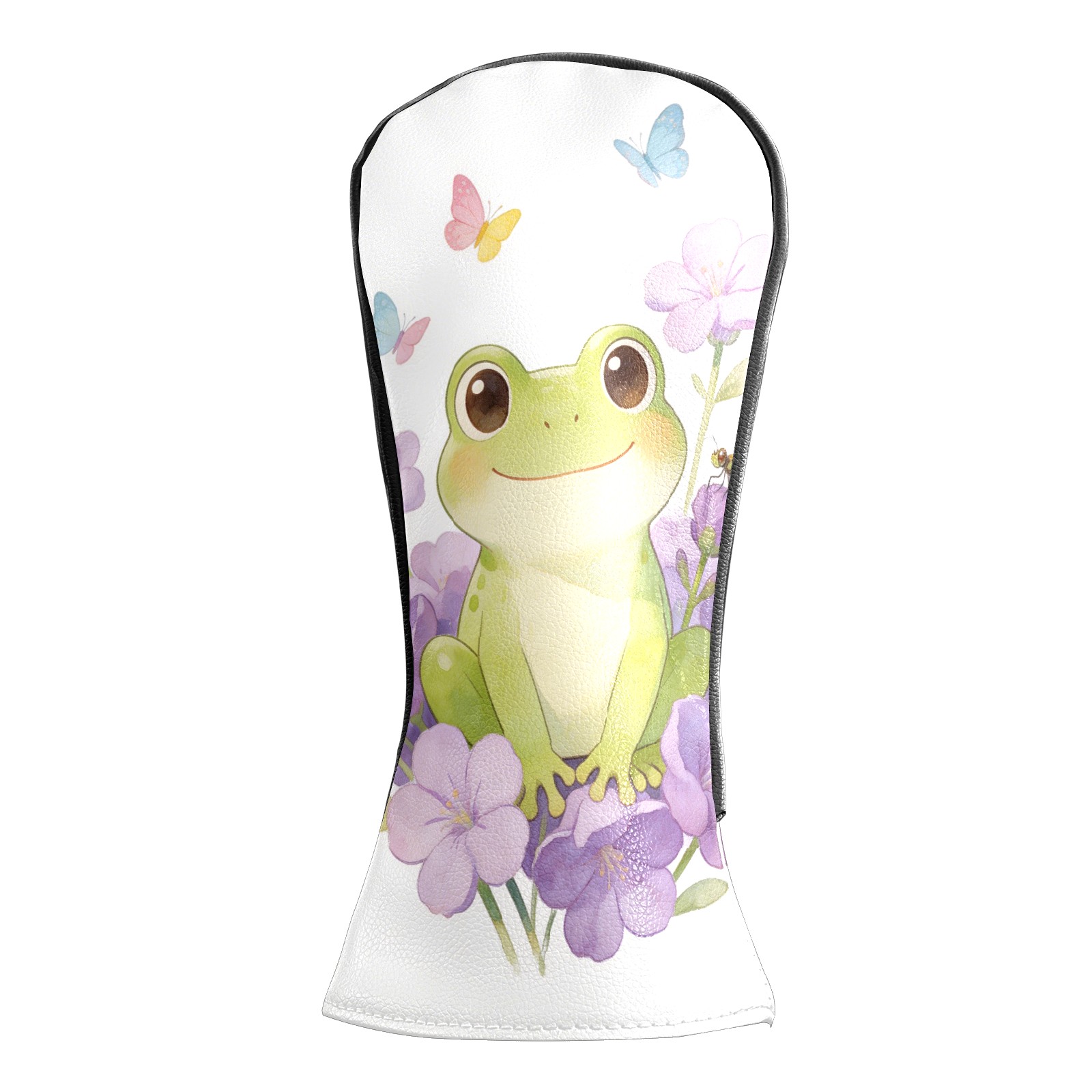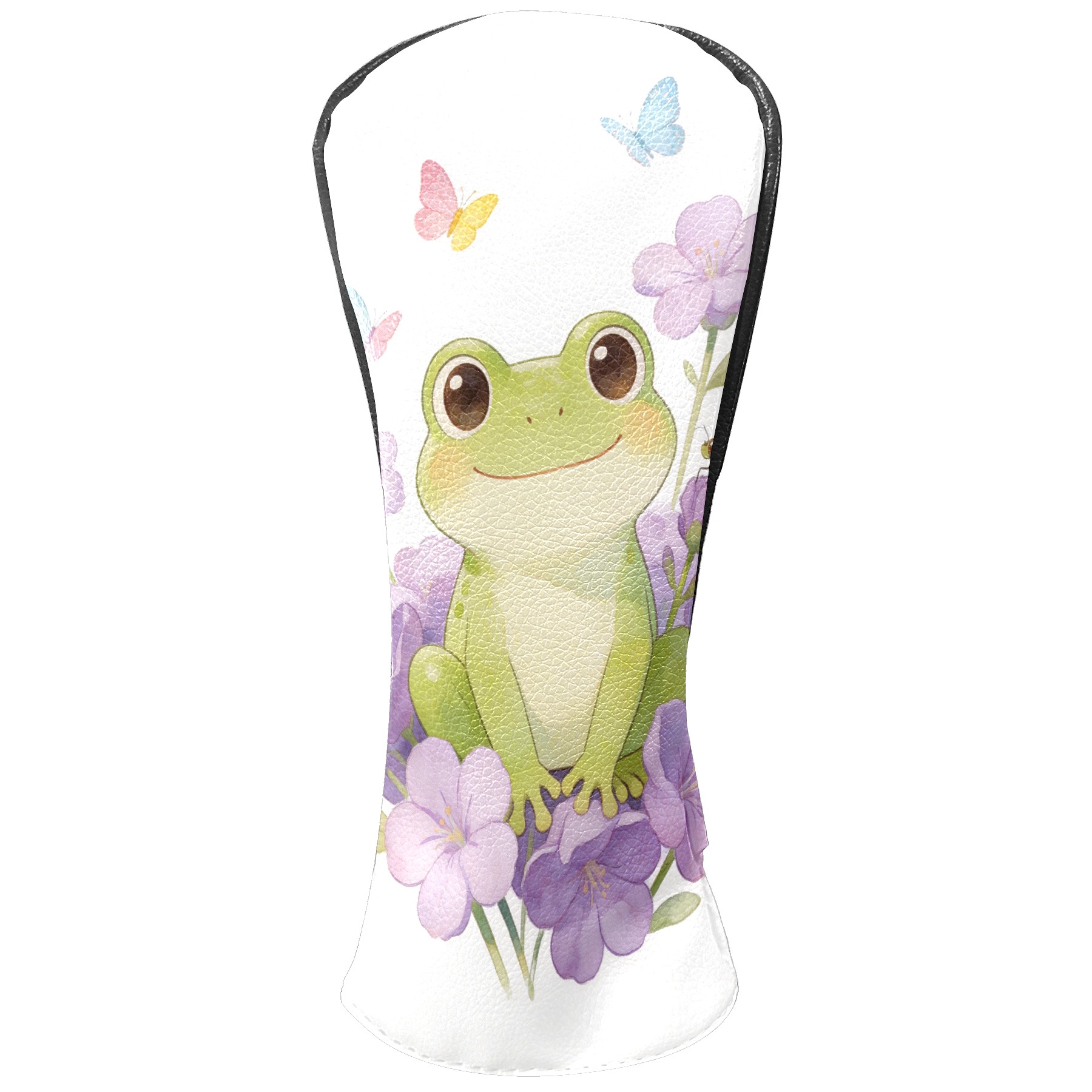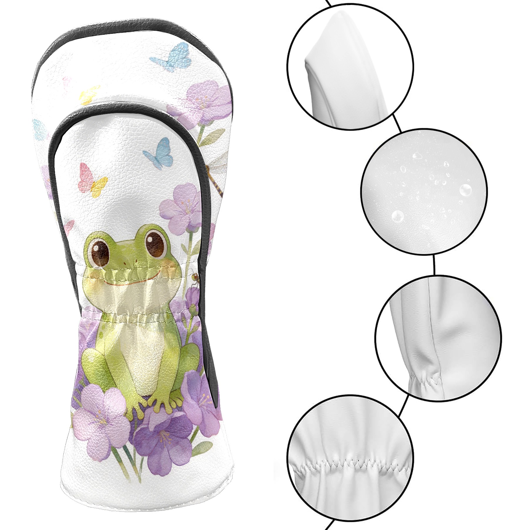 Golf Driver Head Cover Leather Driver Fairway Headcover, Premium Golf Club Covers with Plush Lining Girls Womens Mens Head Cover for Golf Clubs (Frog Purple Flowers)