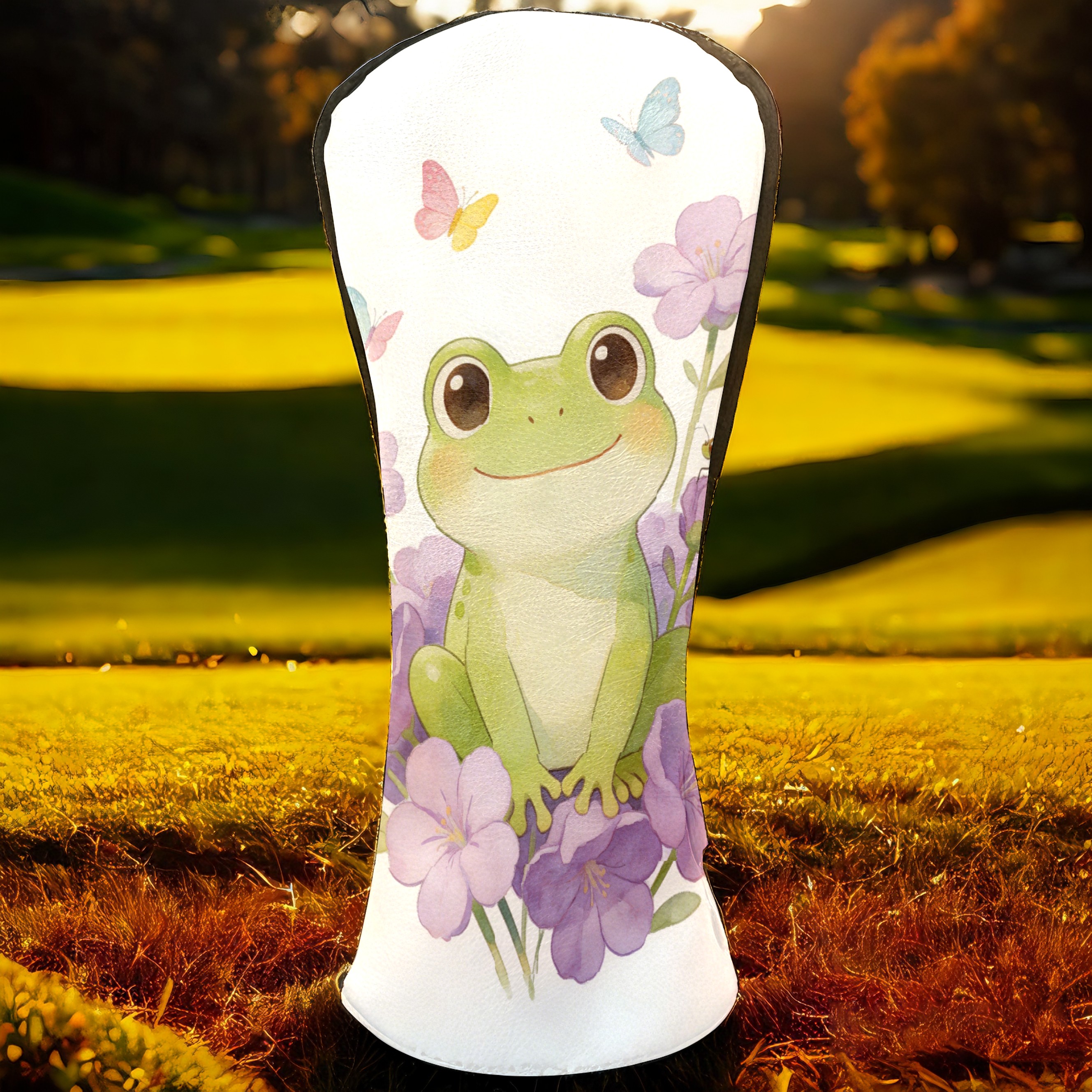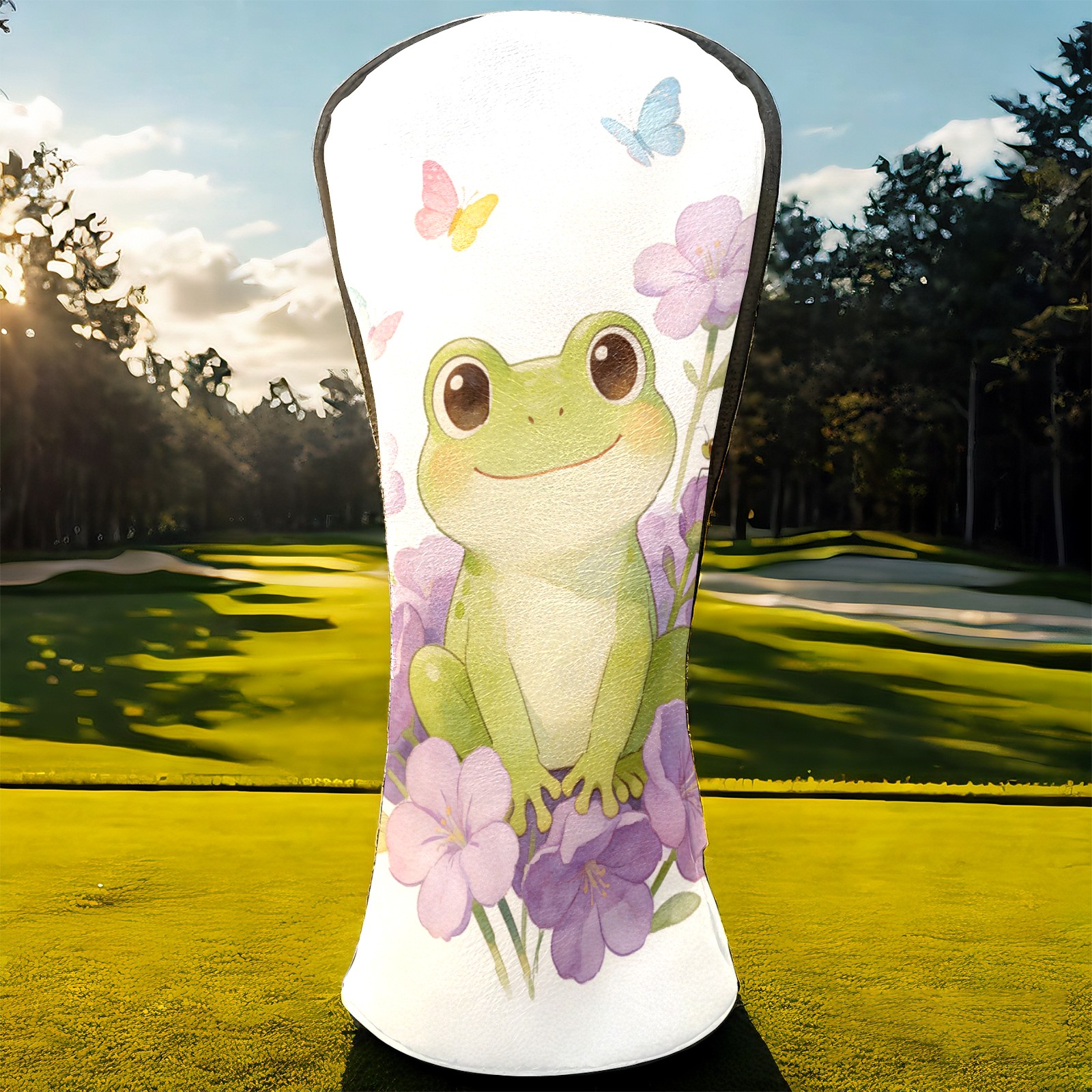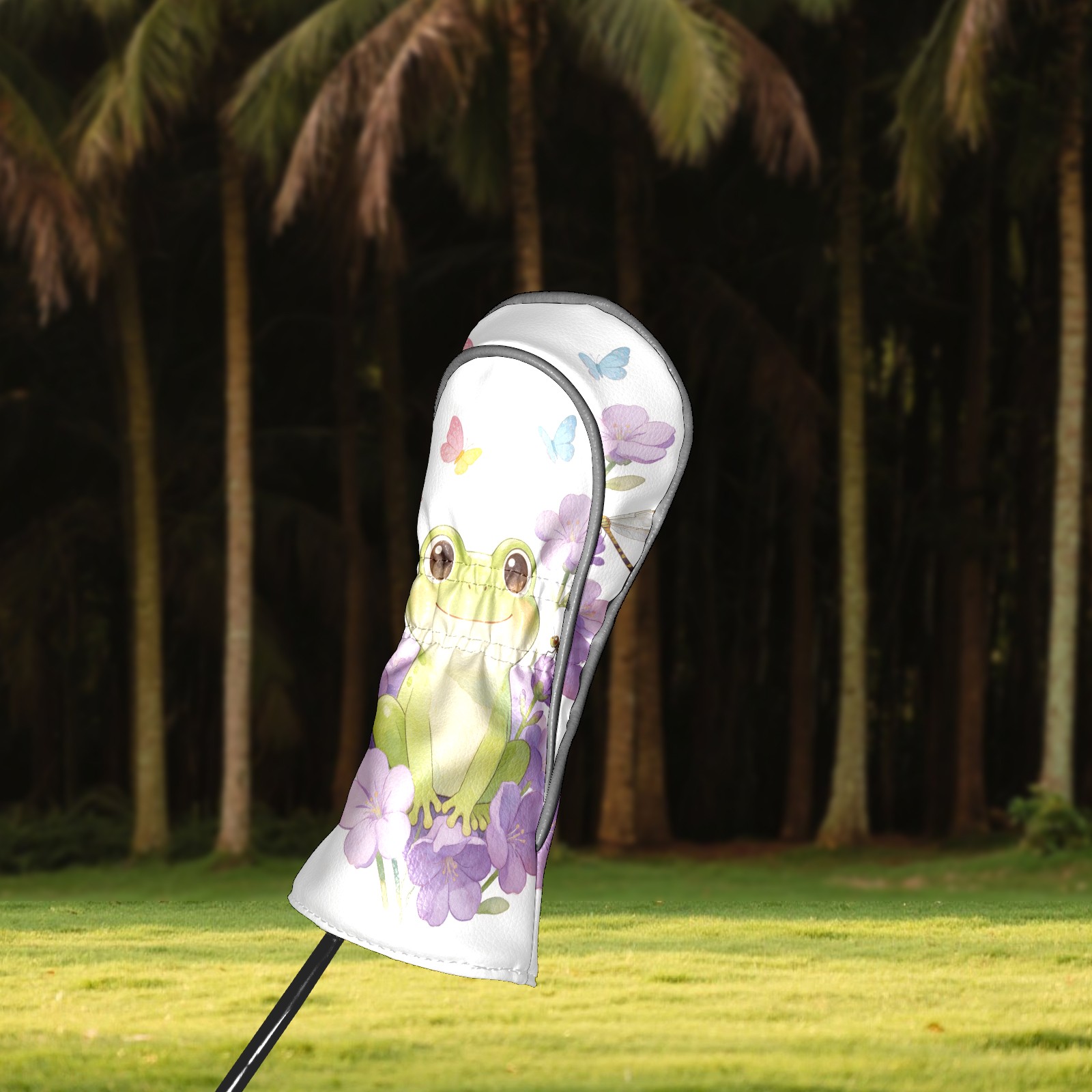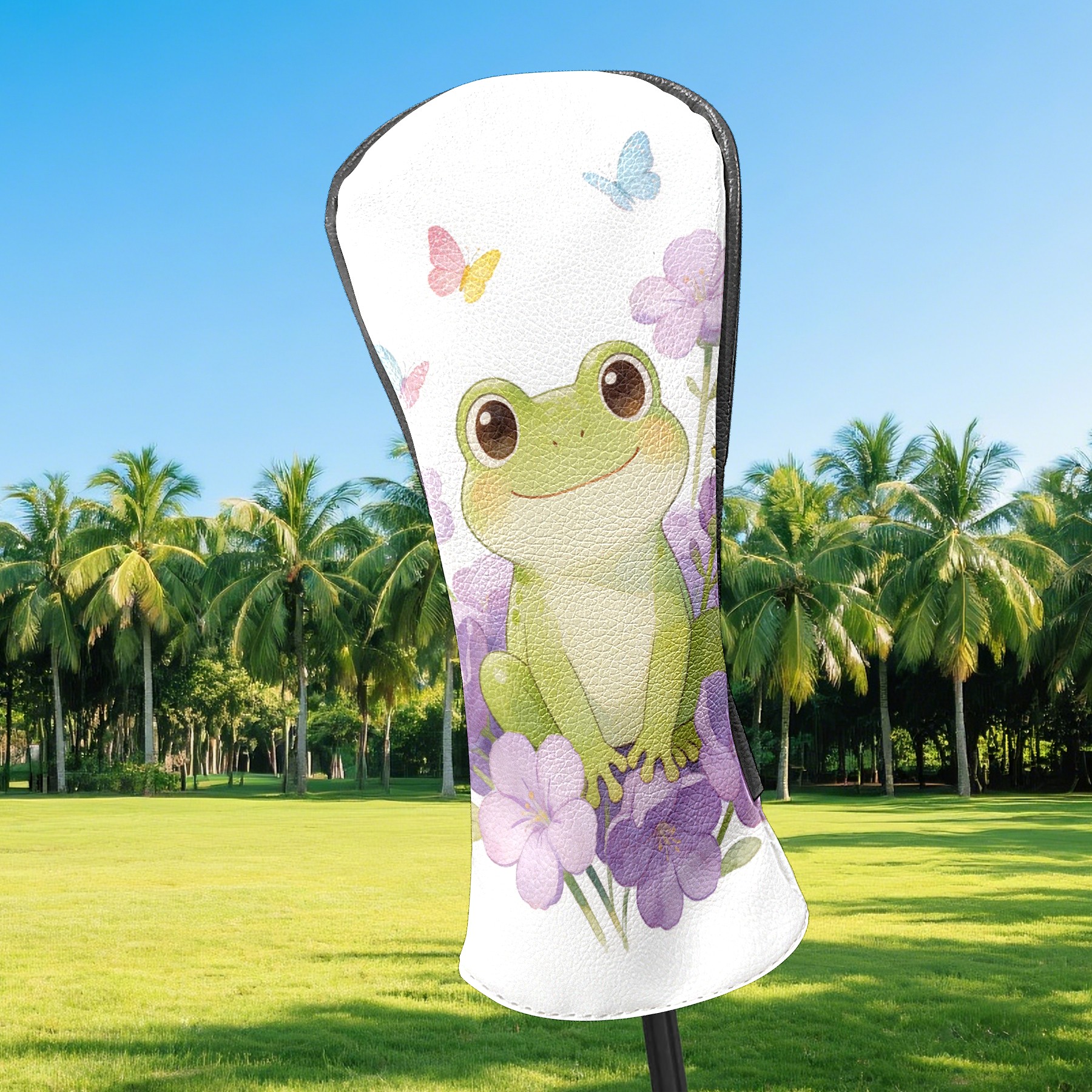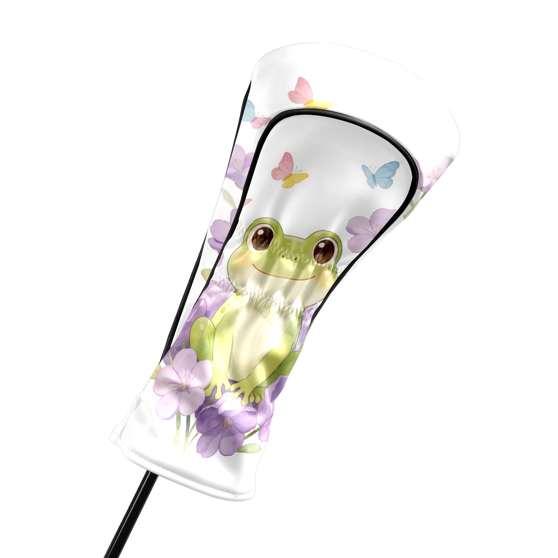 Golf Driver Head Cover Leather Driver Fairway Headcover, Premium Golf Club Covers with Plush Lining Girls Womens Mens Head Cover for Golf Clubs (Frog Purple Flowers)