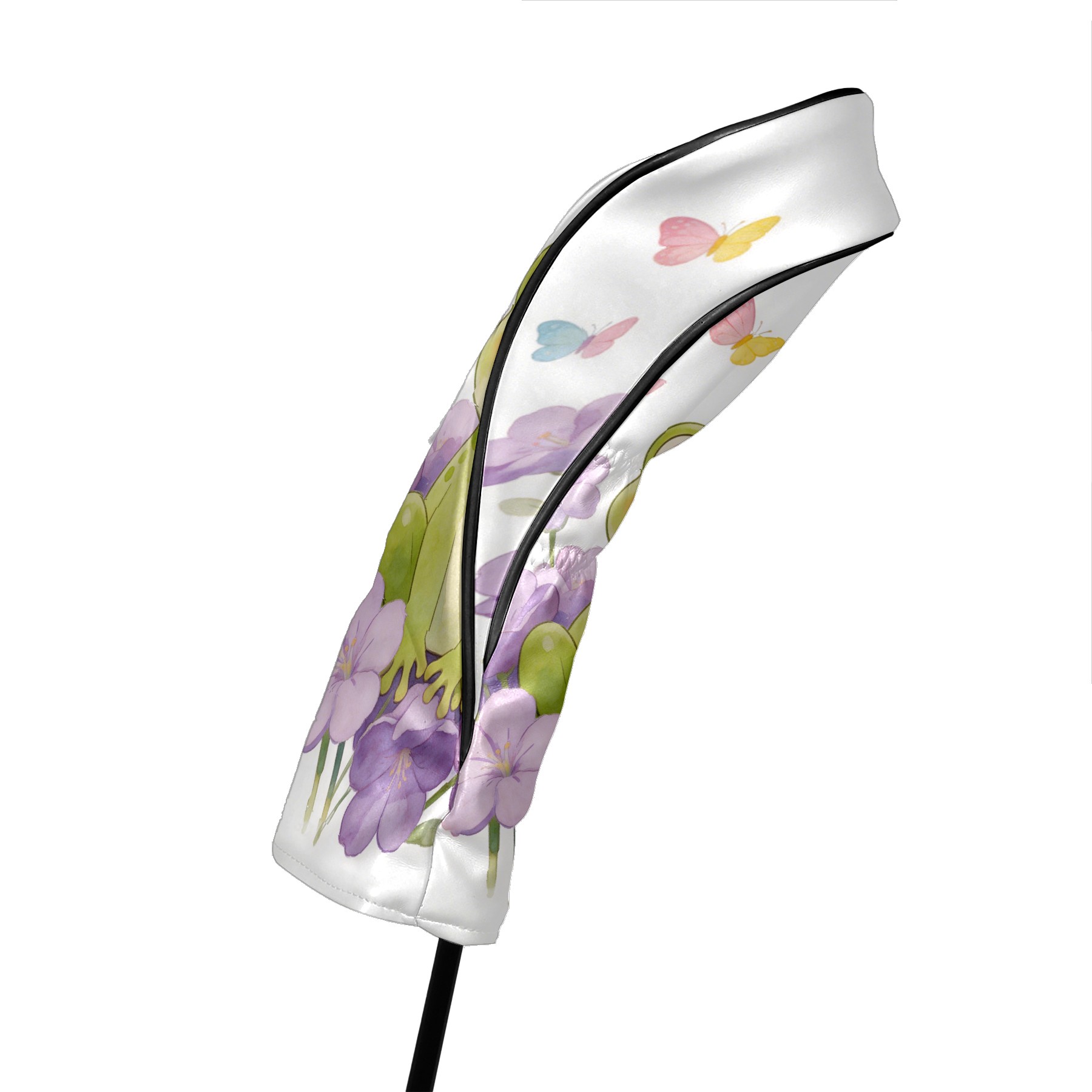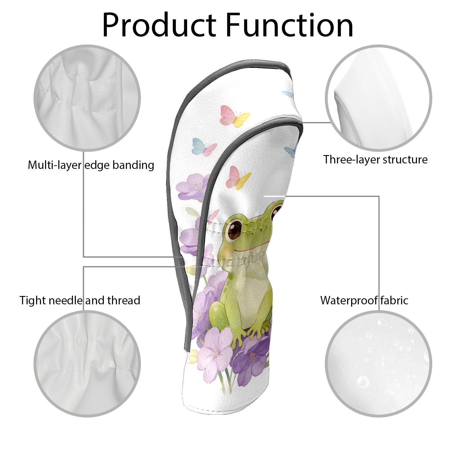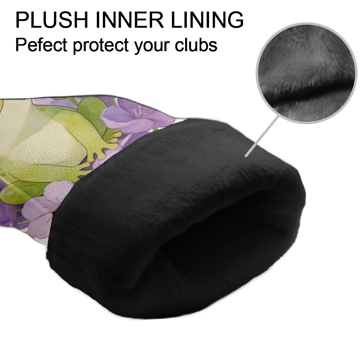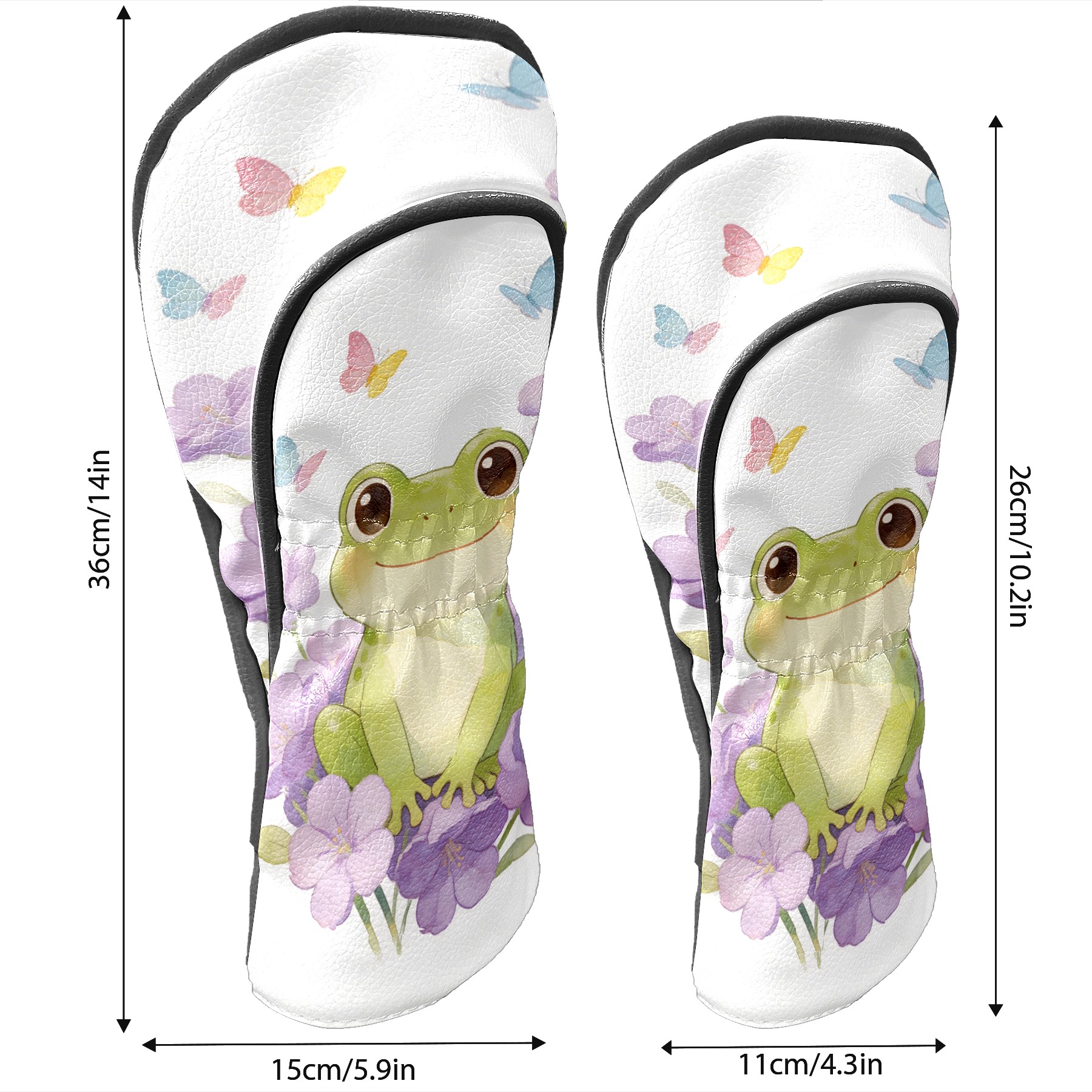 Golf Driver Head Cover Leather Driver Fairway Headcover, Premium Golf Club Covers with Plush Lining Girls Womens Mens Head Cover for Golf Clubs (Frog Purple Flowers)