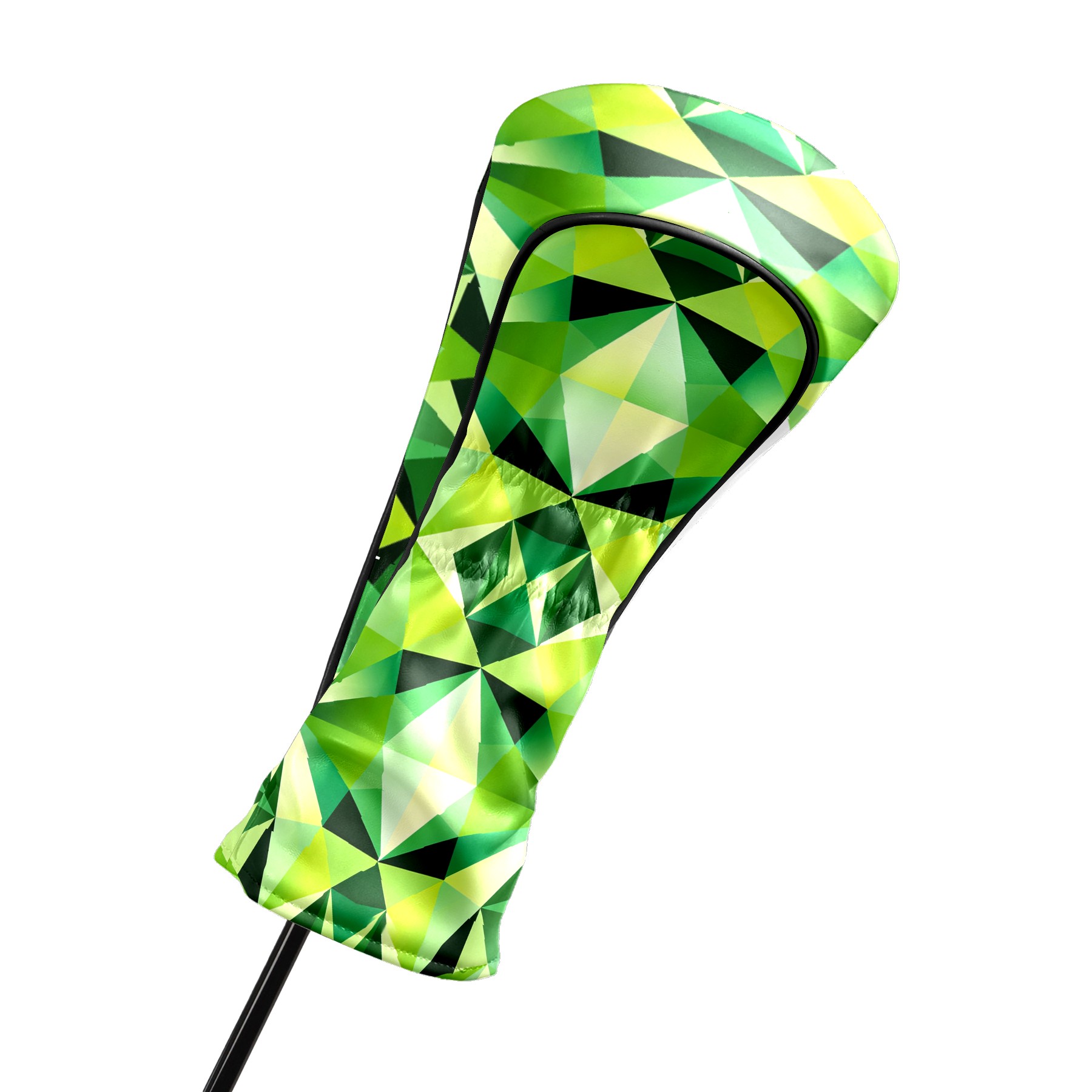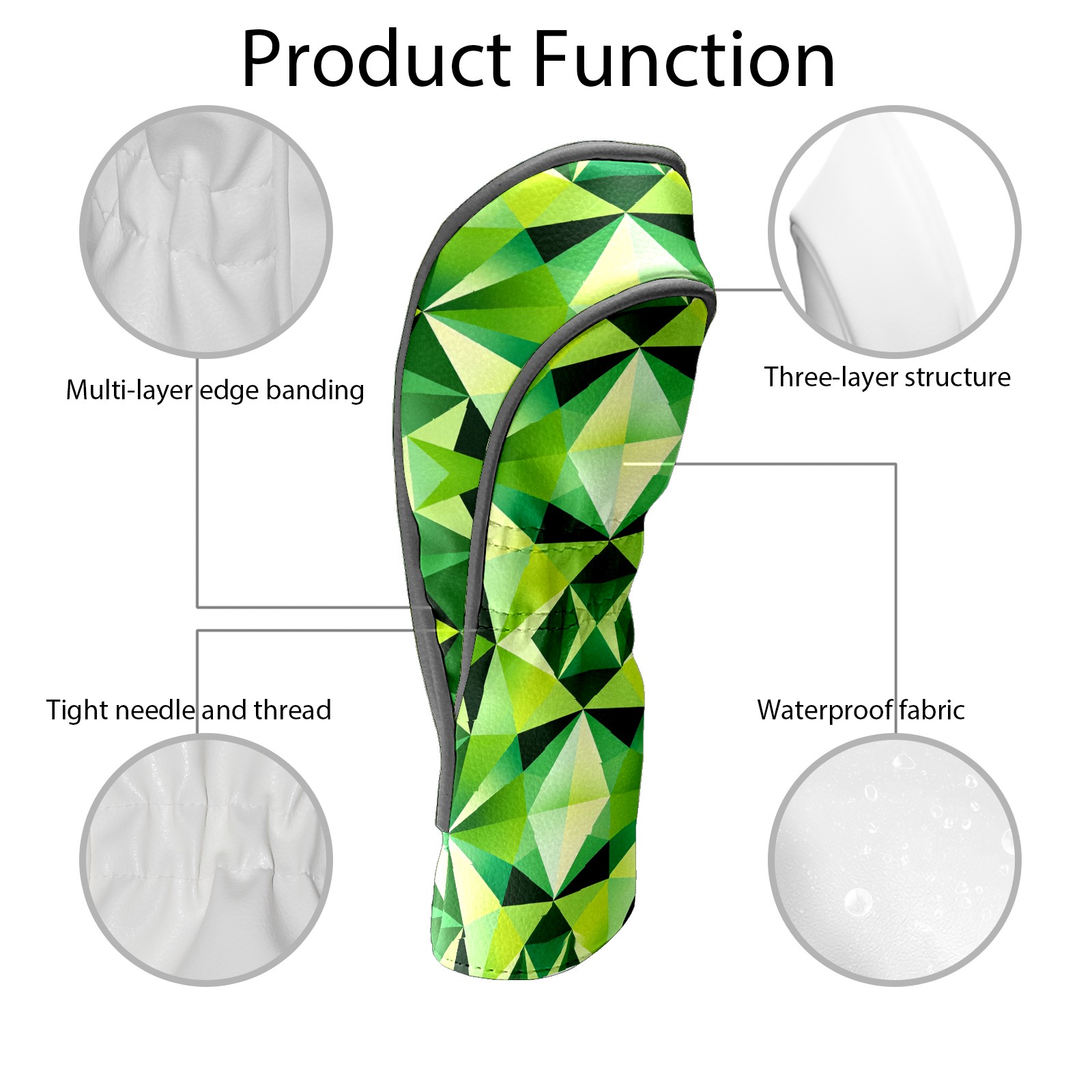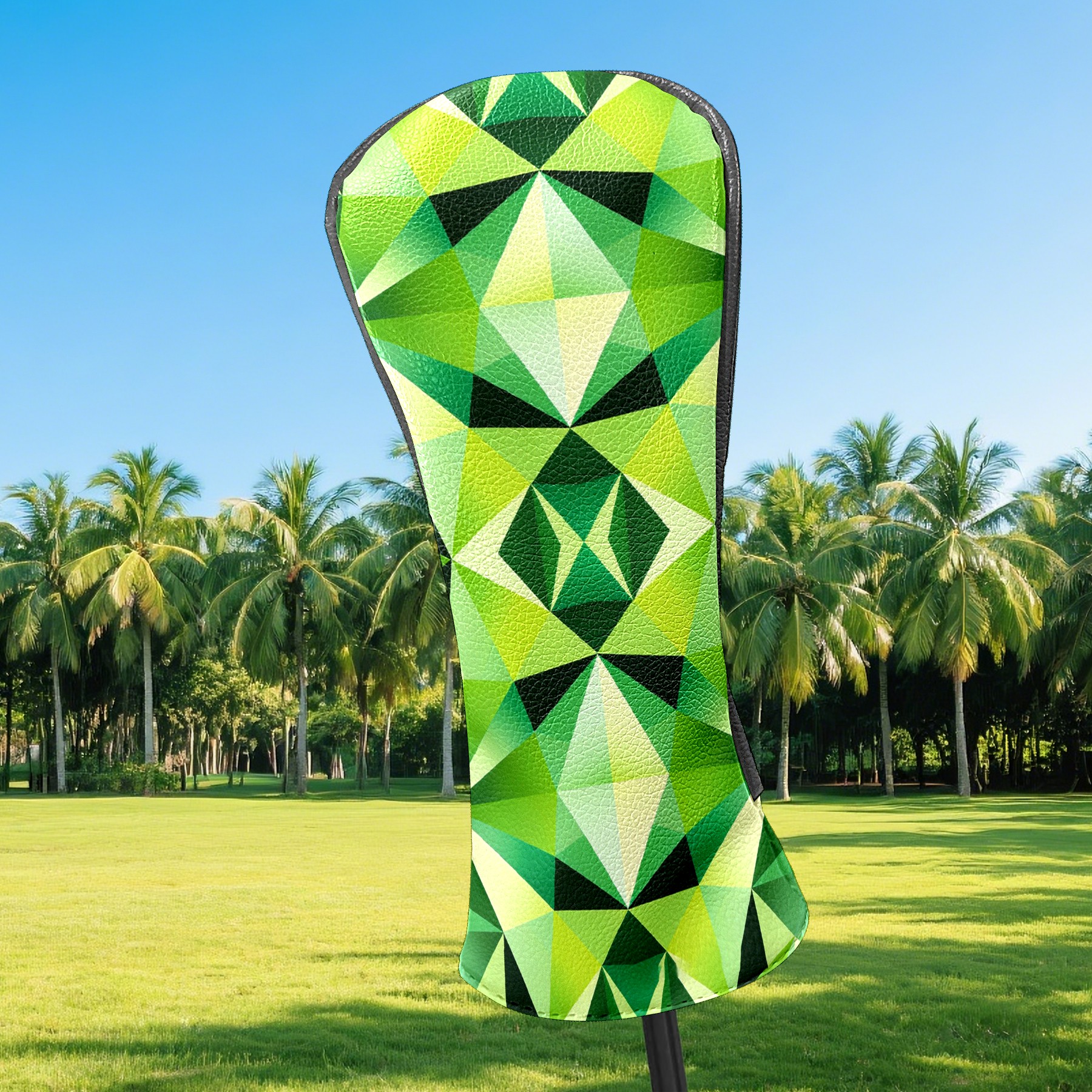 Golf Driver Head Cover Leather Driver Fairway Headcover, Premium Golf Club Covers with Plush Lining Girls Womens Mens Head Cover for Golf Clubs (Geometric Green)
