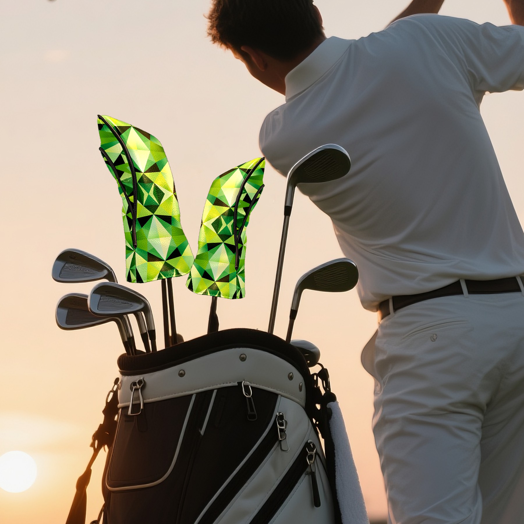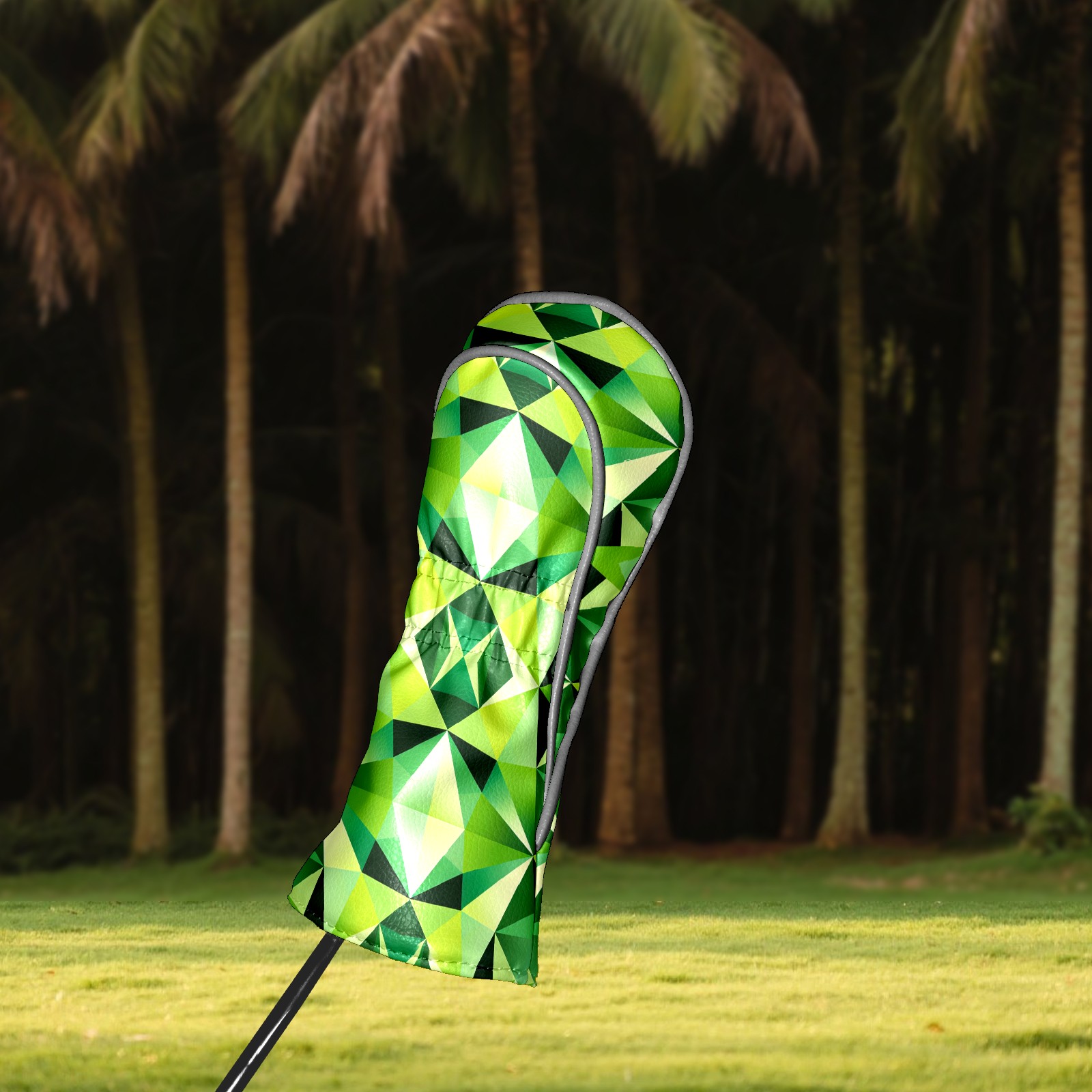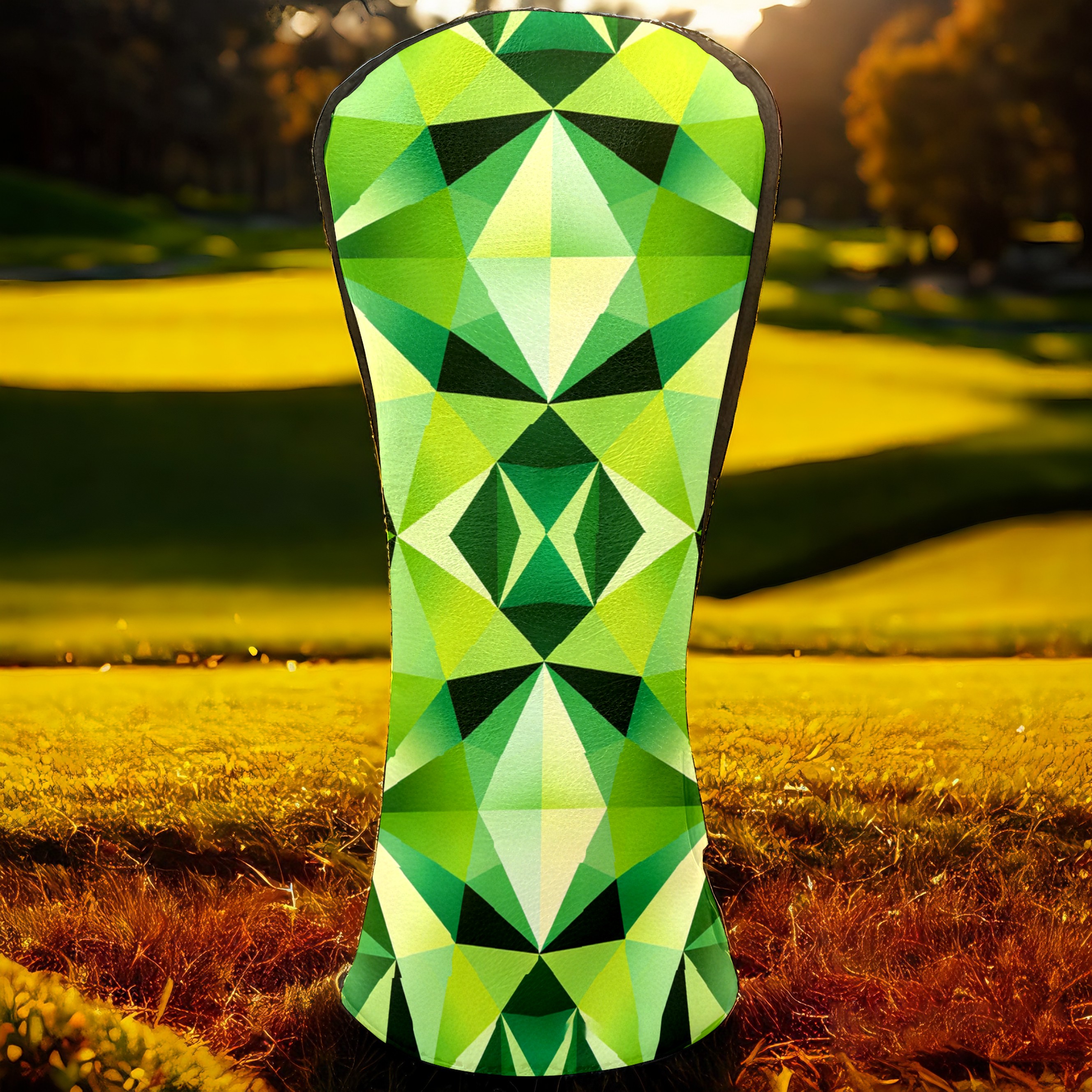 Golf Driver Head Cover Leather Driver Fairway Headcover, Premium Golf Club Covers with Plush Lining Girls Womens Mens Head Cover for Golf Clubs (Geometric Green)