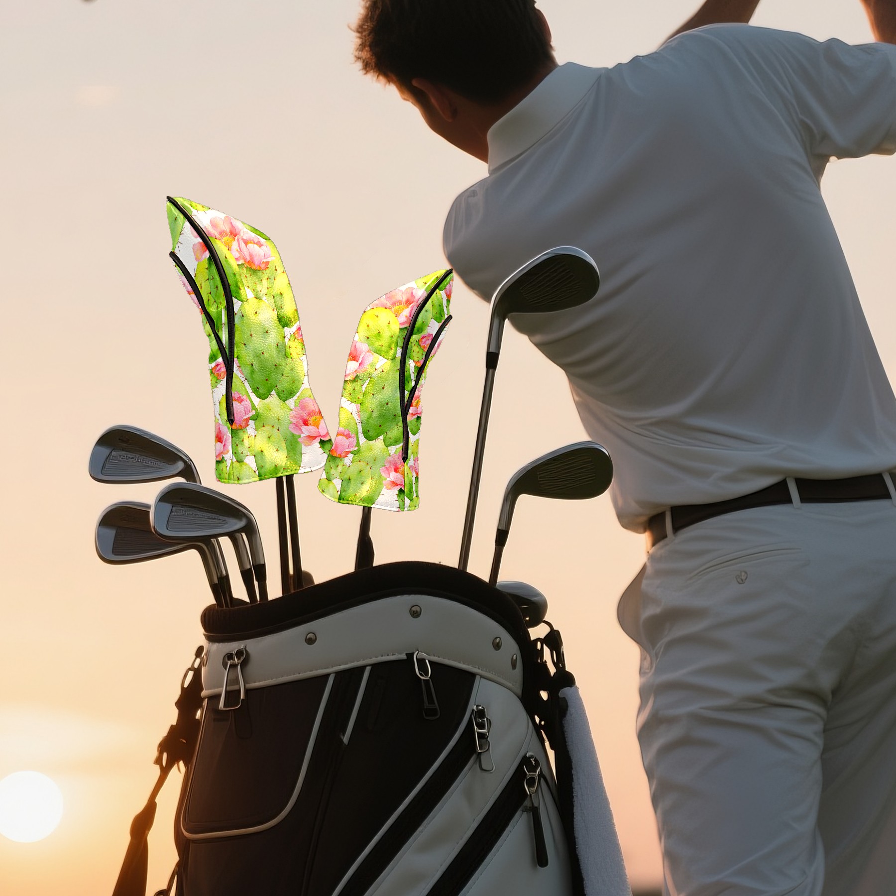 Golf Driver Head Cover Leather Driver Fairway Headcover, Premium Golf Club Covers with Plush Lining Girls Womens Mens Head Cover for Golf Clubs (Cactus)