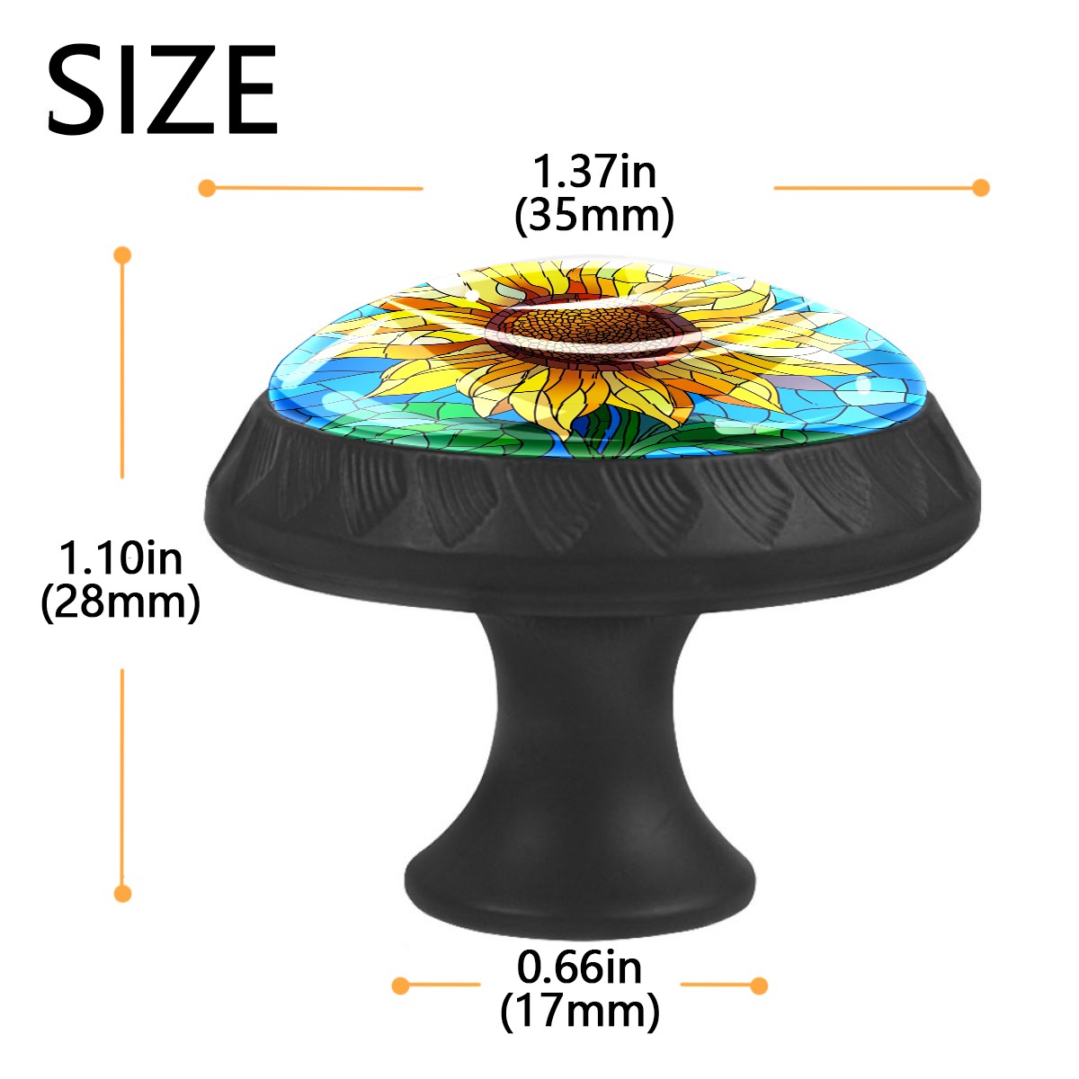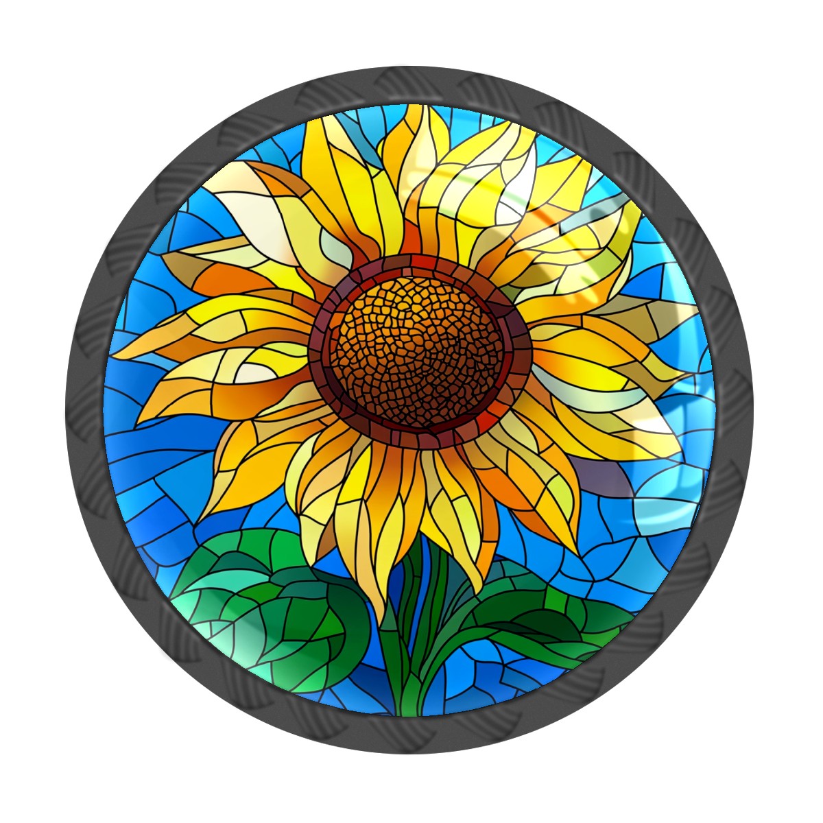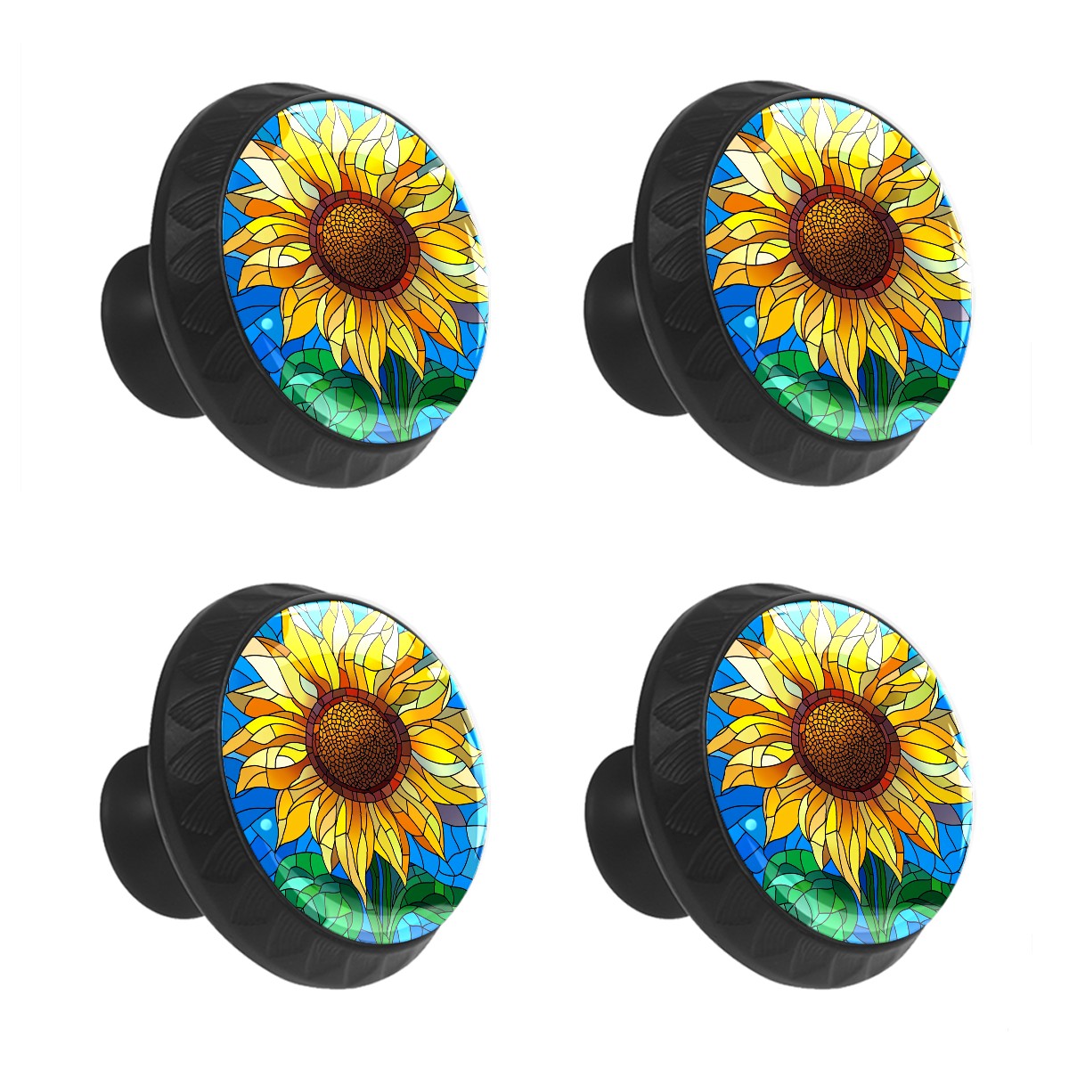 4 Pack Cabinet Knobs Stained Glass Sunflower Blue Drawer Pulls Crystal Glass Round Knobs Handles for Dressers Drawer Bathroom Kitchen Cupboards Wardrobes Hardware Furniture Knobs