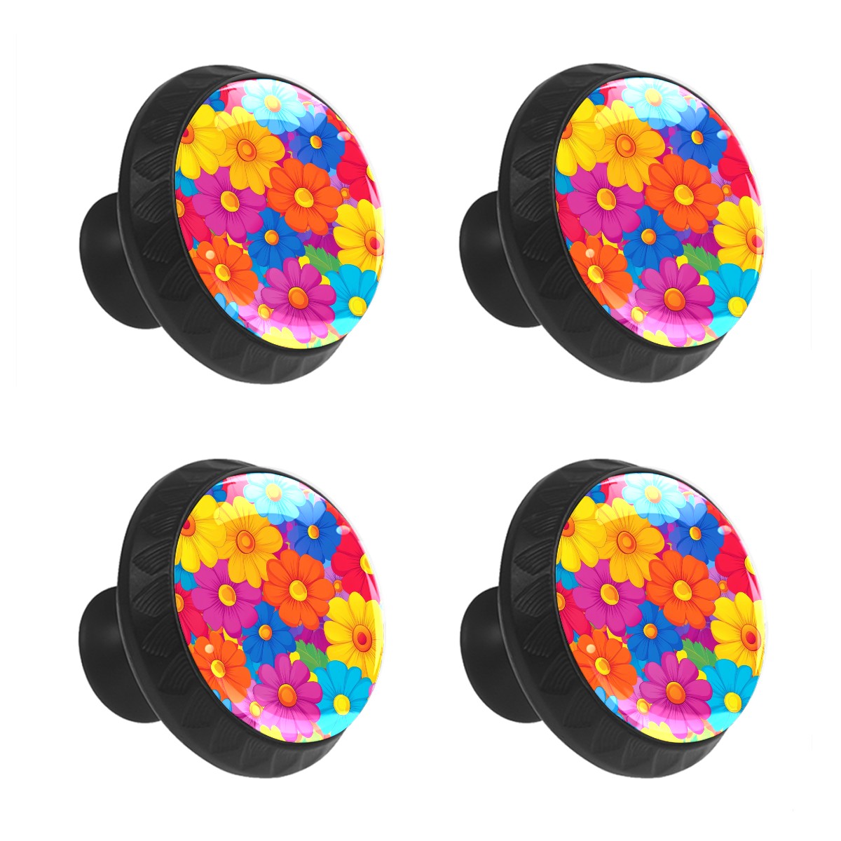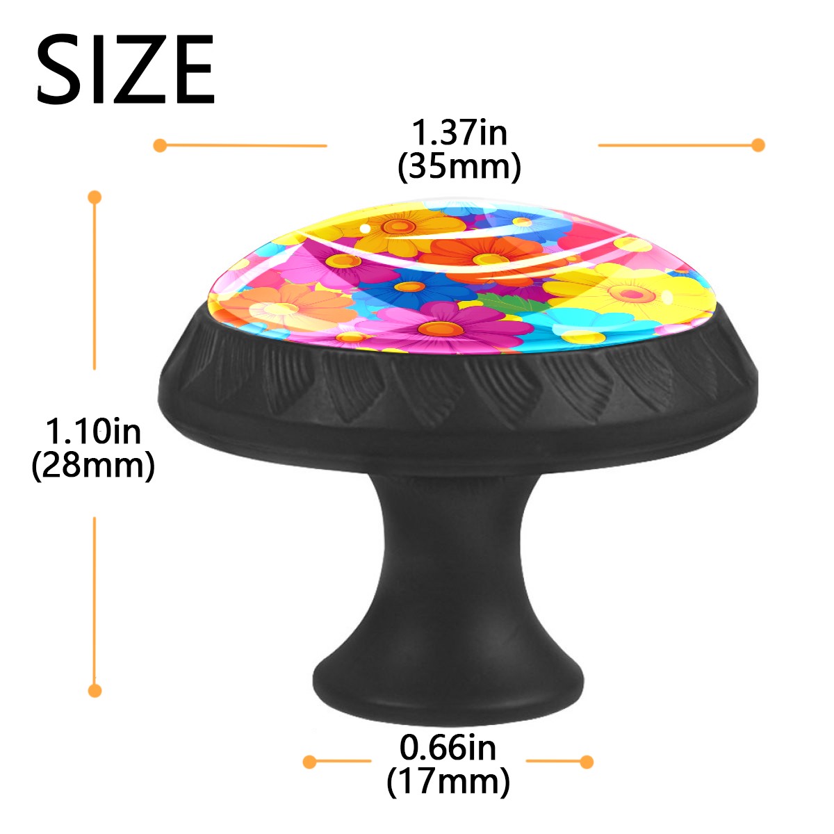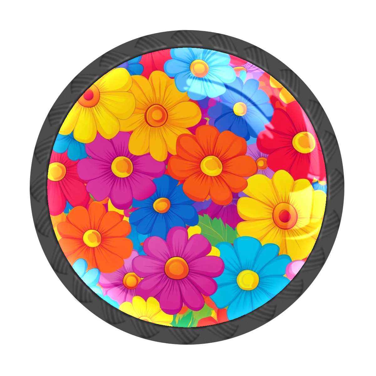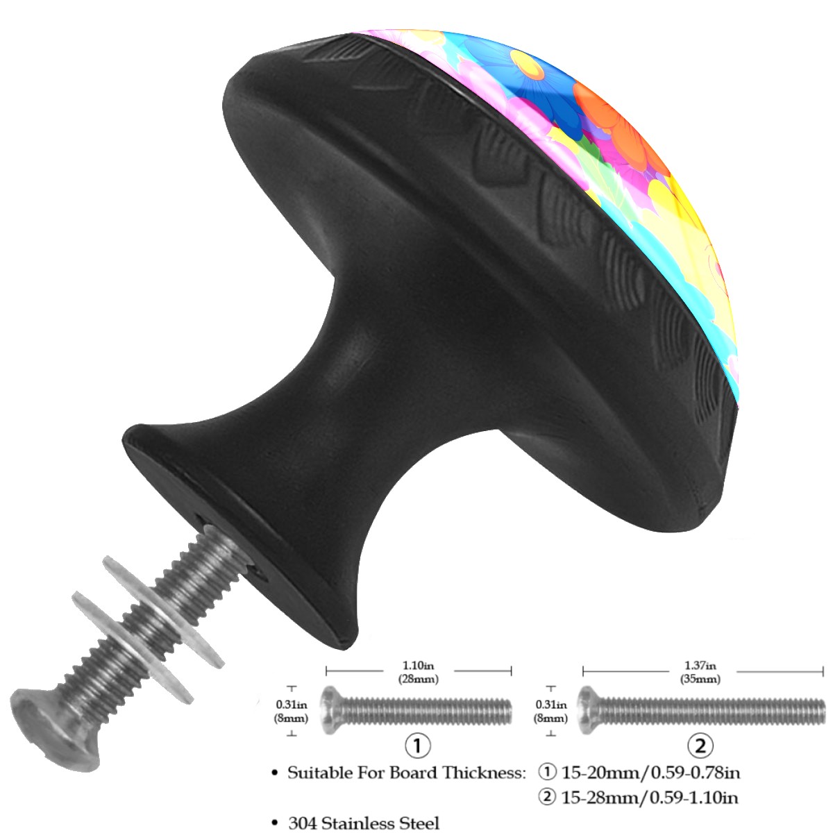 4 Pack Cabinet Knobs Colorful Floral Drawer Pulls Crystal Glass Round Knobs Handles for Dressers Drawer Bathroom Kitchen Cupboards Wardrobes Hardware Furniture Knobs