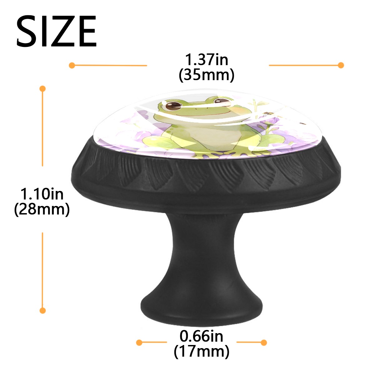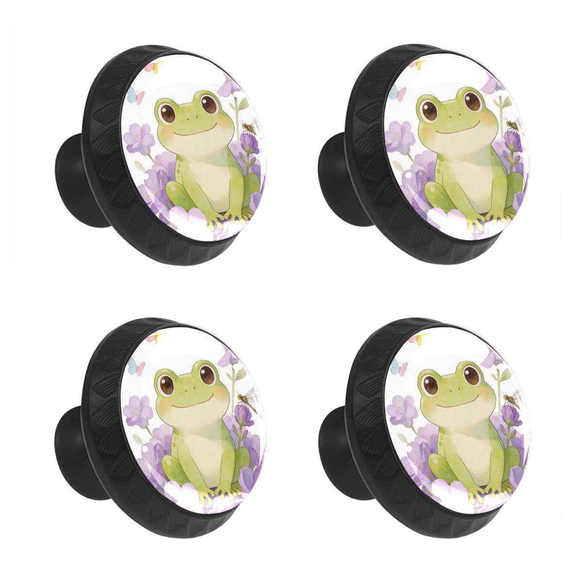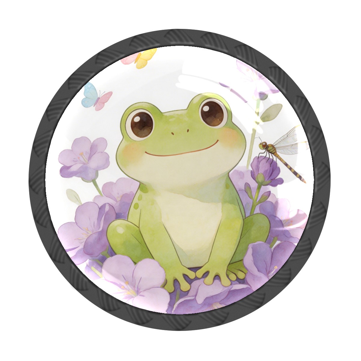 4 Pack Cabinet Knobs Frog Purple Flowers Drawer Pulls Crystal Glass Round Knobs Handles for Dressers Drawer Bathroom Kitchen Cupboards Wardrobes Hardware Furniture Knobs