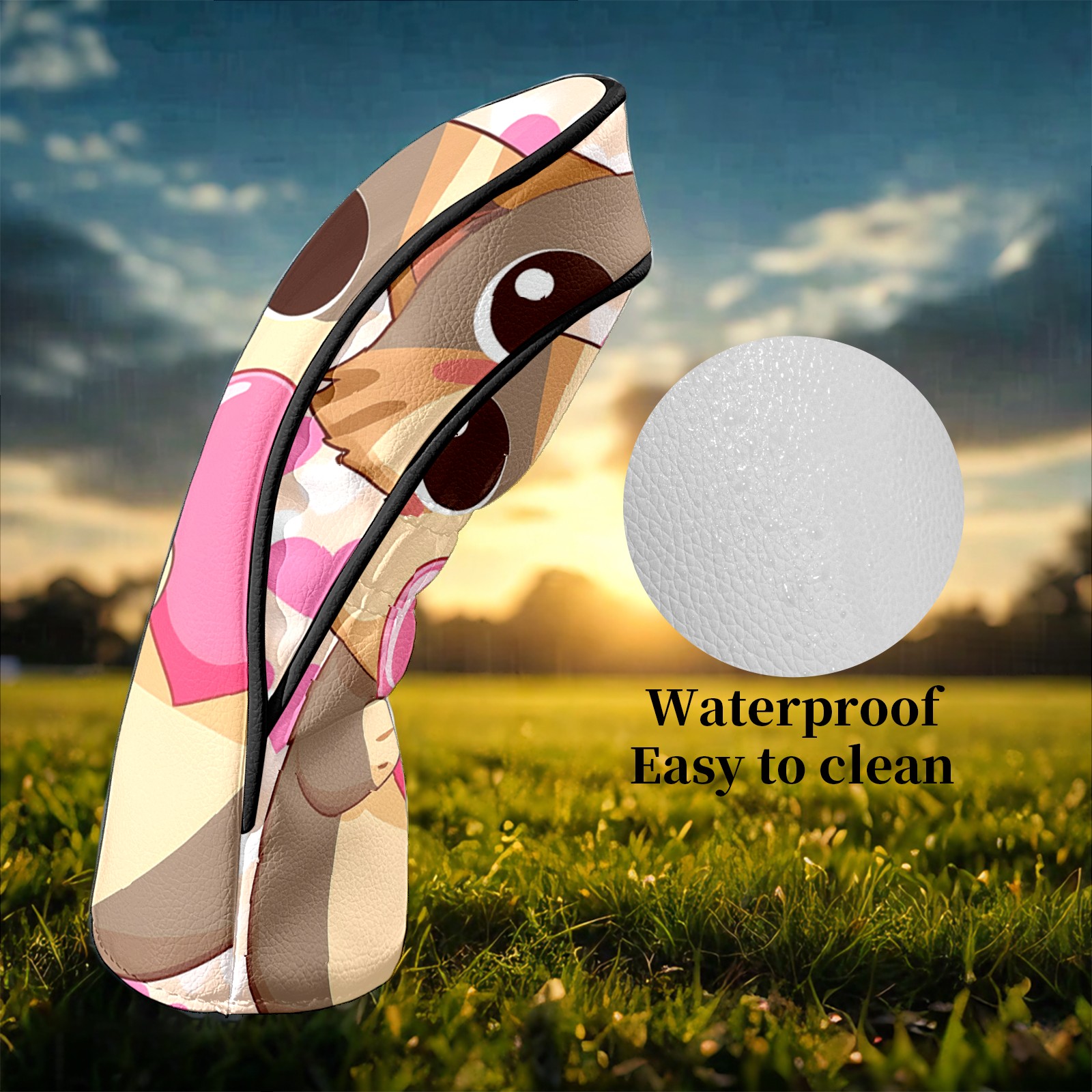 Golf Club Head Covers CatHoldingHeart Premium Plush Velvet Lining, Waterproof Golf Headcovers Driver & Fairway Woods for Scratch Protection Novelty Gift for Men & Women