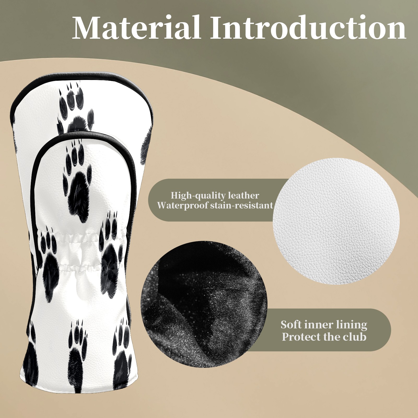 Golf Club Head Covers Bear Paw Prints Premium Plush Velvet Lining, Waterproof Golf Headcovers Driver & Fairway Woods for Scratch Protection Novelty Gift for Men & Women