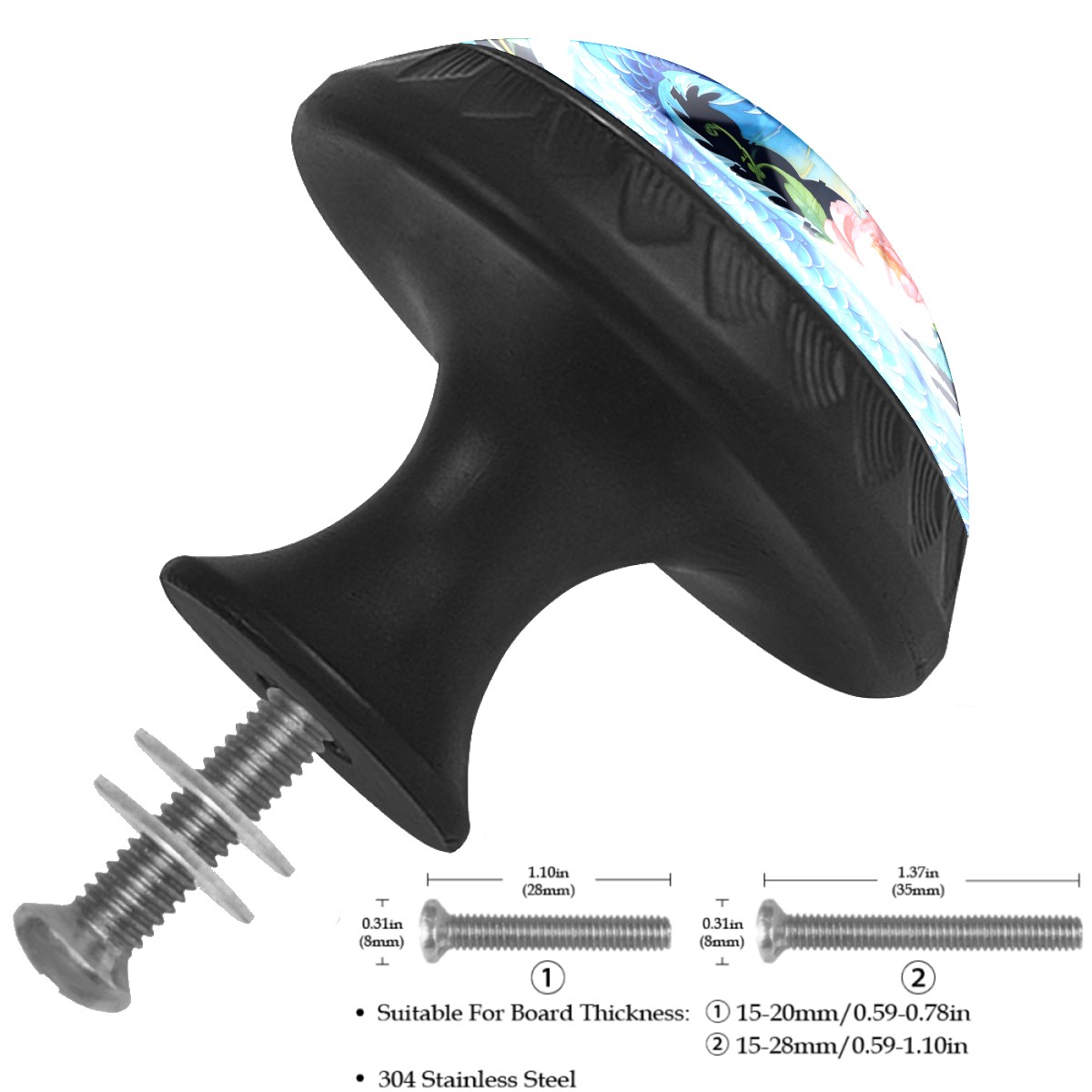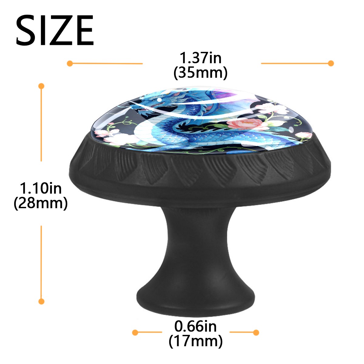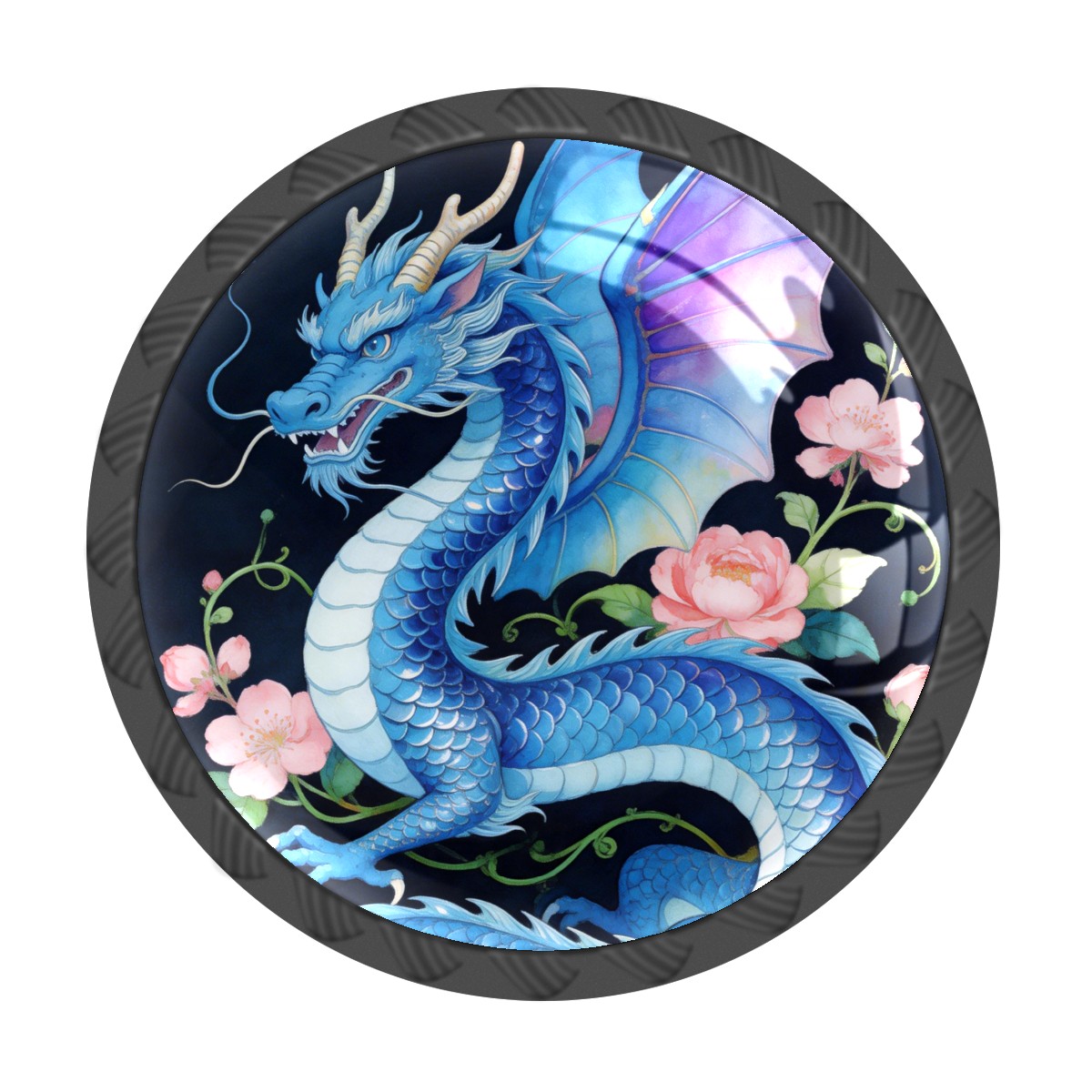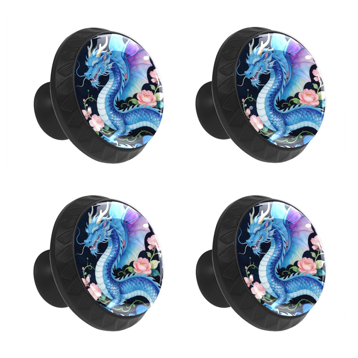 4 Pack Cabinet Knobs Blue Dragon Floral Decorative Dresser Knobs Crystal Glass Pulls Knobs for Dressers Drawer Bathroom Kitchen Cupboards Wardrobes Hardware Furniture Knobs Handles