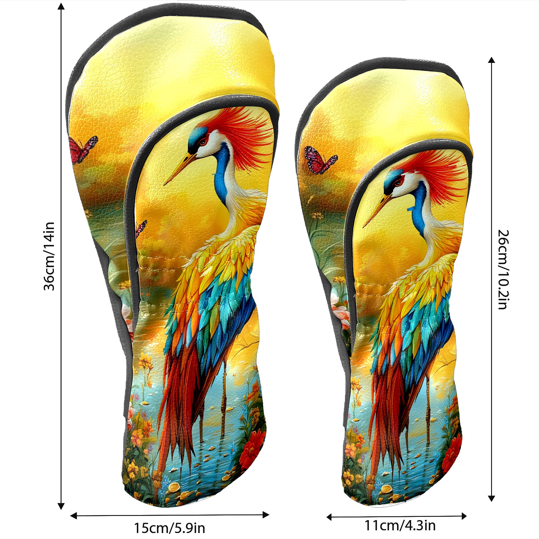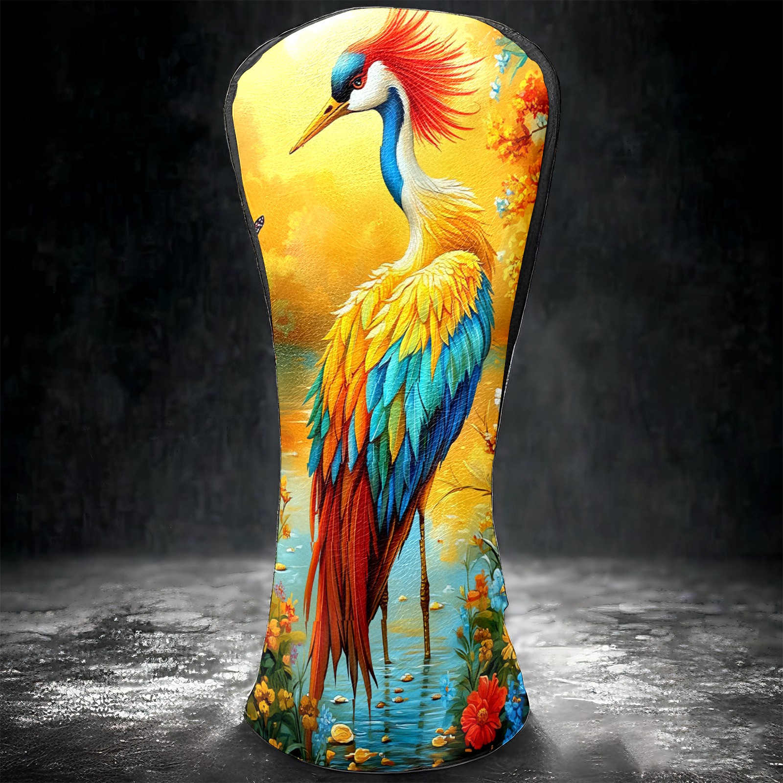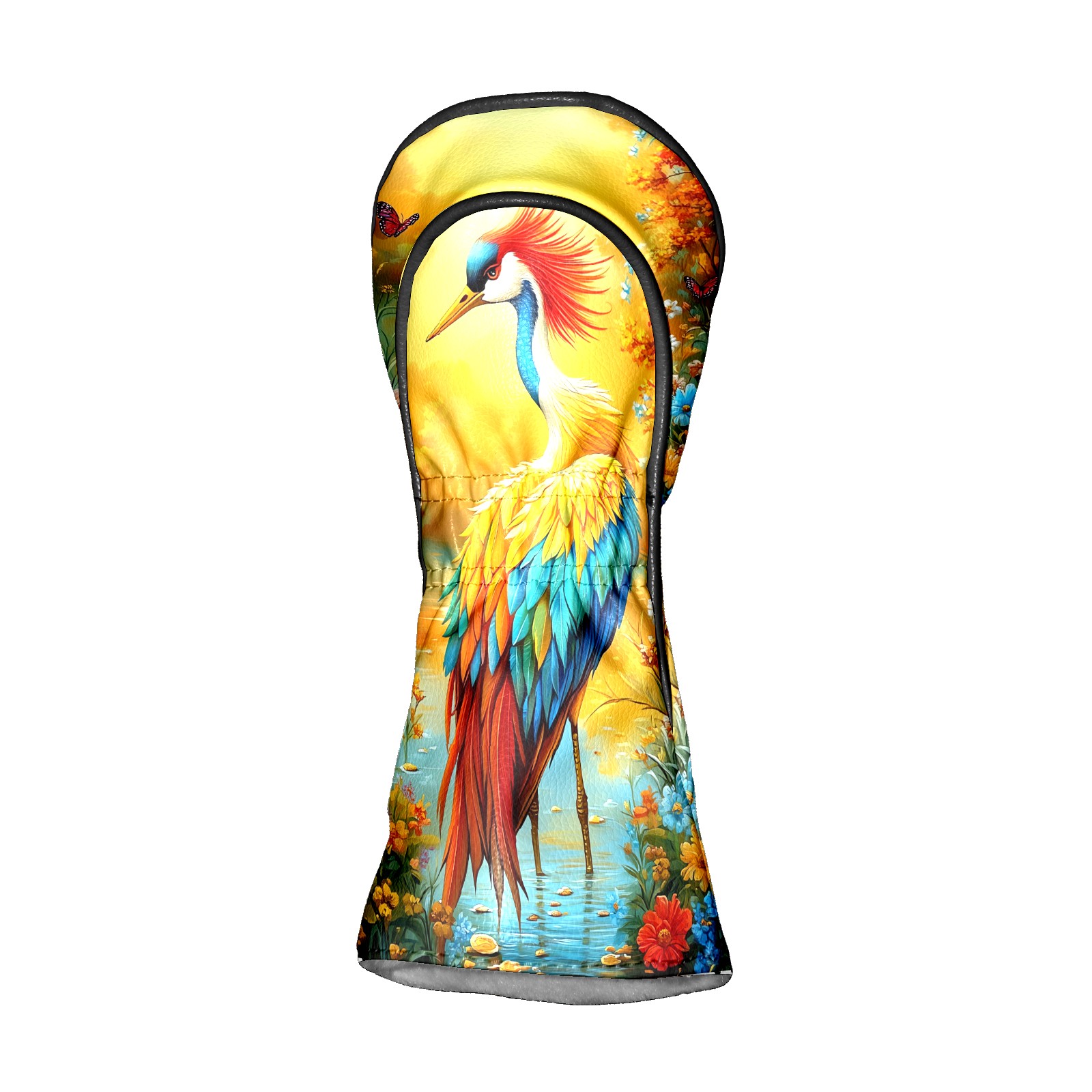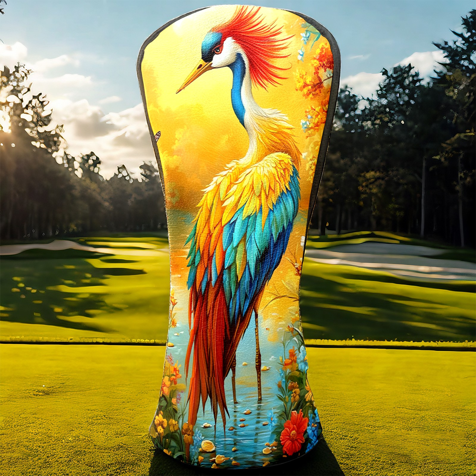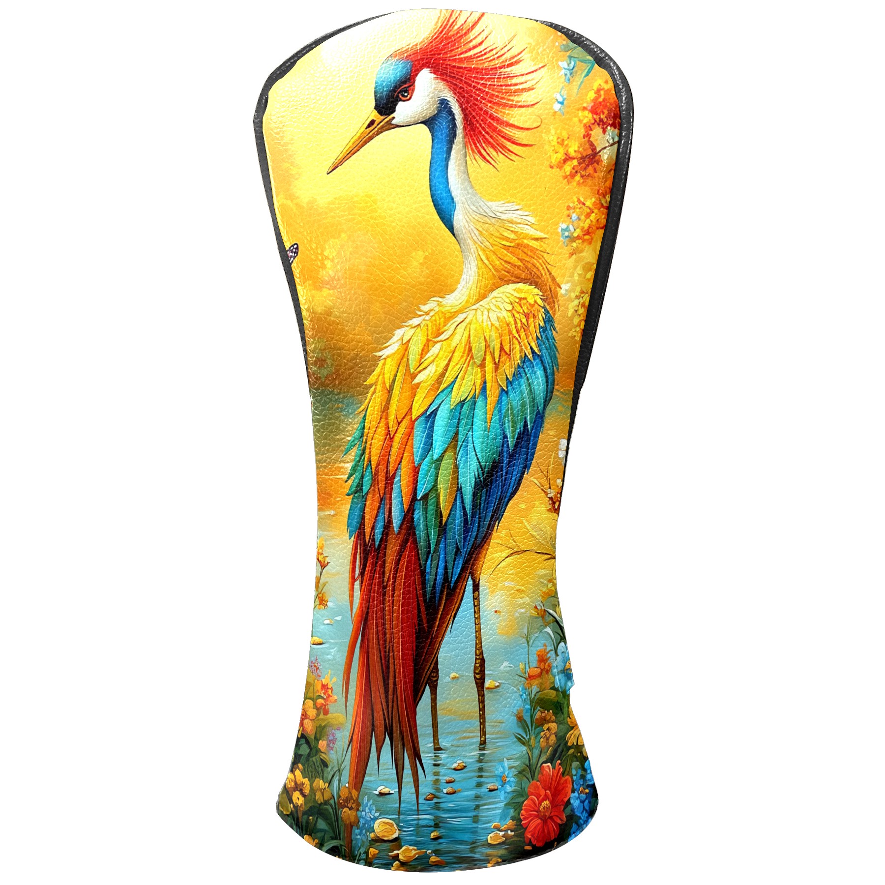 Golf Head Covers Leather Driver Head Cover, Premium Golf Club Covers with Anti-Scratch Lining for Women Men 1/3/5 Wood Cover for Golf Clubs (Colorful Crane (1))