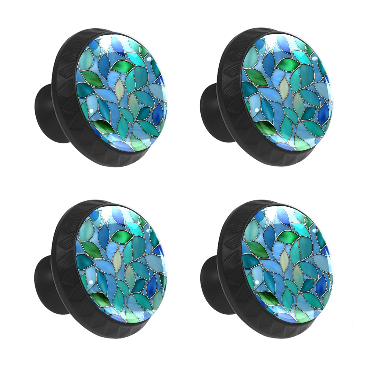 4 Pcs Cabinet Knobs Leaf Teal Blue Decorative Glass Knobs for Dresser Cabinet Drawer Pull Handles for Kitchen Bathroom Furniture Cupboard Hardware Knobs