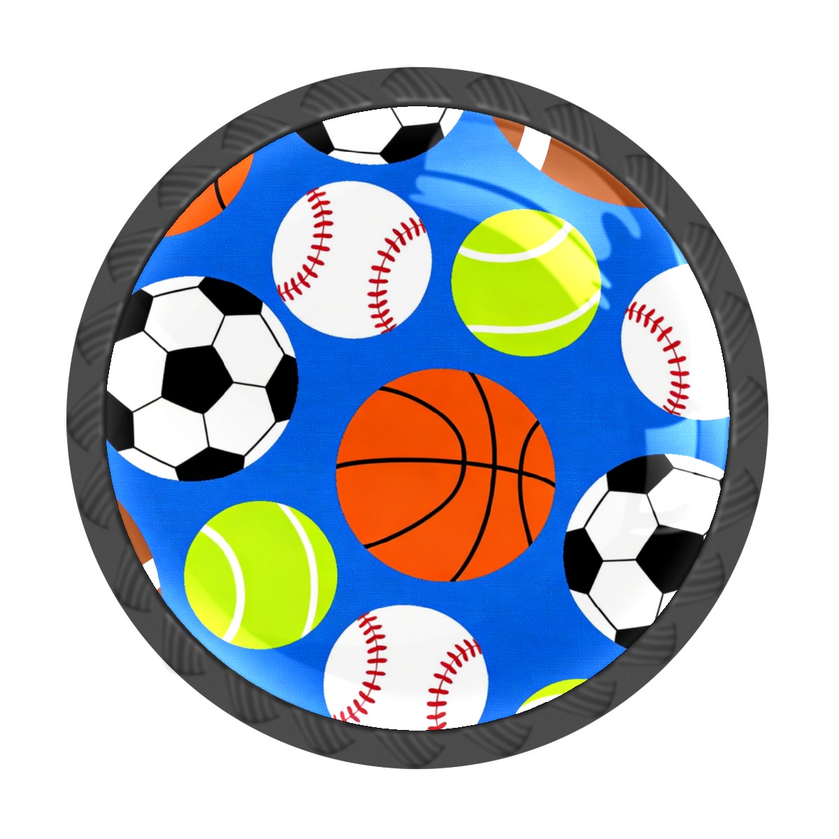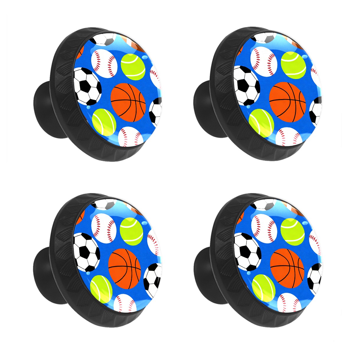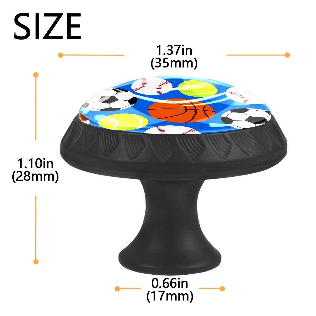 4 Pcs Cabinet Knobs Sport Balls Decorative Glass Knobs for Dresser Cabinet Drawer Pull Handles for Kitchen Bathroom Furniture Cupboard Hardware Knobs