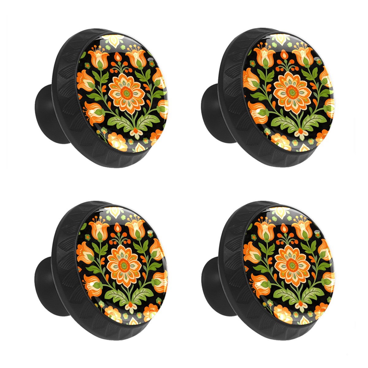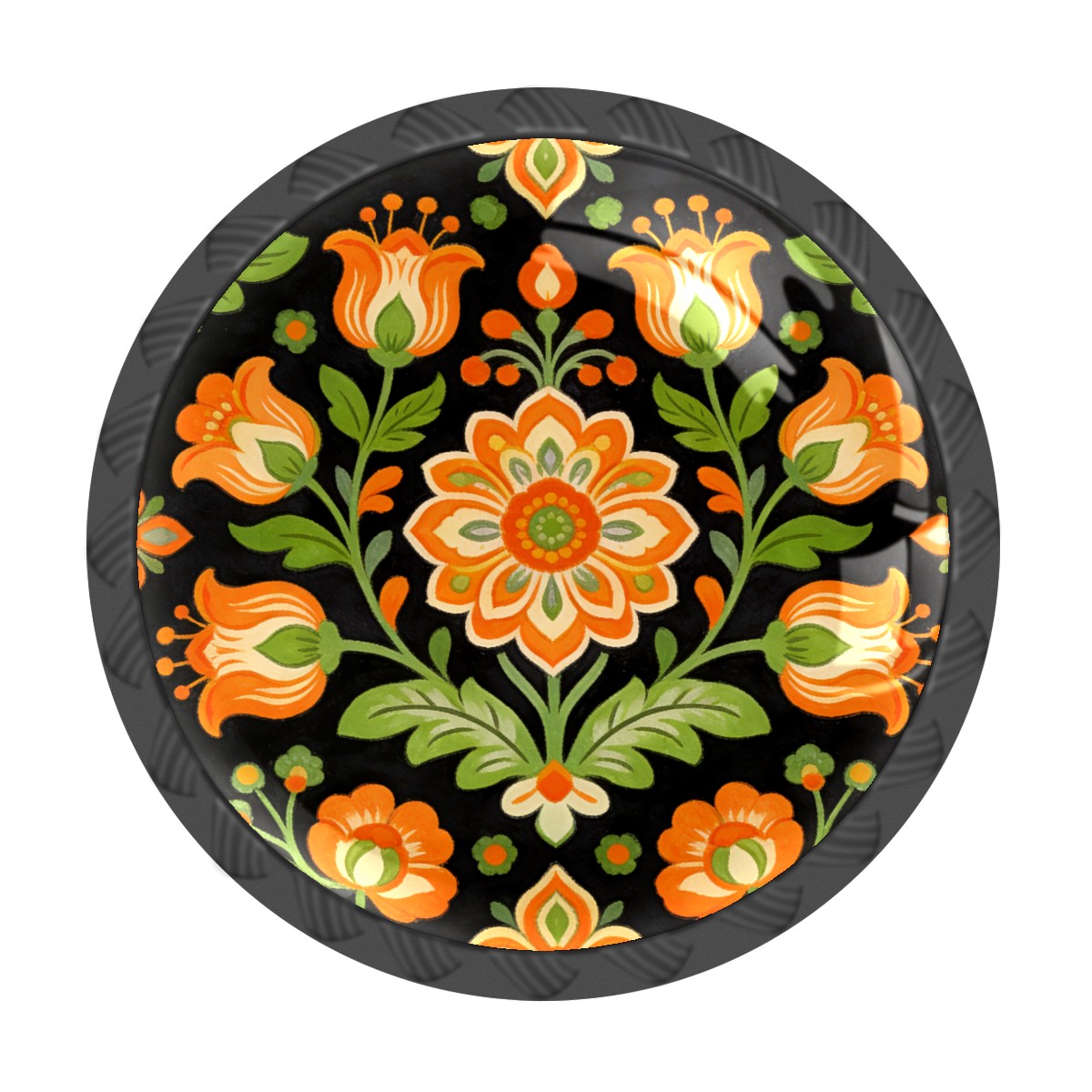4 Pcs Cabinet Knobs Orange Green Floral Decorative Glass Knobs for Dresser Cabinet Drawer Pull Handles for Kitchen Bathroom Furniture Cupboard Hardware Knobs