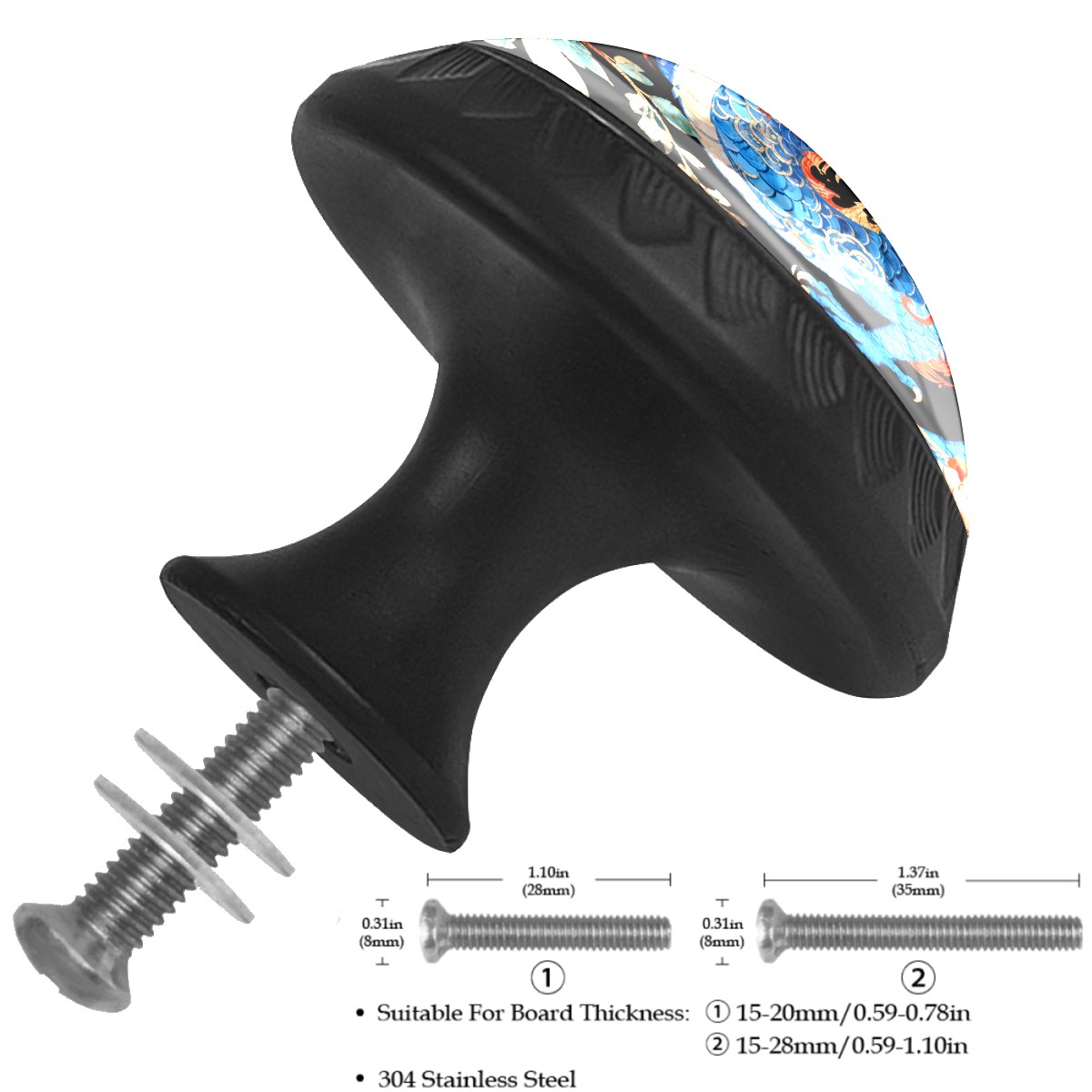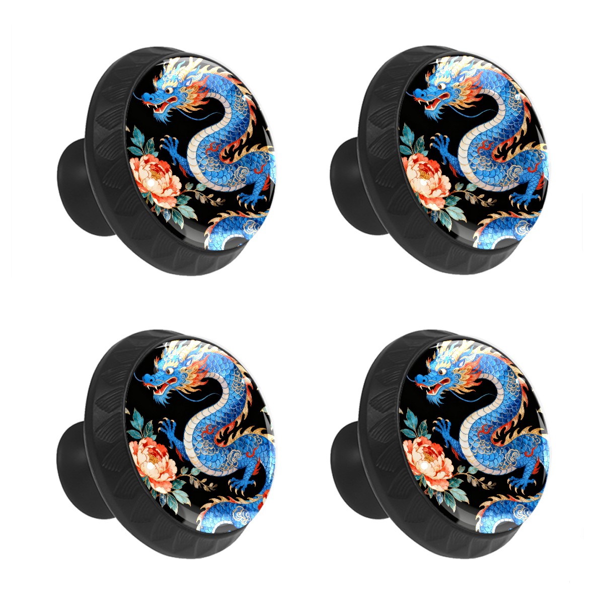 4 Pcs Cabinet Knobs Dragon Decorative Glass Knobs for Dresser Cabinet Drawer Pull Handles for Kitchen Bathroom Furniture Cupboard Hardware Knobs