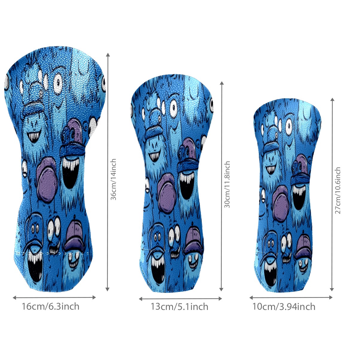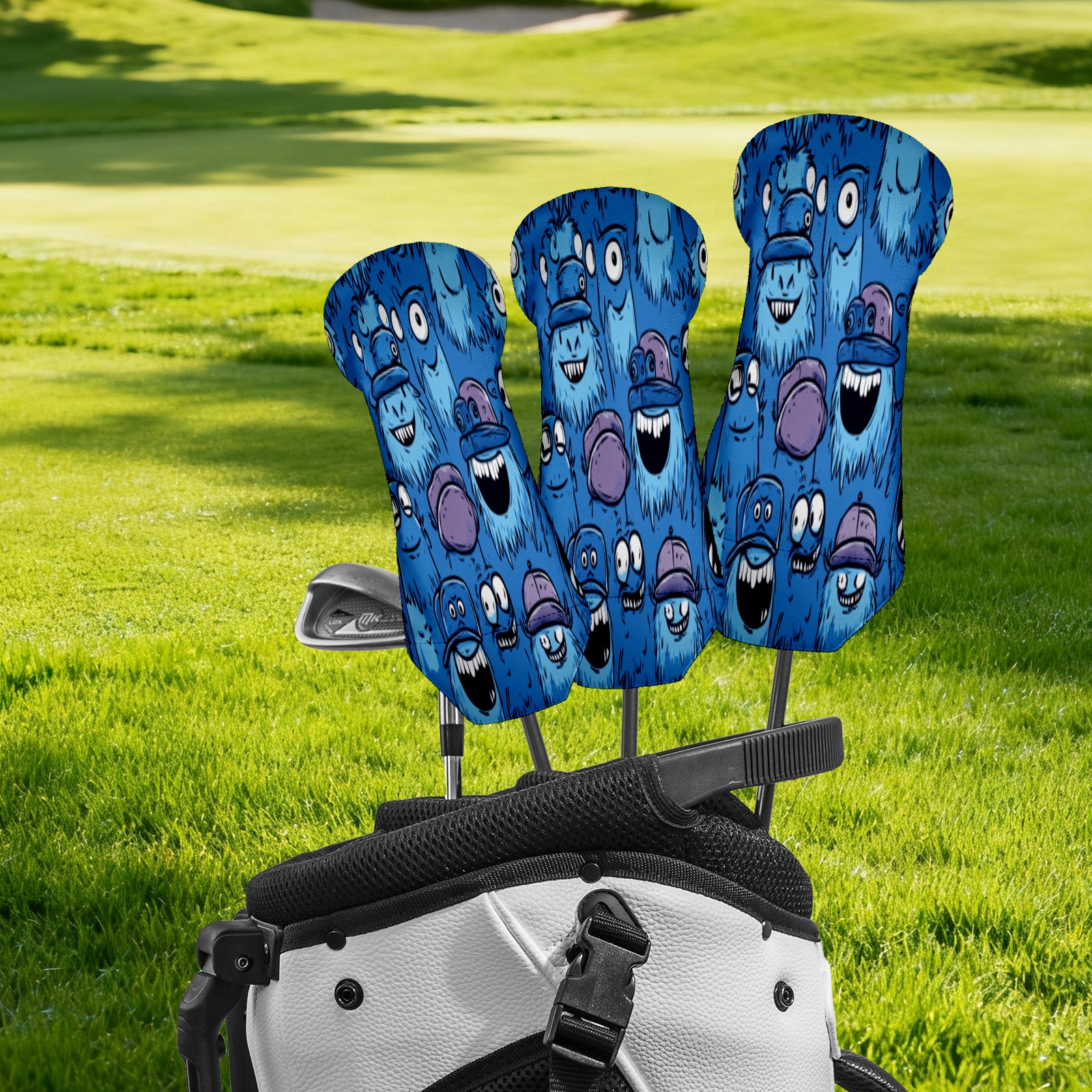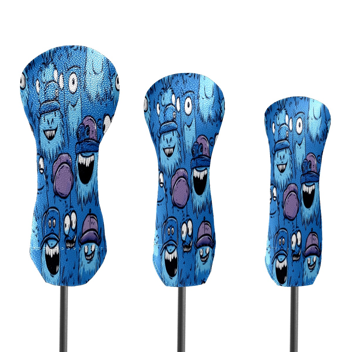 Golf Head Covers 3-Pack Cute Monster Fits Driver Fairway Hybrid - Waterproof PU Leather with Plush Velvet Lining, Scratch Protection, Durable Golf Gift for Men & Women