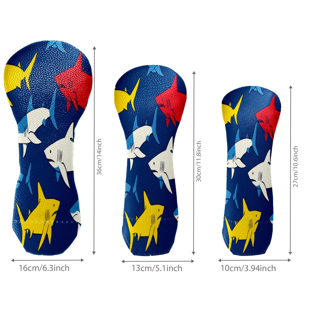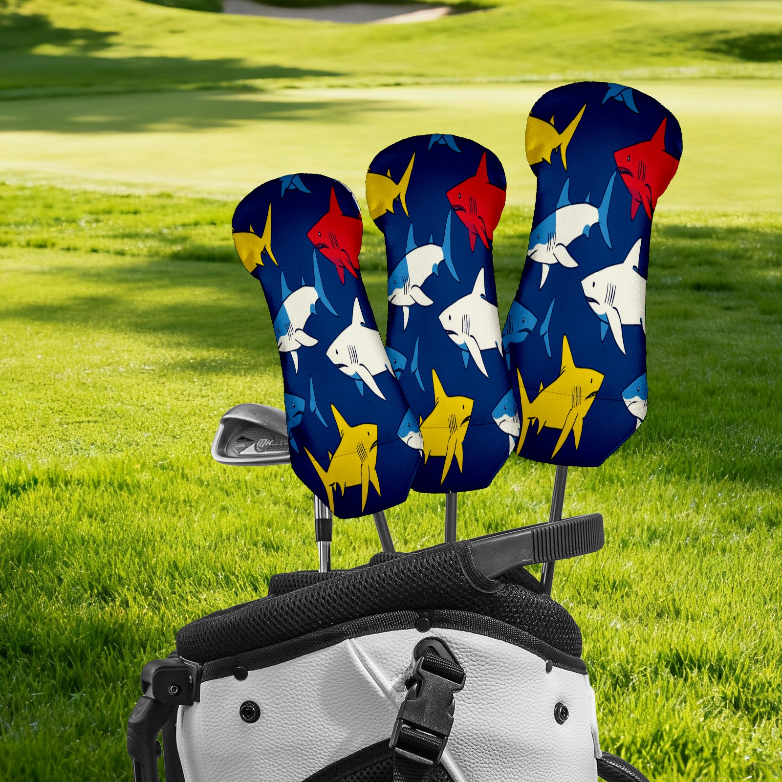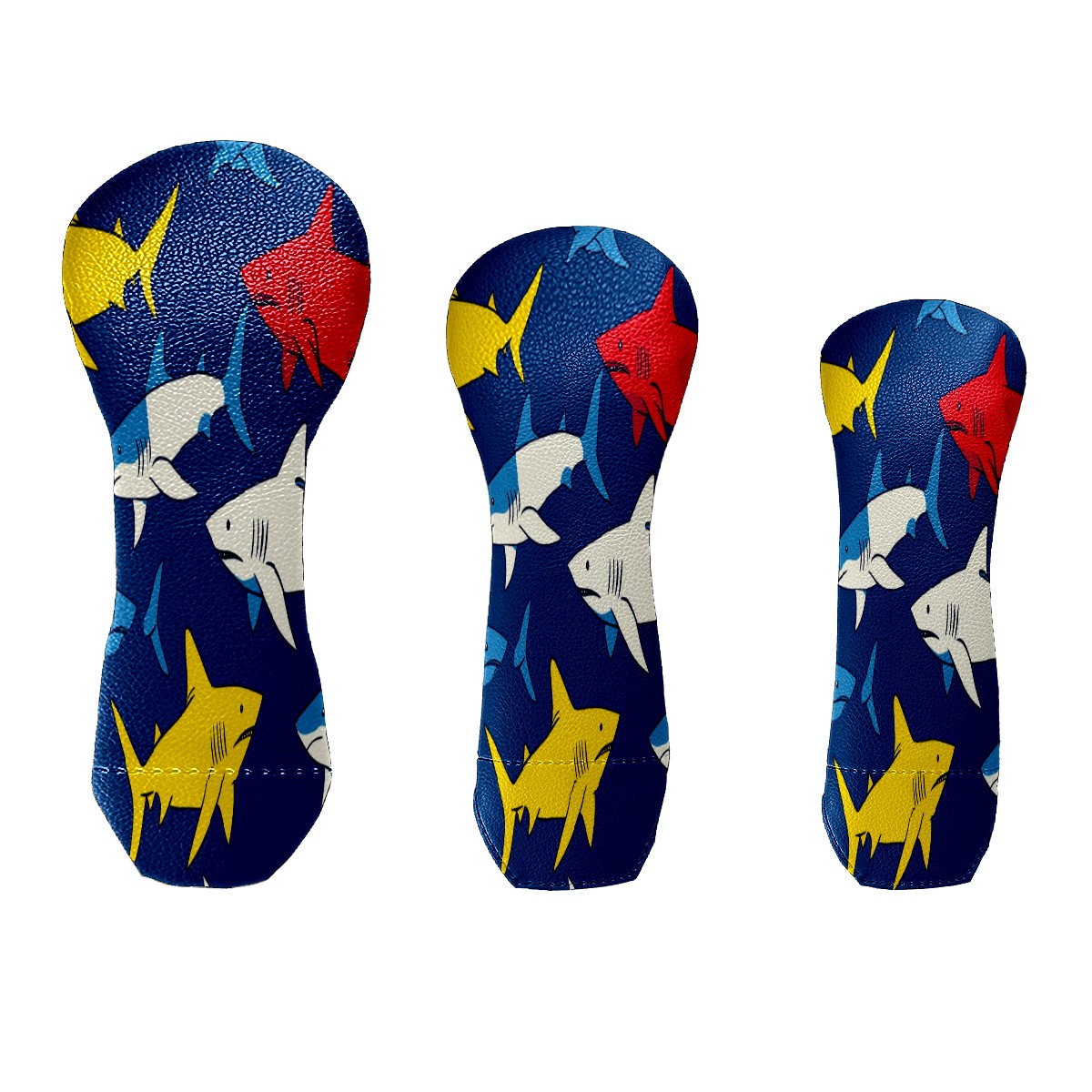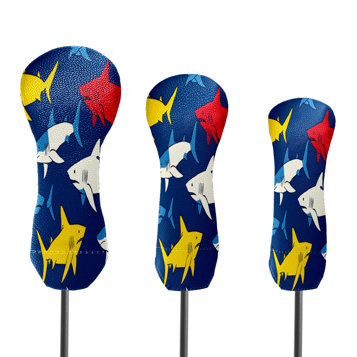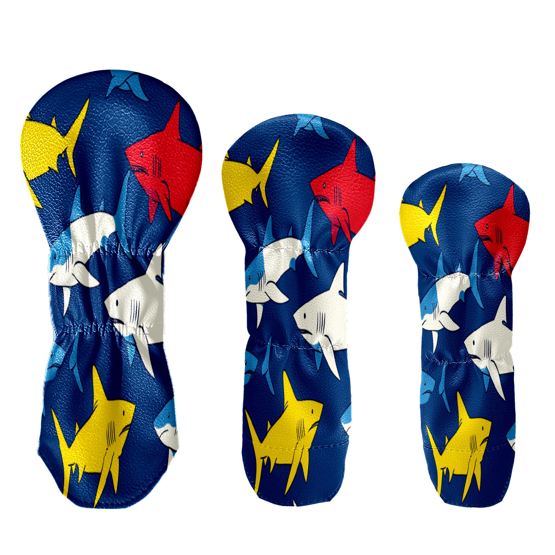 Golf Head Covers 3-Pack Shark_ColorfulUnderwater Fits Driver Fairway Hybrid - Waterproof PU Leather with Plush Velvet Lining, Scratch Protection, Durable Golf Gift for Men & Women