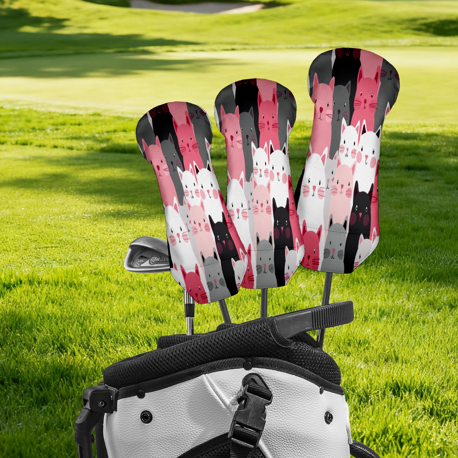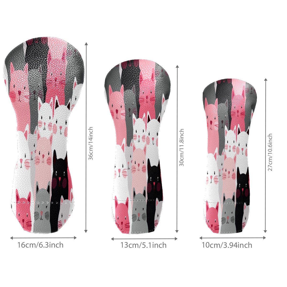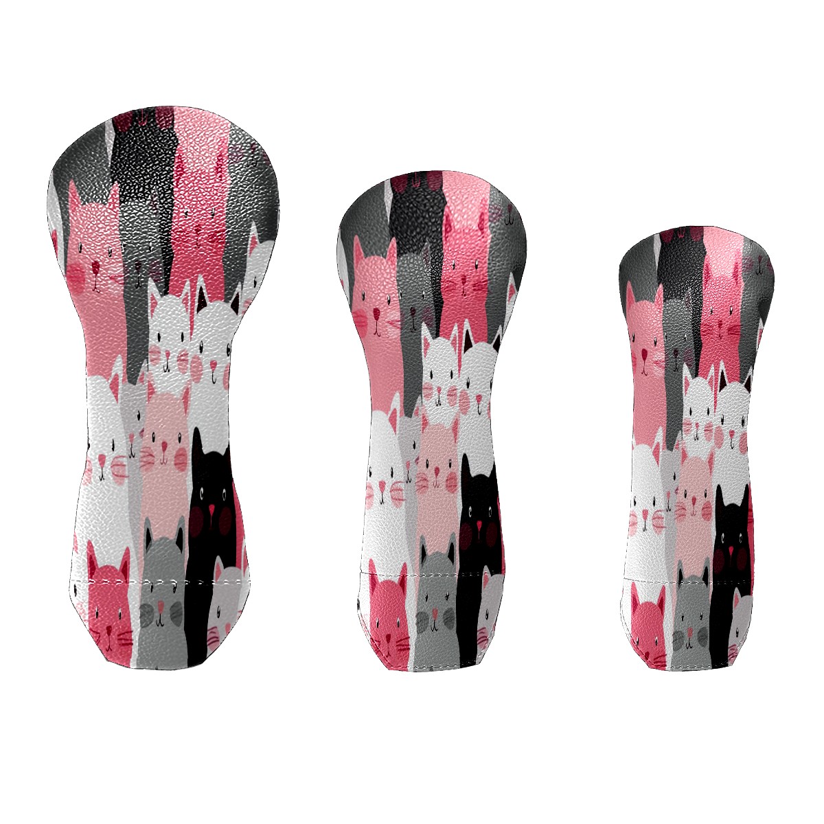 Golf Head Covers 3-Pack Cat Cluster PinkTone Fits Driver Fairway Hybrid - Waterproof PU Leather with Plush Velvet Lining, Scratch Protection, Durable Golf Gift for Men & Women