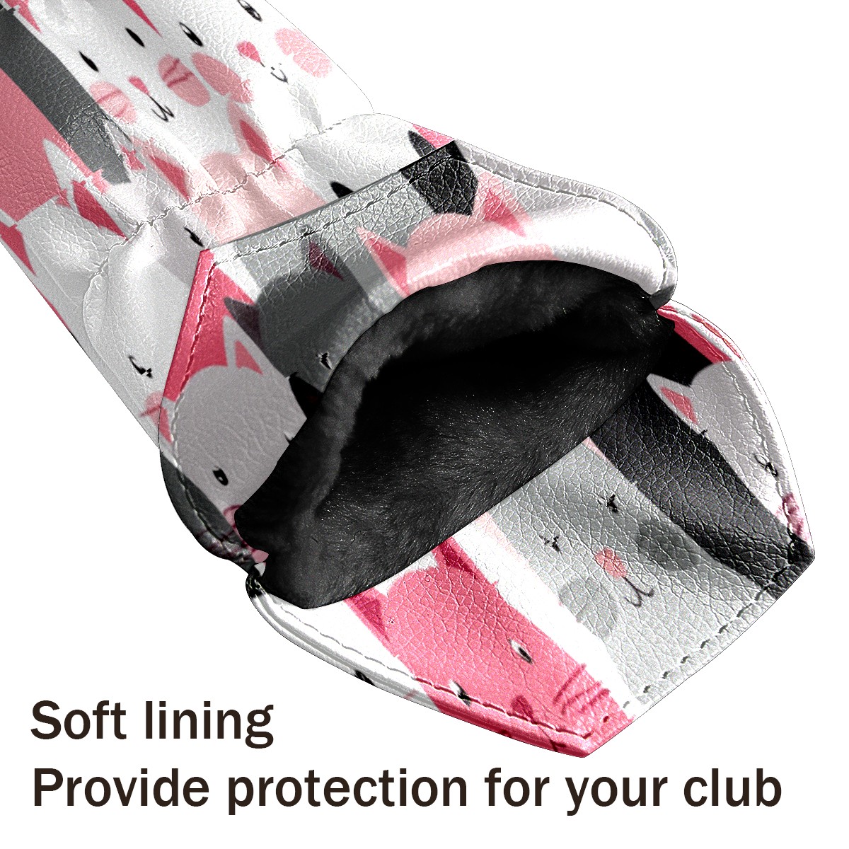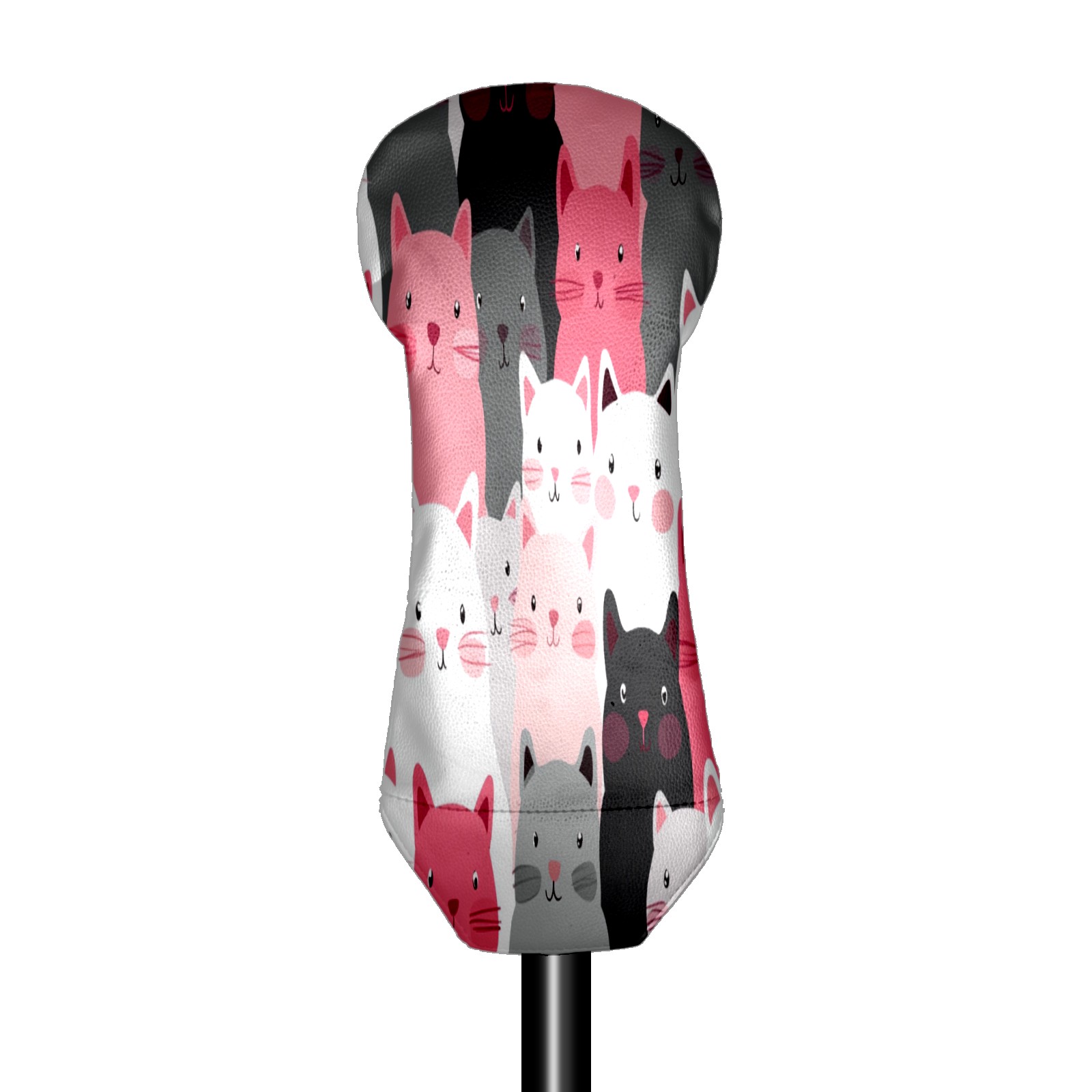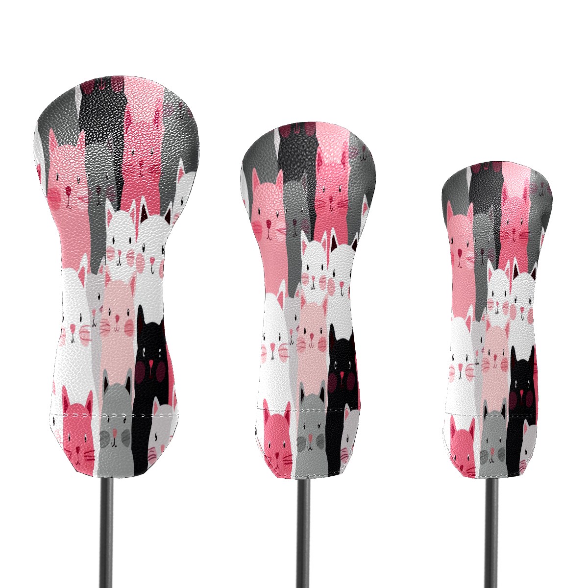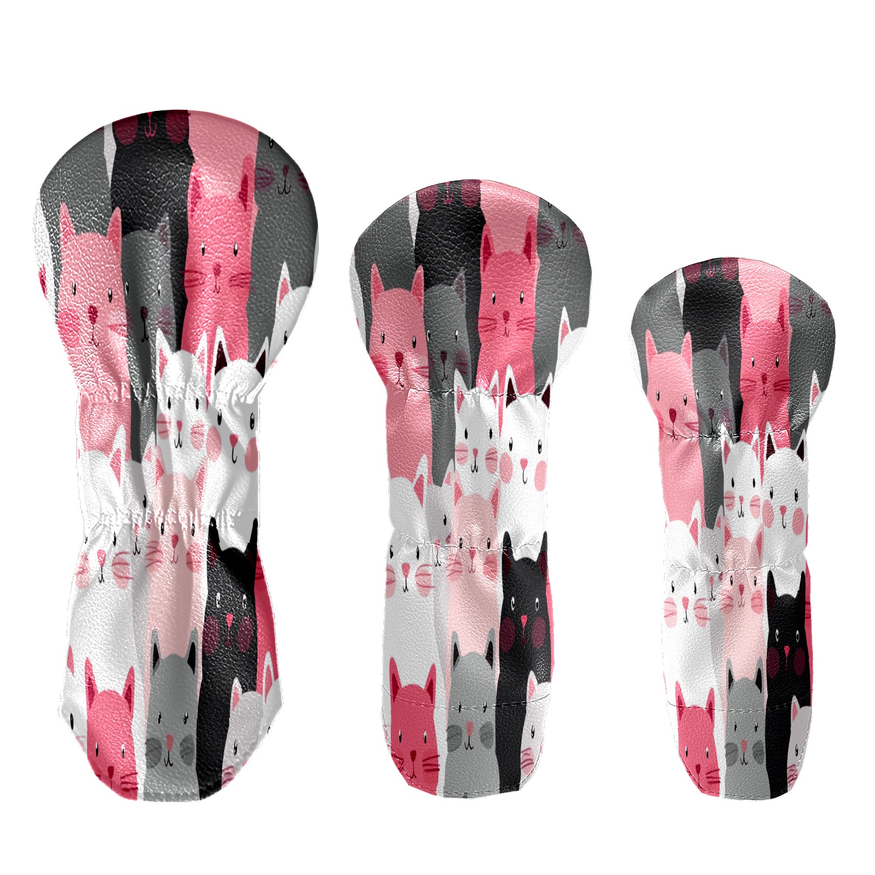 Golf Head Covers 3-Pack Cat Cluster PinkTone Fits Driver Fairway Hybrid - Waterproof PU Leather with Plush Velvet Lining, Scratch Protection, Durable Golf Gift for Men & Women