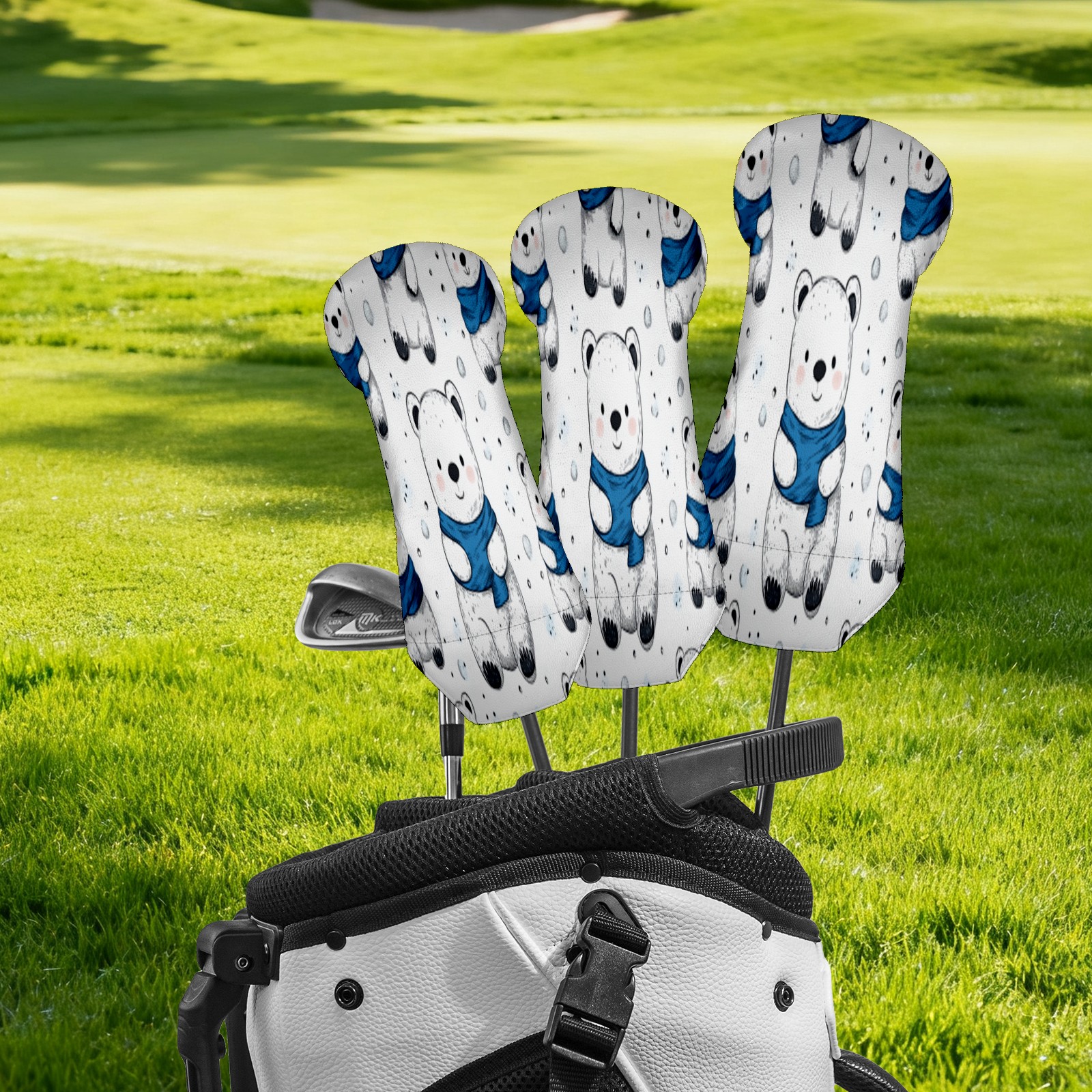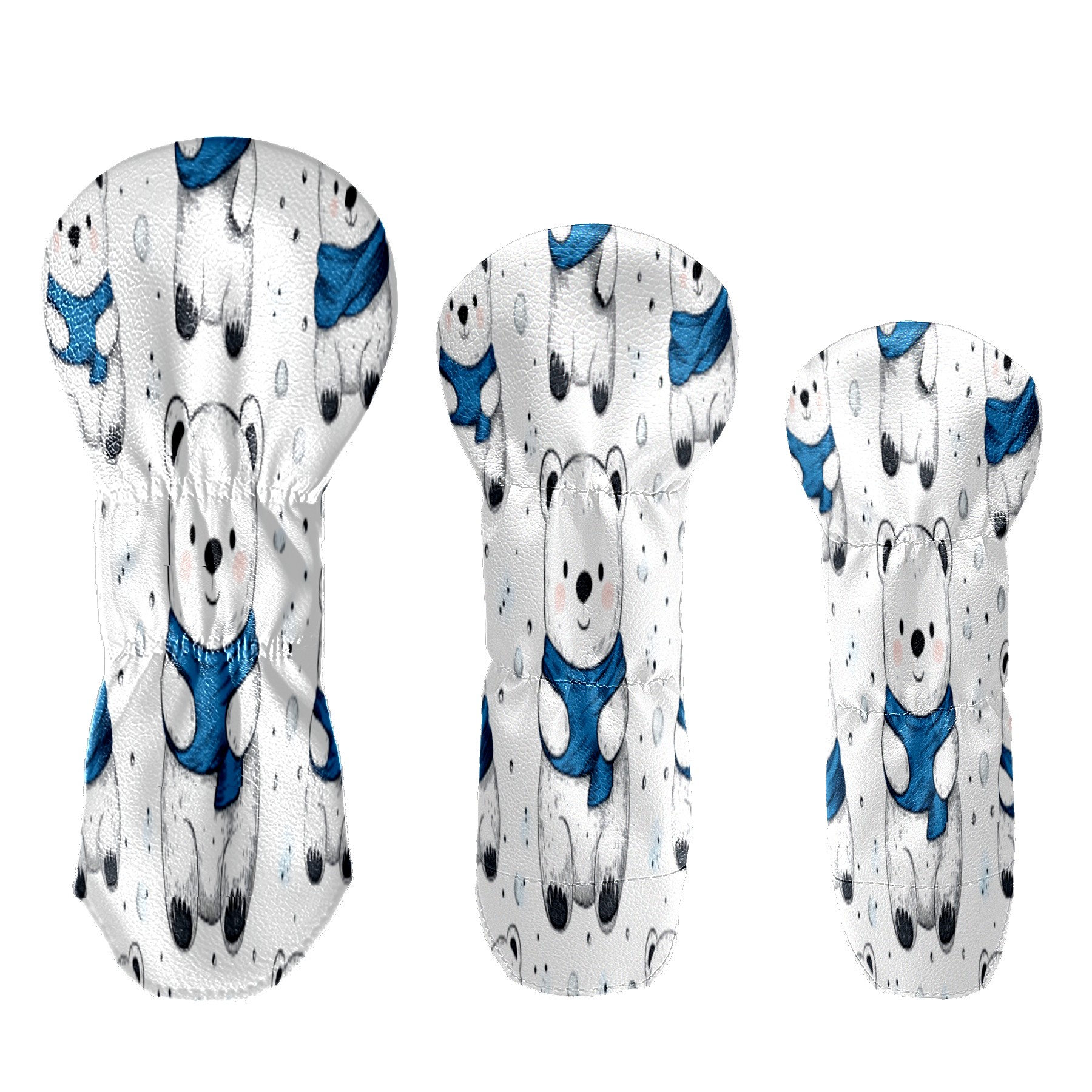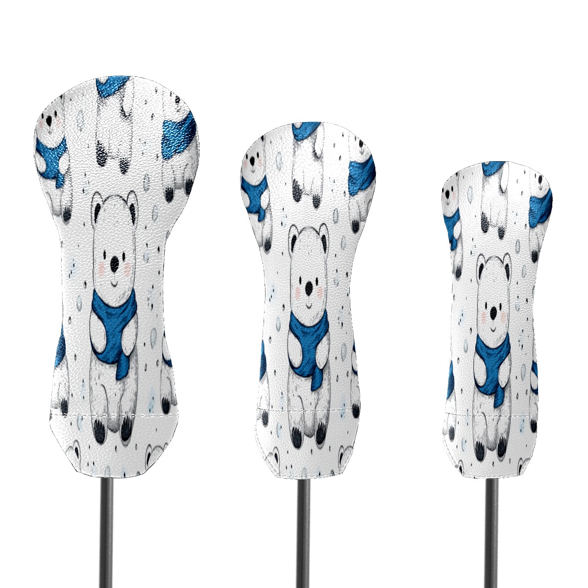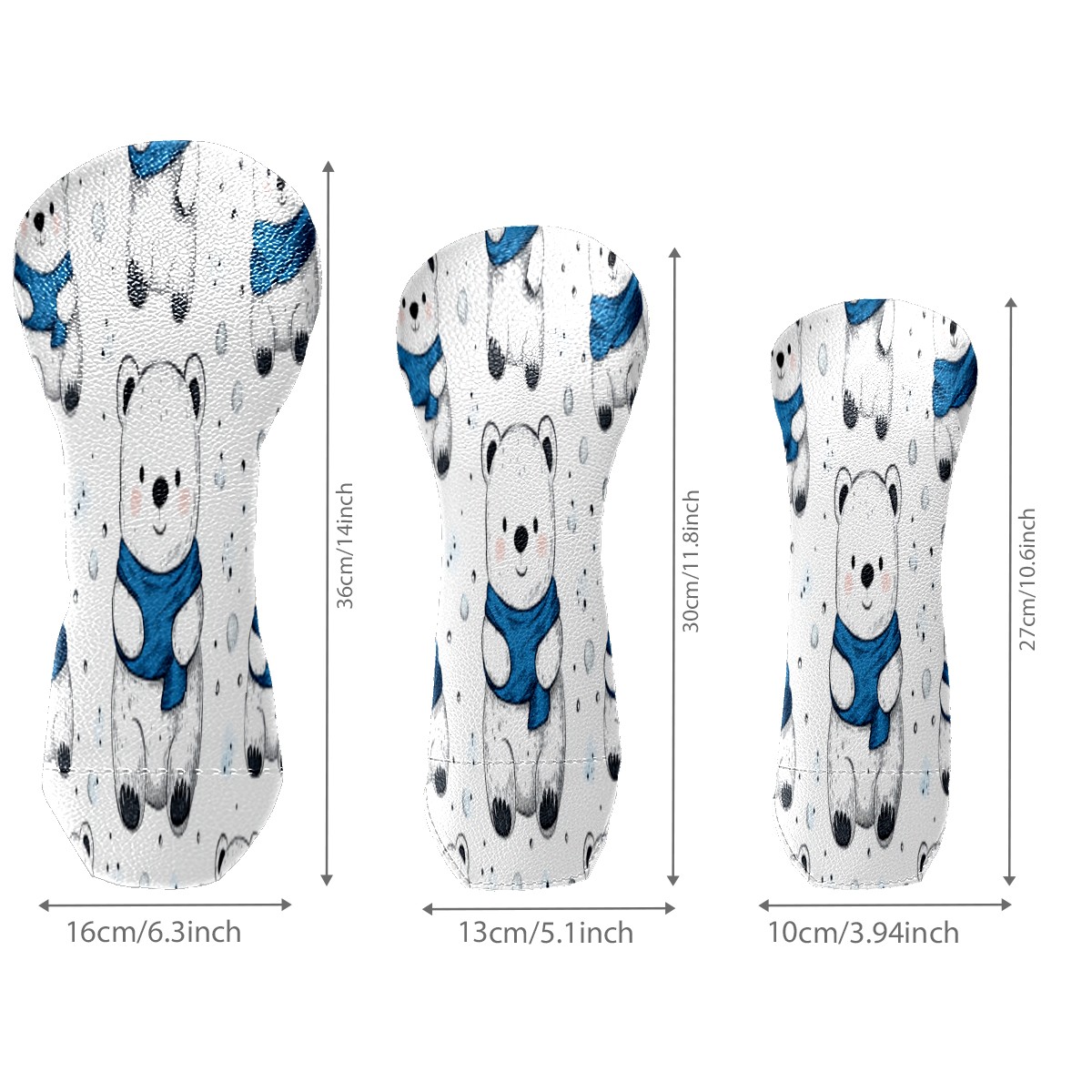 Golf Head Covers 3-Pack White Bear Fits Driver Fairway Hybrid - Waterproof PU Leather with Plush Velvet Lining, Scratch Protection, Durable Golf Gift for Men & Women
