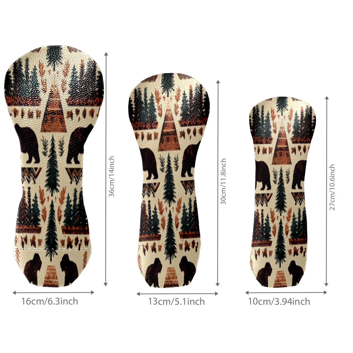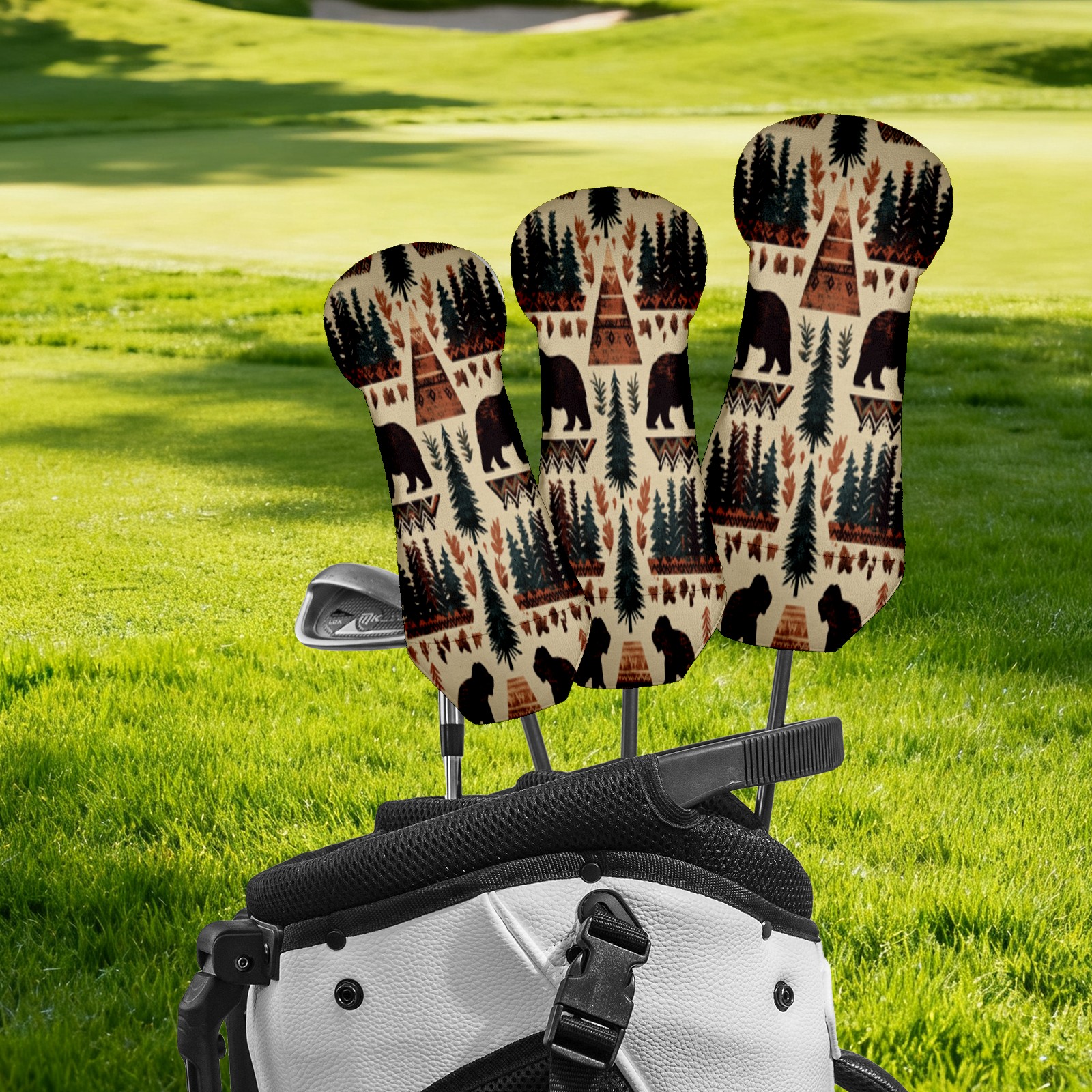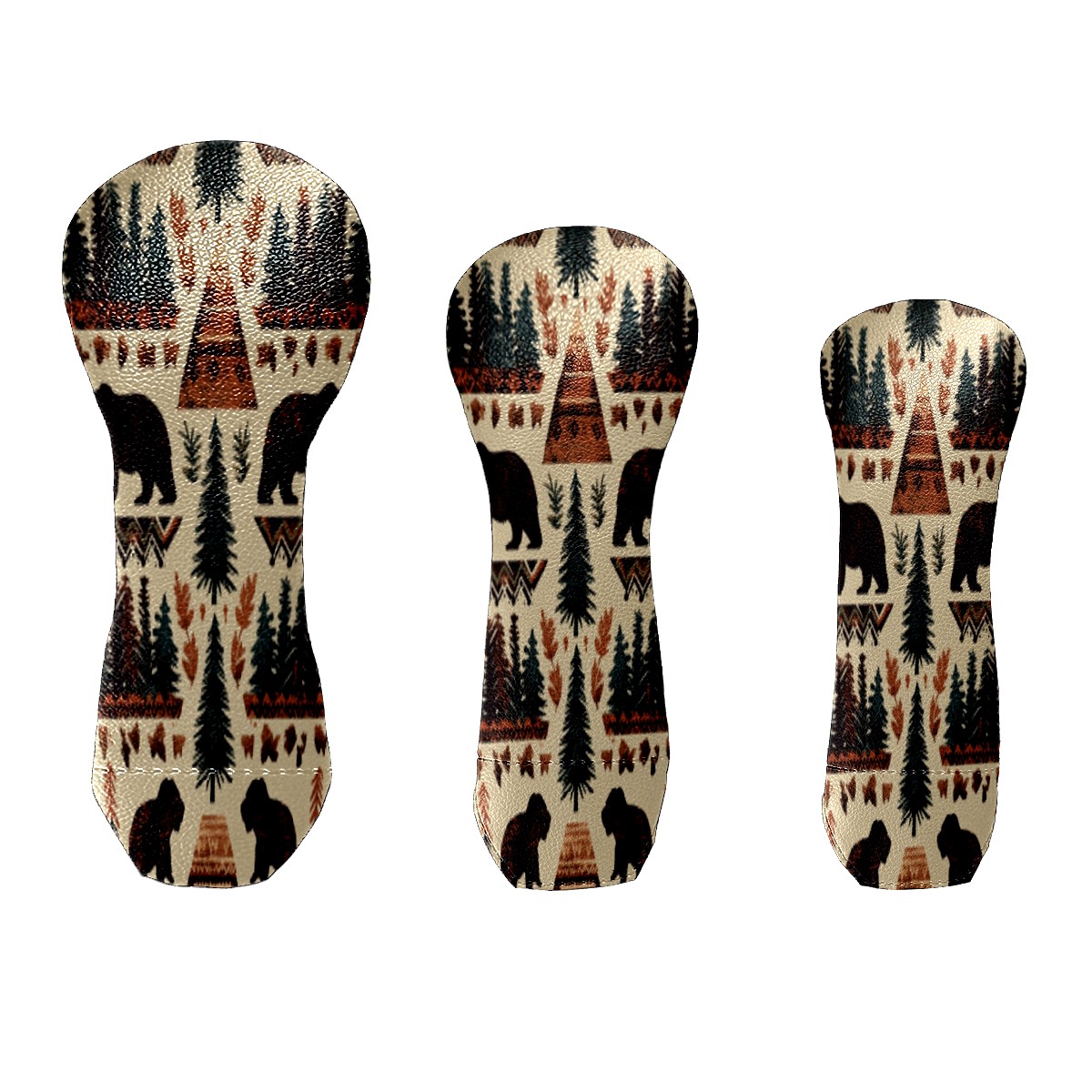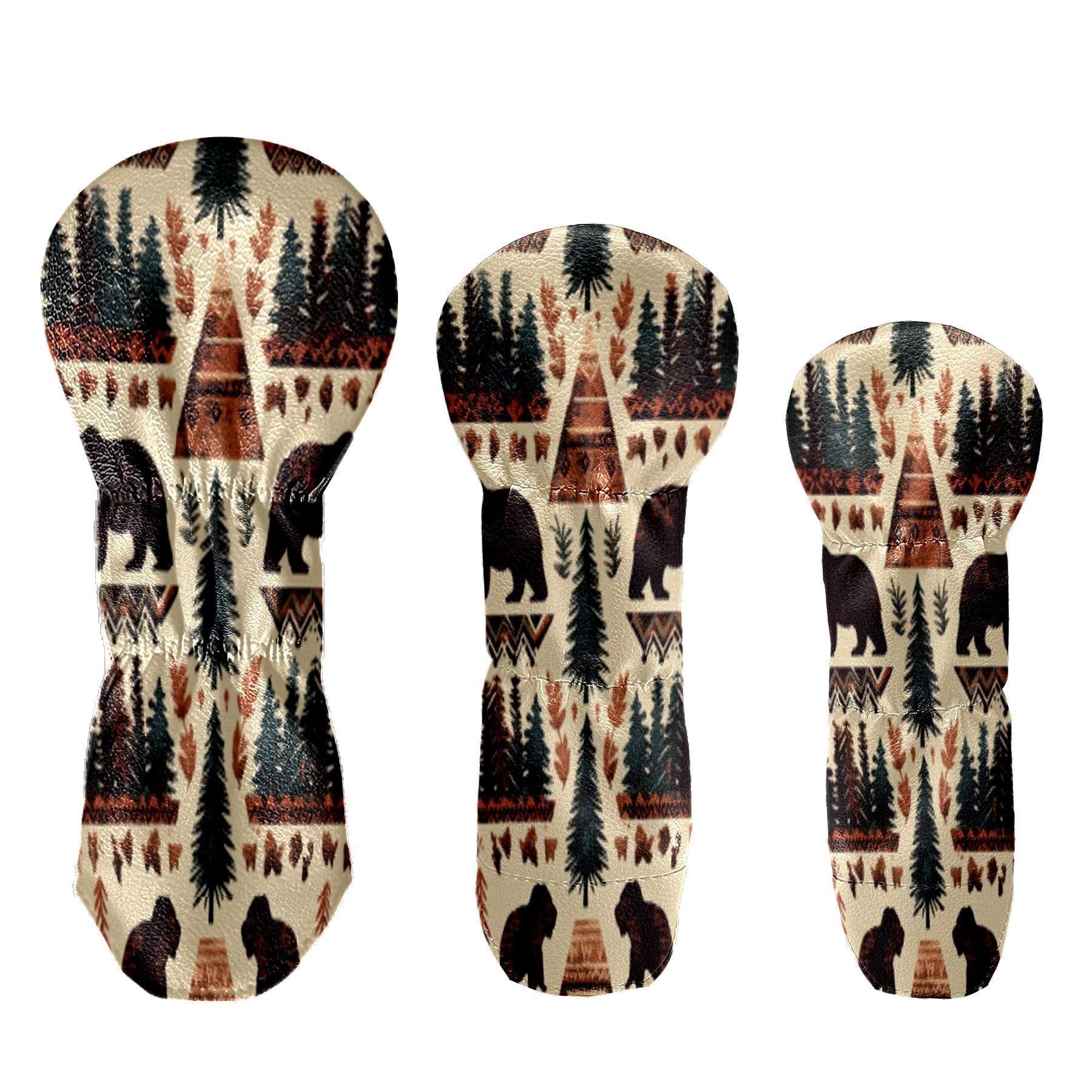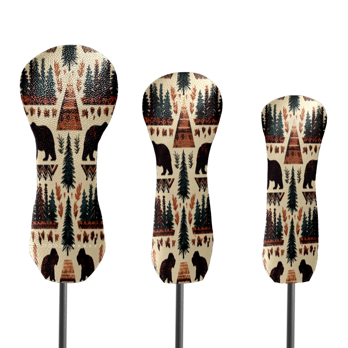 Golf Head Covers 3-Pack Country Seamless_pattern Fits Driver Fairway Hybrid - Waterproof PU Leather with Plush Velvet Lining, Scratch Protection, Durable Golf Gift for Men & Women